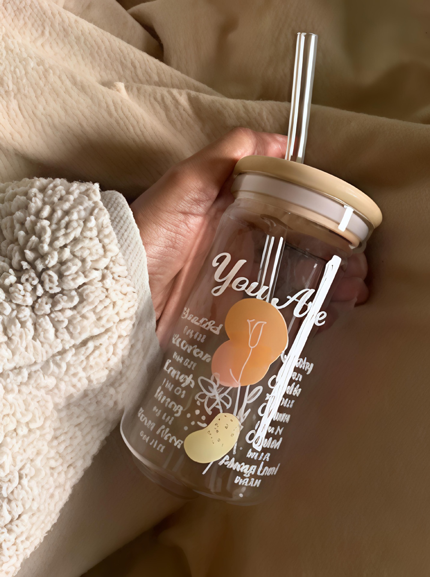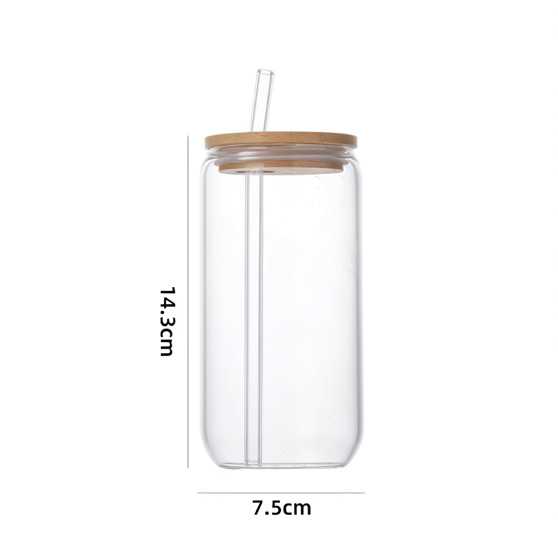 맞춤형 유리컵 16온스 커피컵 메이슨 유리 물컵 대나무 뚜껑 포함 주스용 고온 내성 대용량 컵스토어 가기