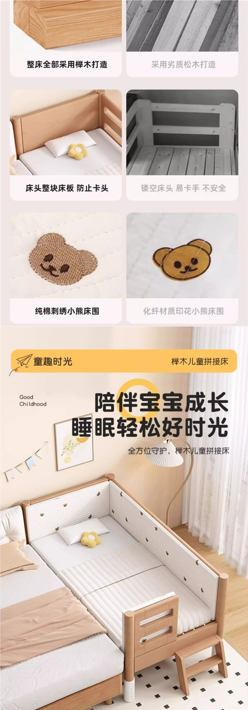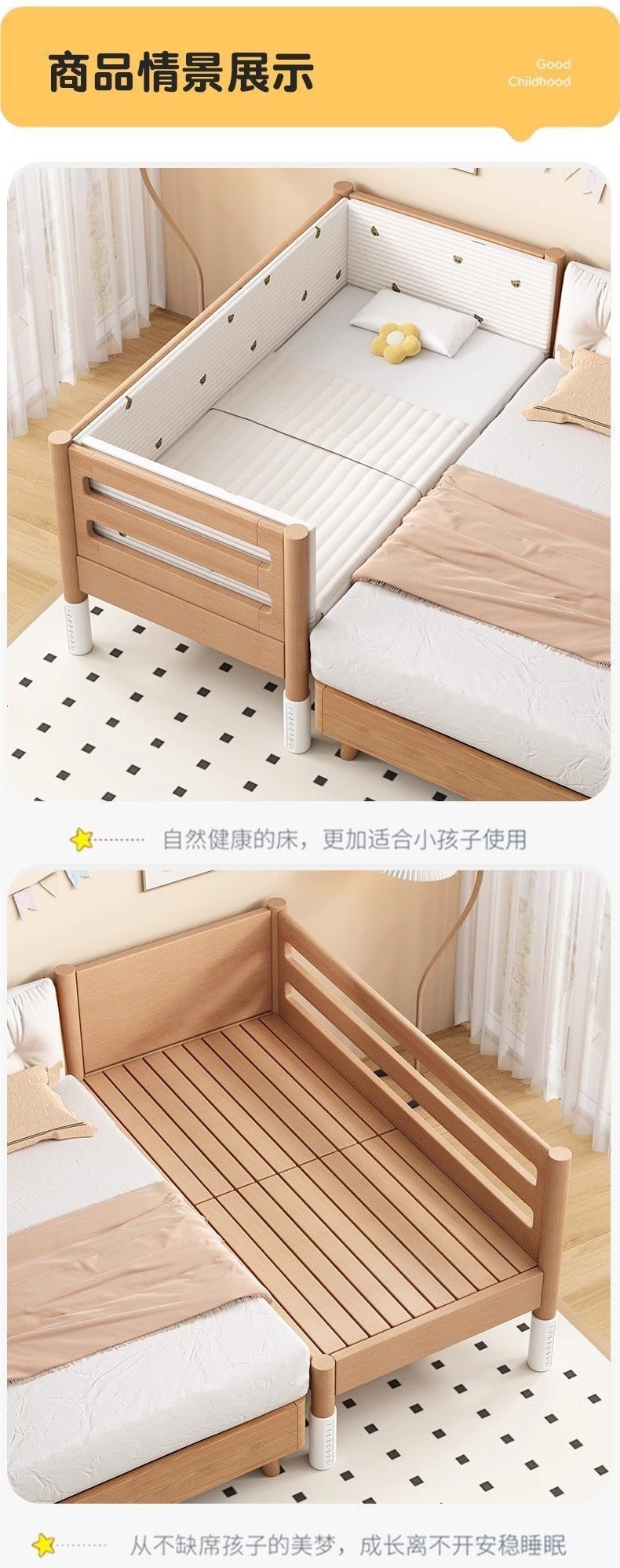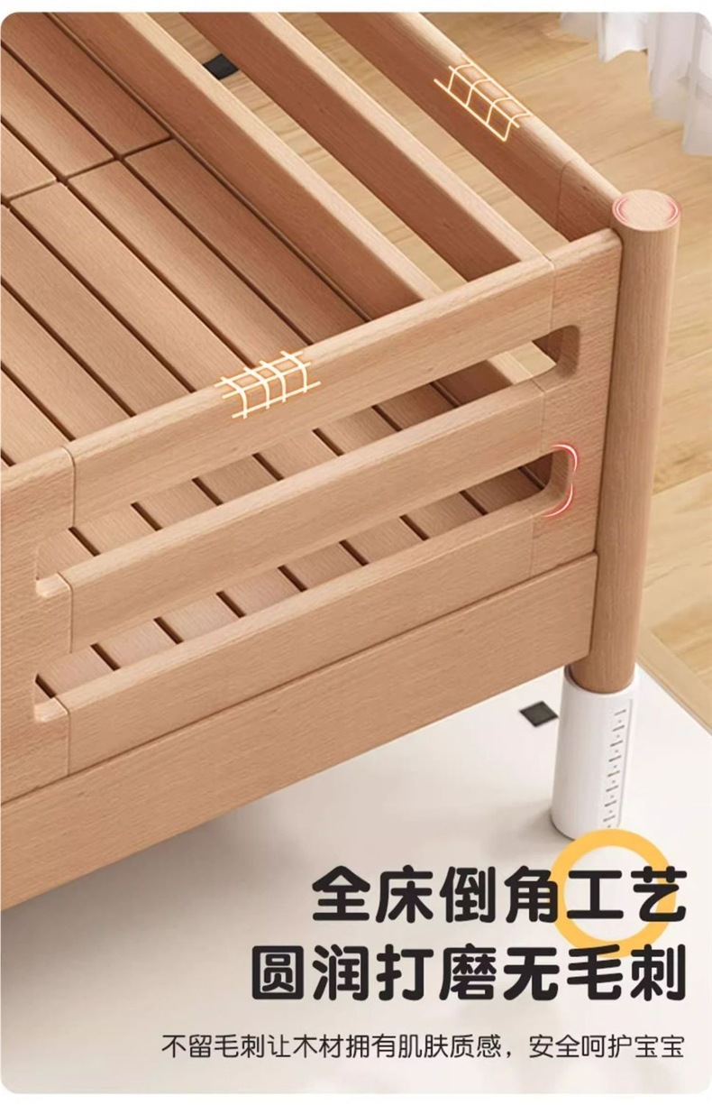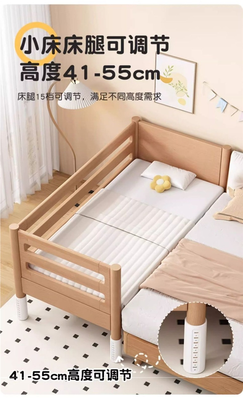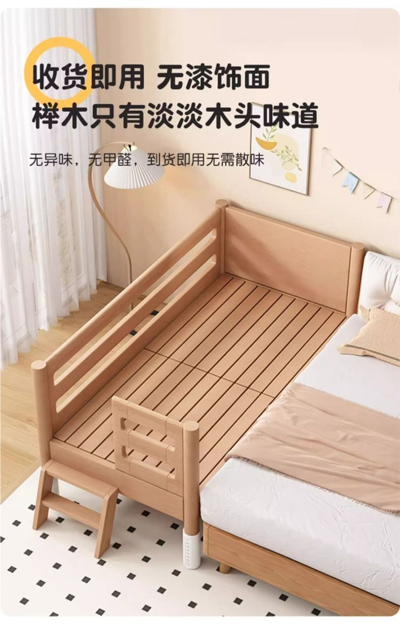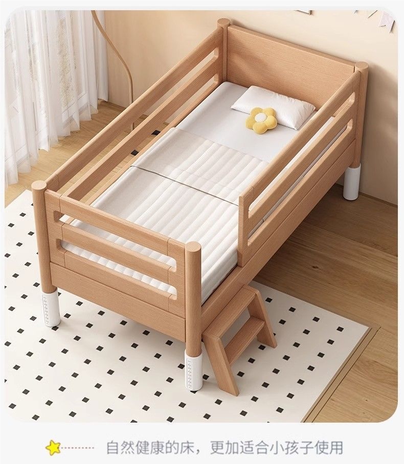 너도밤나무 어린이 침대, 침대 옆에 넓은 유아용 침대, 접합 침대, 유아용 침대, 대형 침대, 원목 유아용 침대