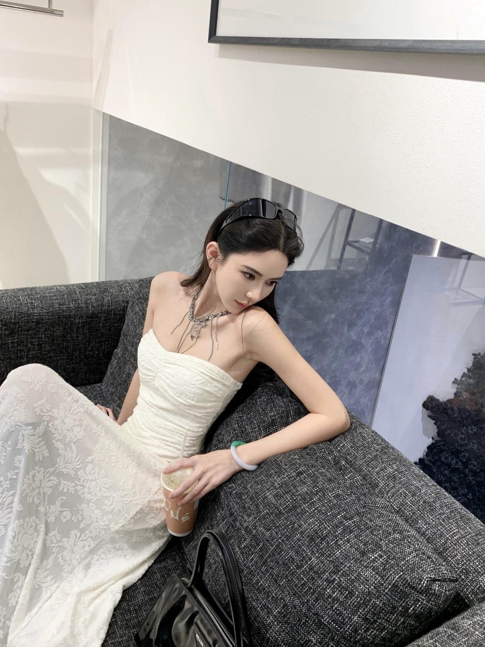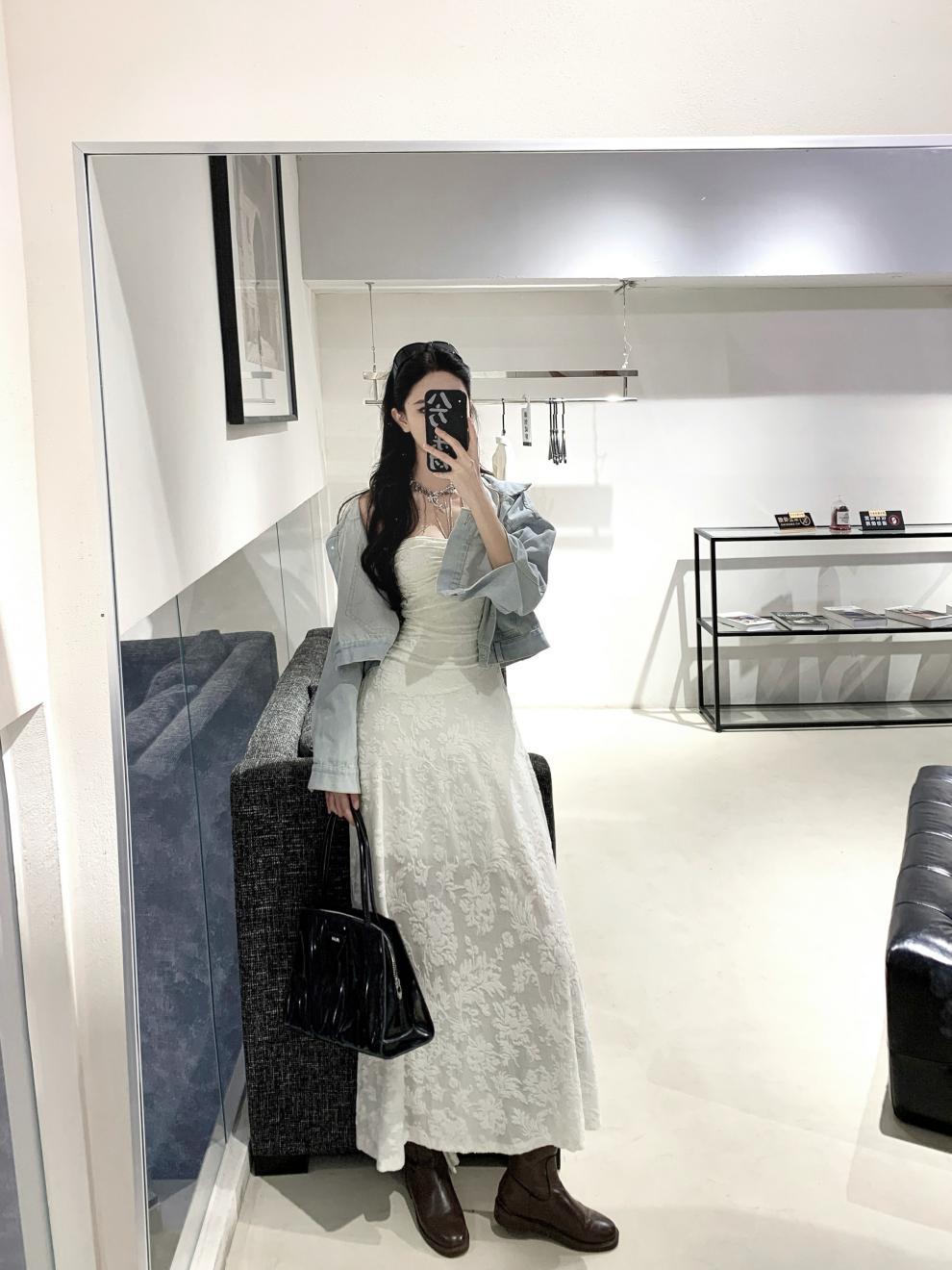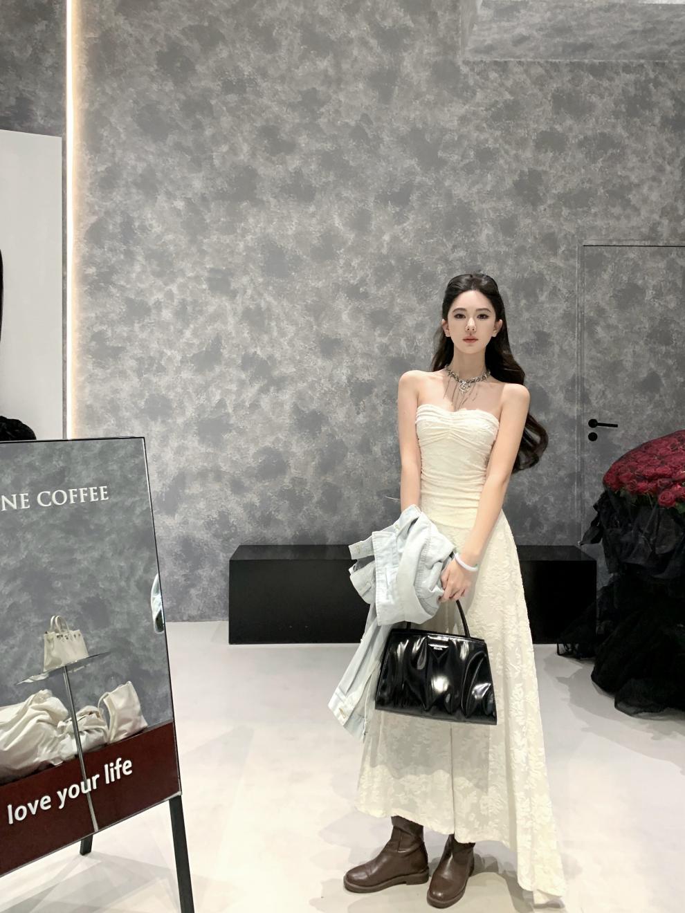 샤란시유 베이지 플리츠 고급스러운 느낌의 튜브탑 원피스, 허리를 잘록하게 잡아주는 슬리밍 효과의 여성용 봄 프렌치 패션 원피스스토어 가기