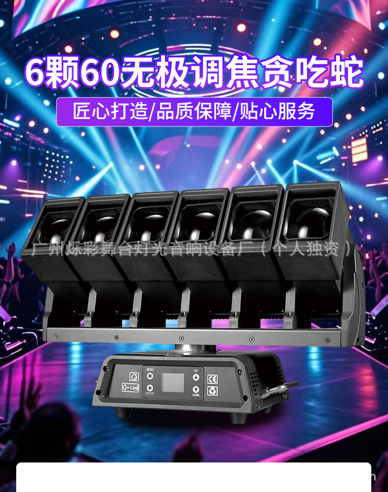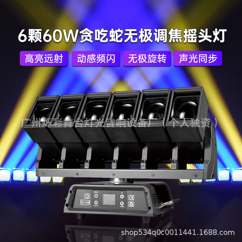 6pcs 60W 무단계 초점 LED 무대 조명 다채로운 회전 이동 헤드 빔 라이트 콘서트 KTV 바 분위기 조명