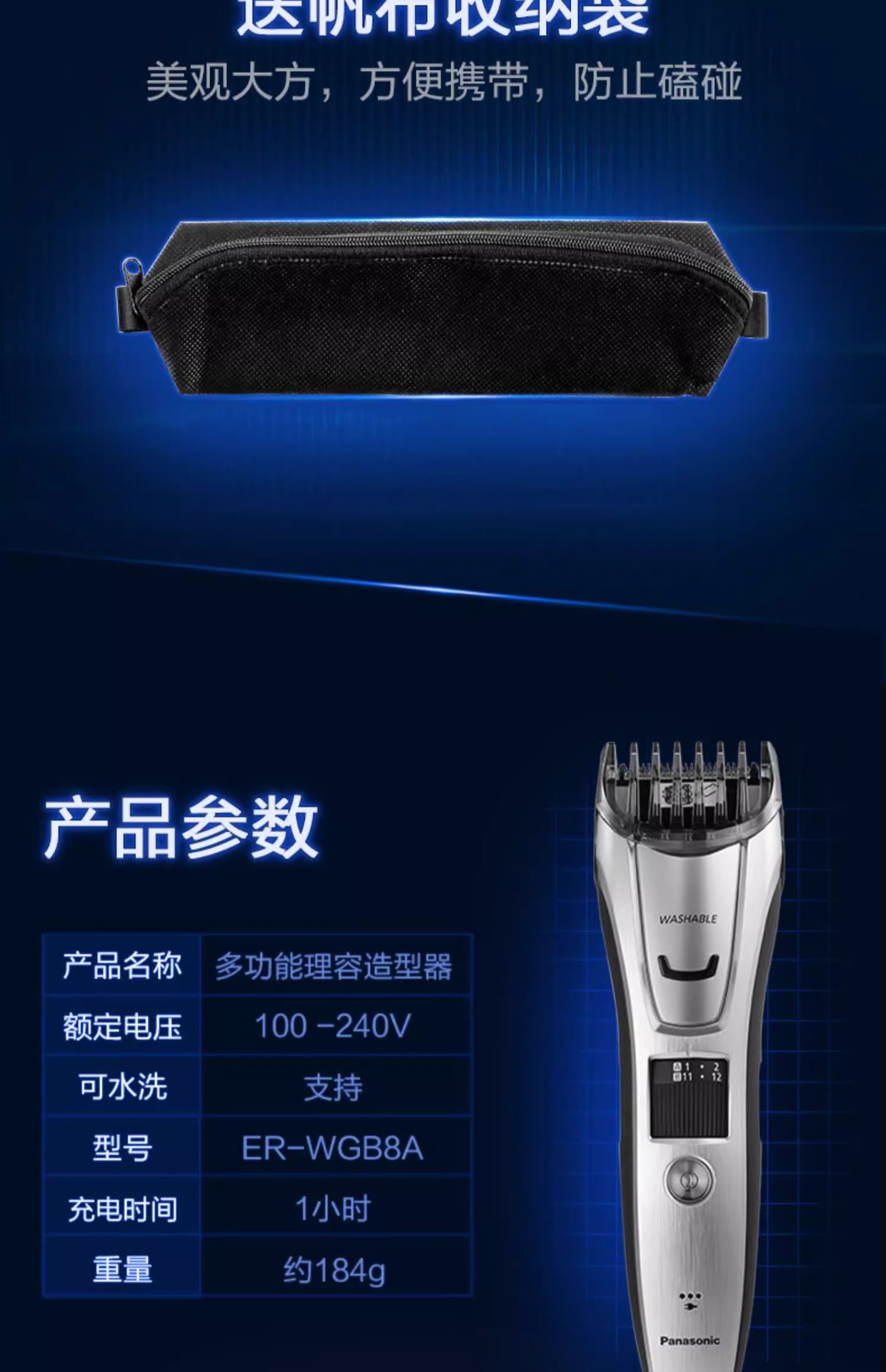남성용 파나소닉 이발기, 방수 미용실, 가정용 휴대용, 어린이 및 성인용 ER-WGB8A