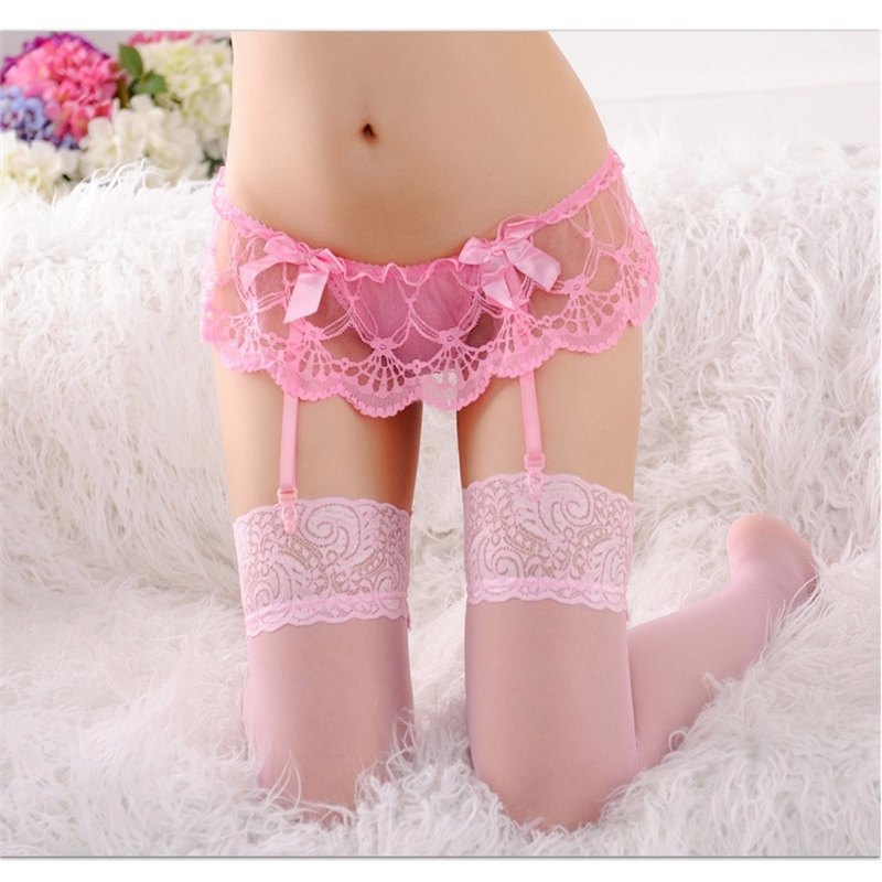 여성용 슬립스타킹, 섹시한 끈팬티 세트, 초박형, 섹시하고 핫한 레이스 블랙 실크 롱 튜브 무릎 위 양말 76스토어 가기