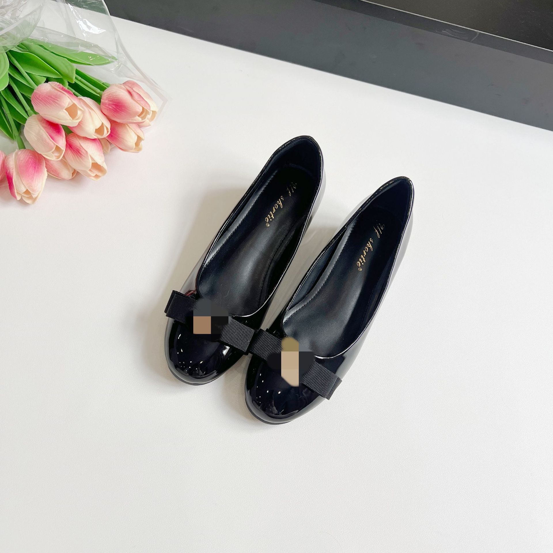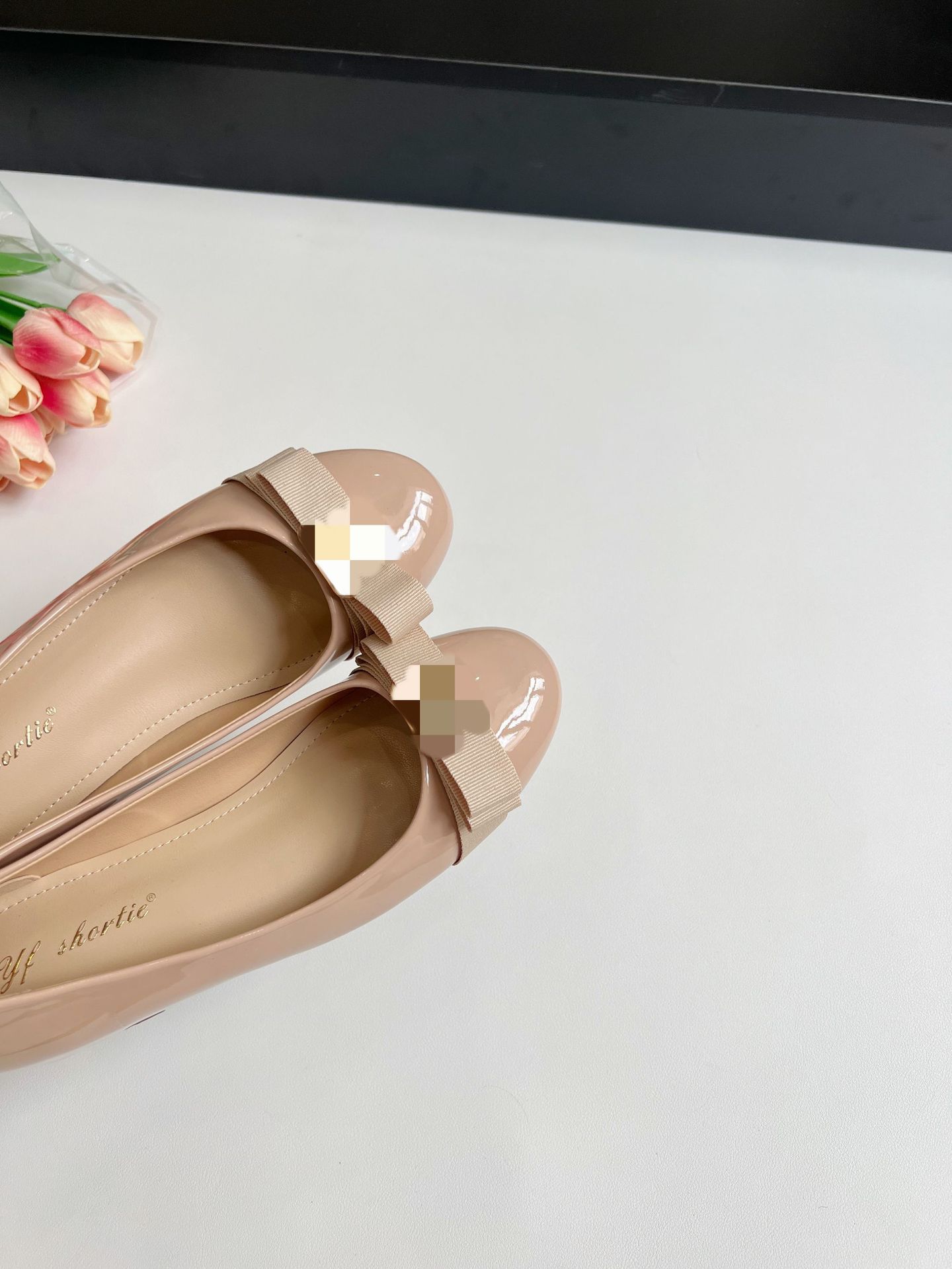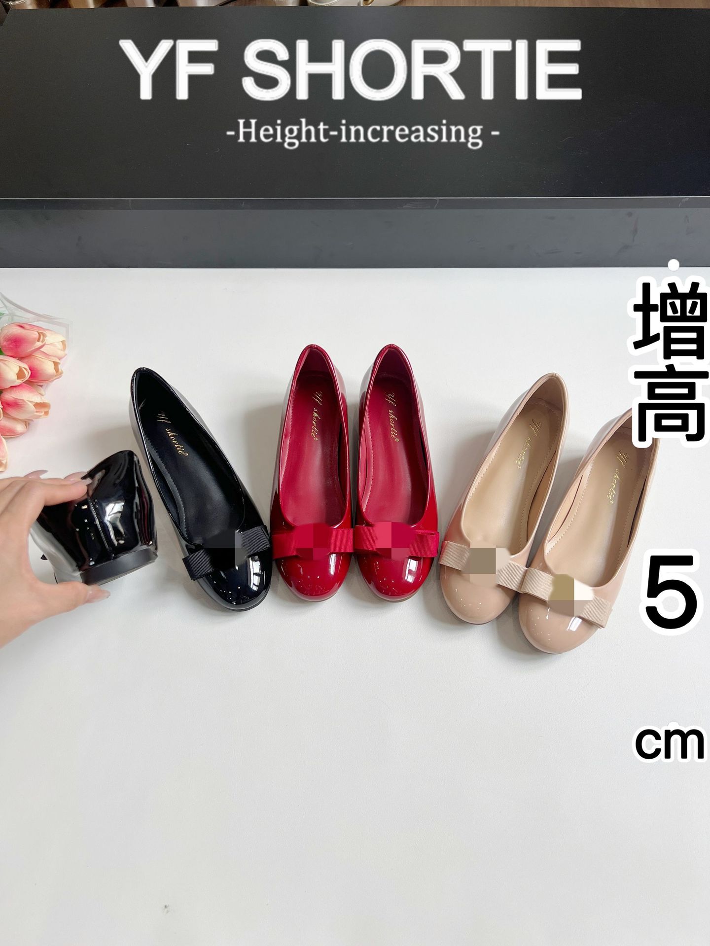 여성을위한 5cm 높이 증가 금속 나비 매듭 라운드 발가락 펌프 신발 2025 여름 새로운 프랑스어 부드러운 특허 가죽 플랫 신발스토어 가기