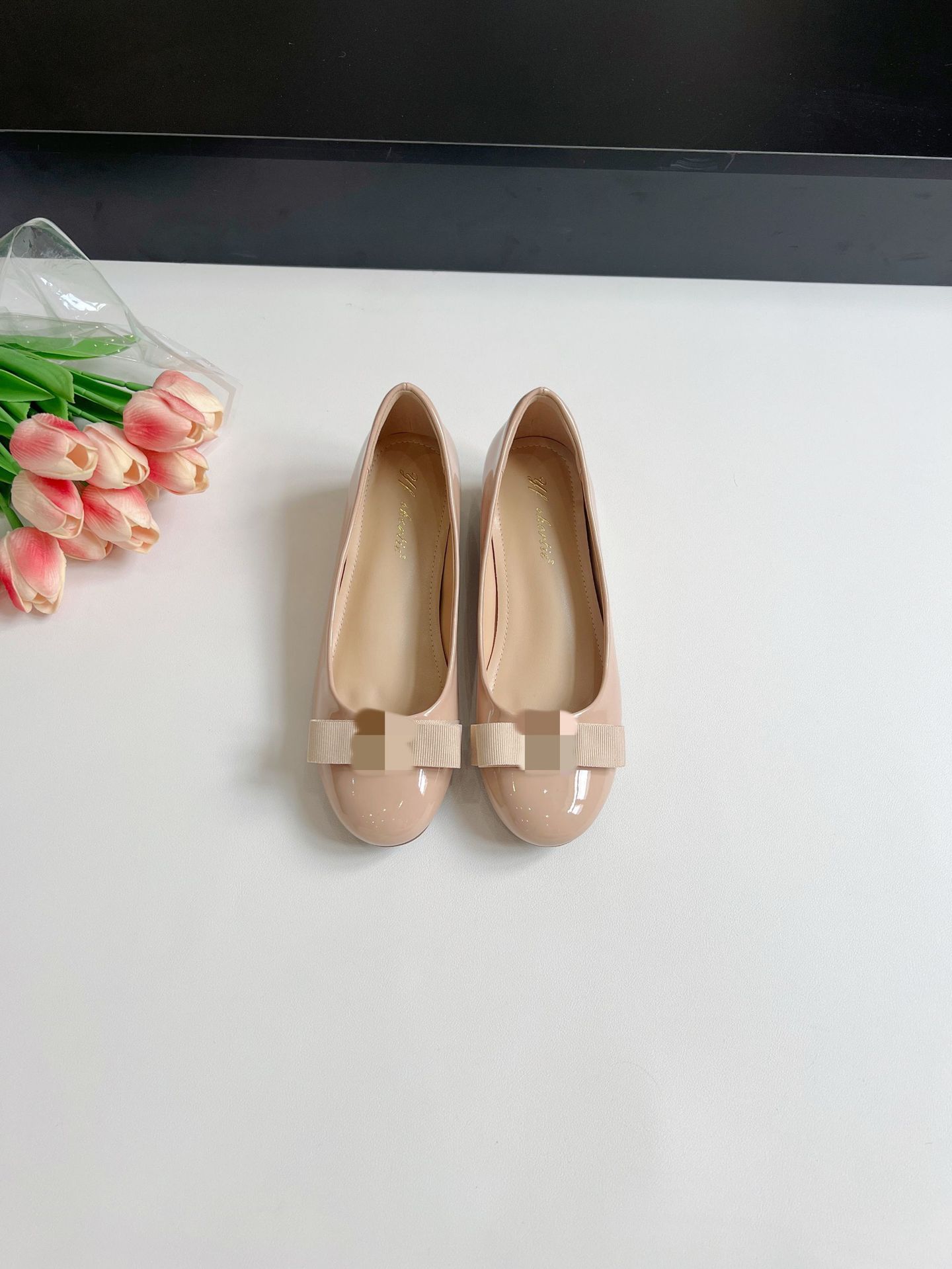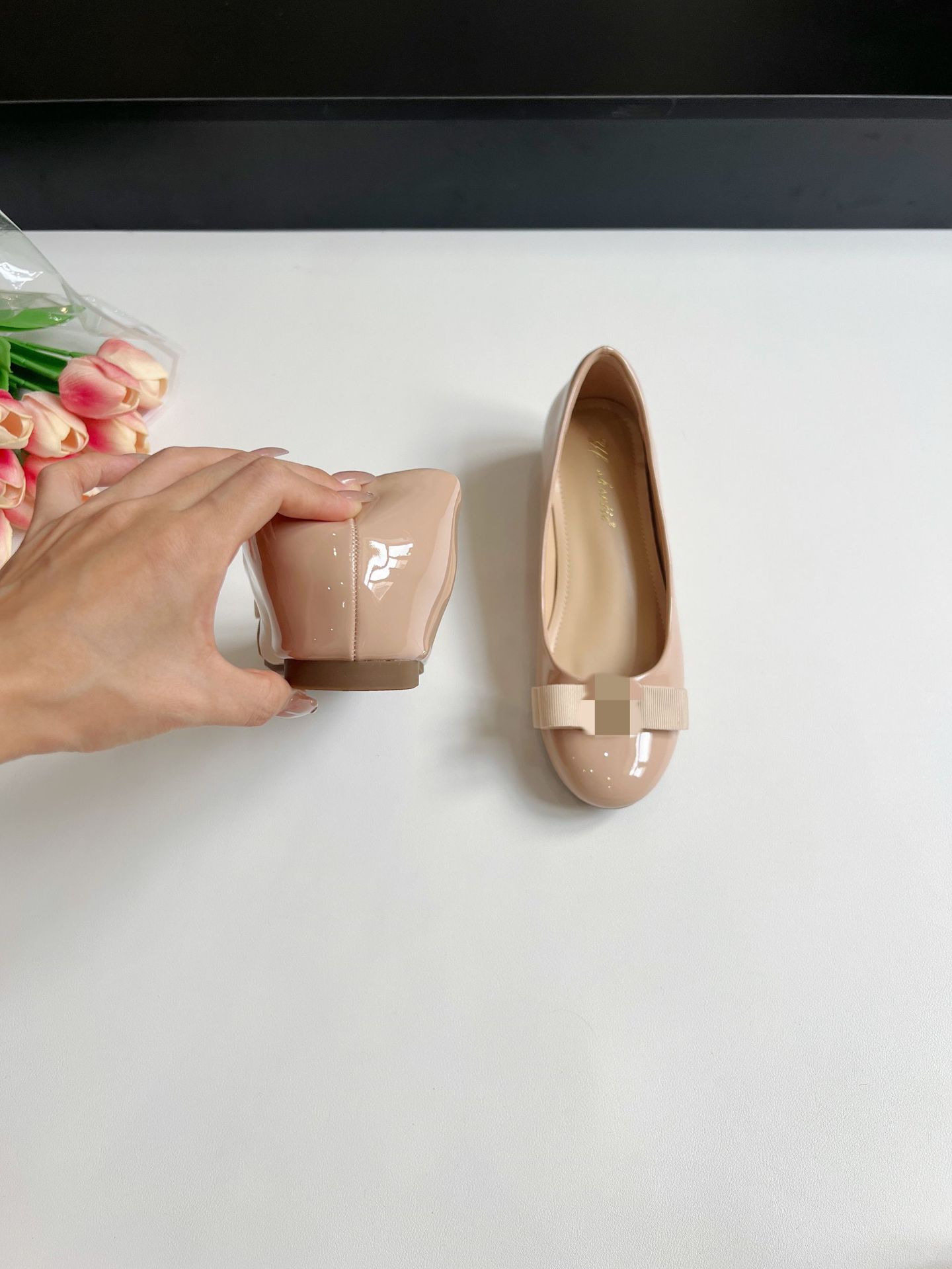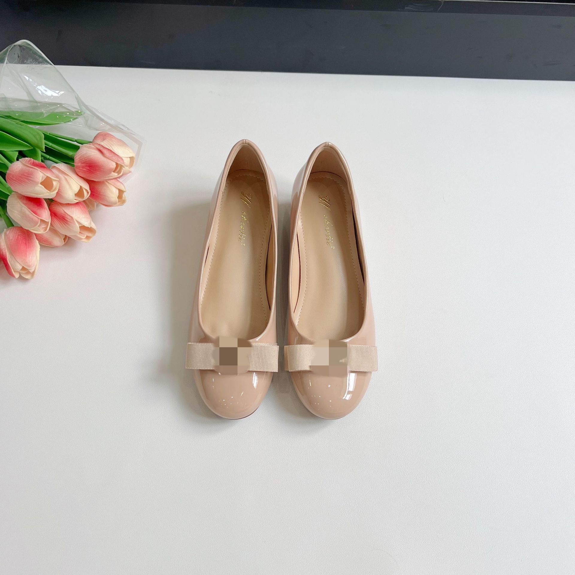여성을위한 5cm 높이 증가 금속 나비 매듭 라운드 발가락 펌프 신발 2025 여름 새로운 프랑스어 부드러운 특허 가죽 플랫 신발