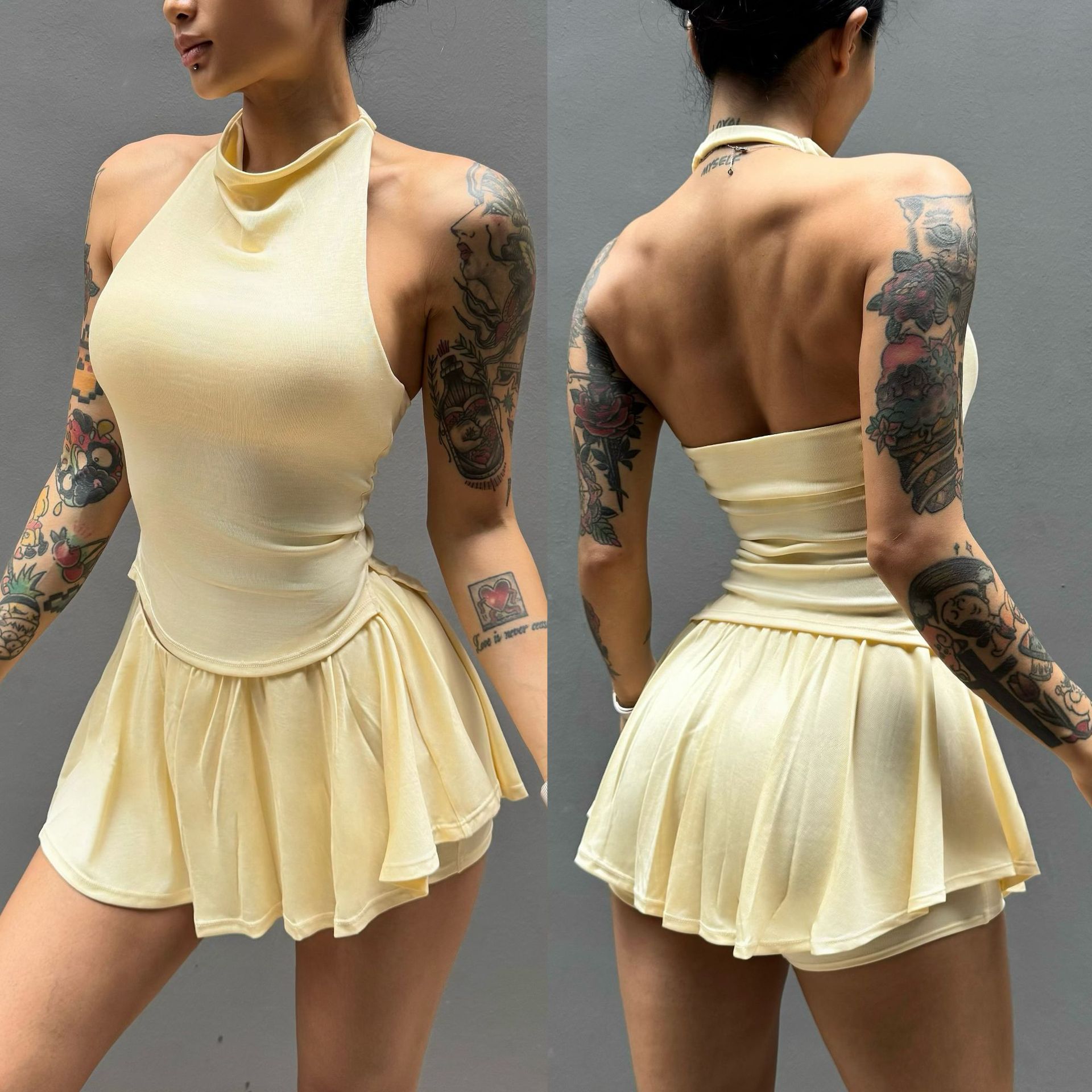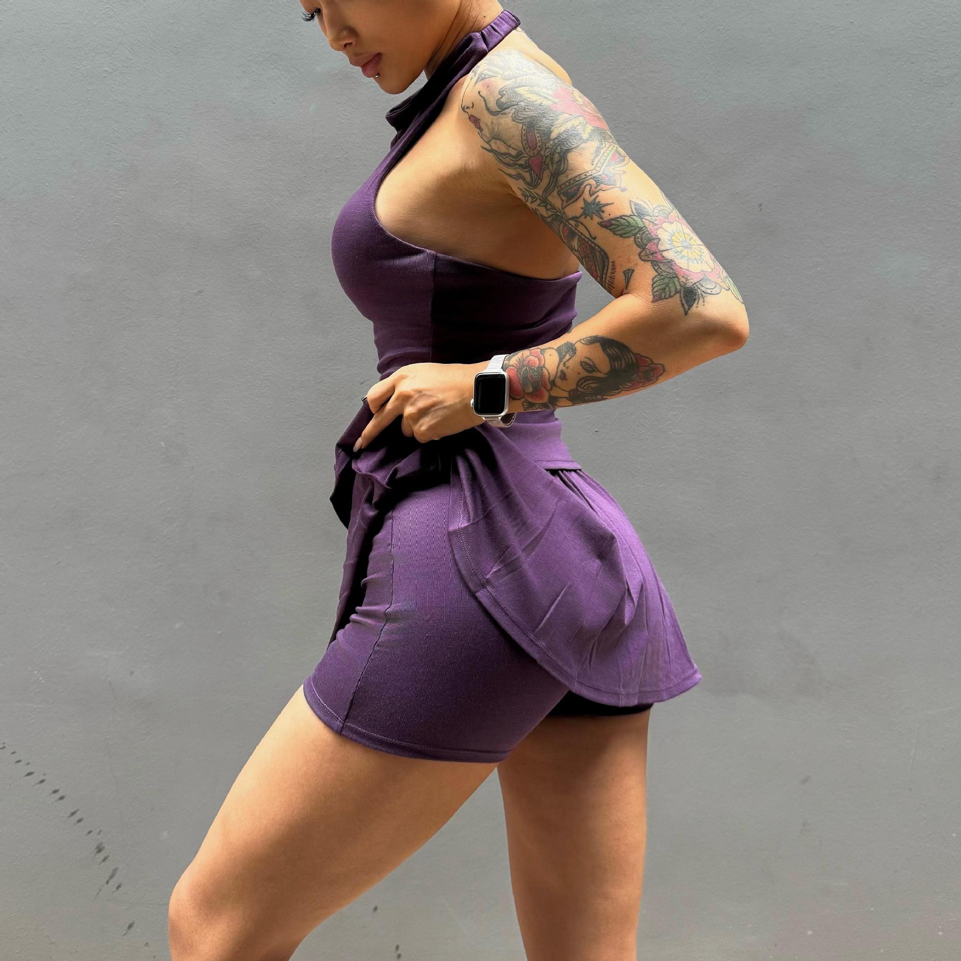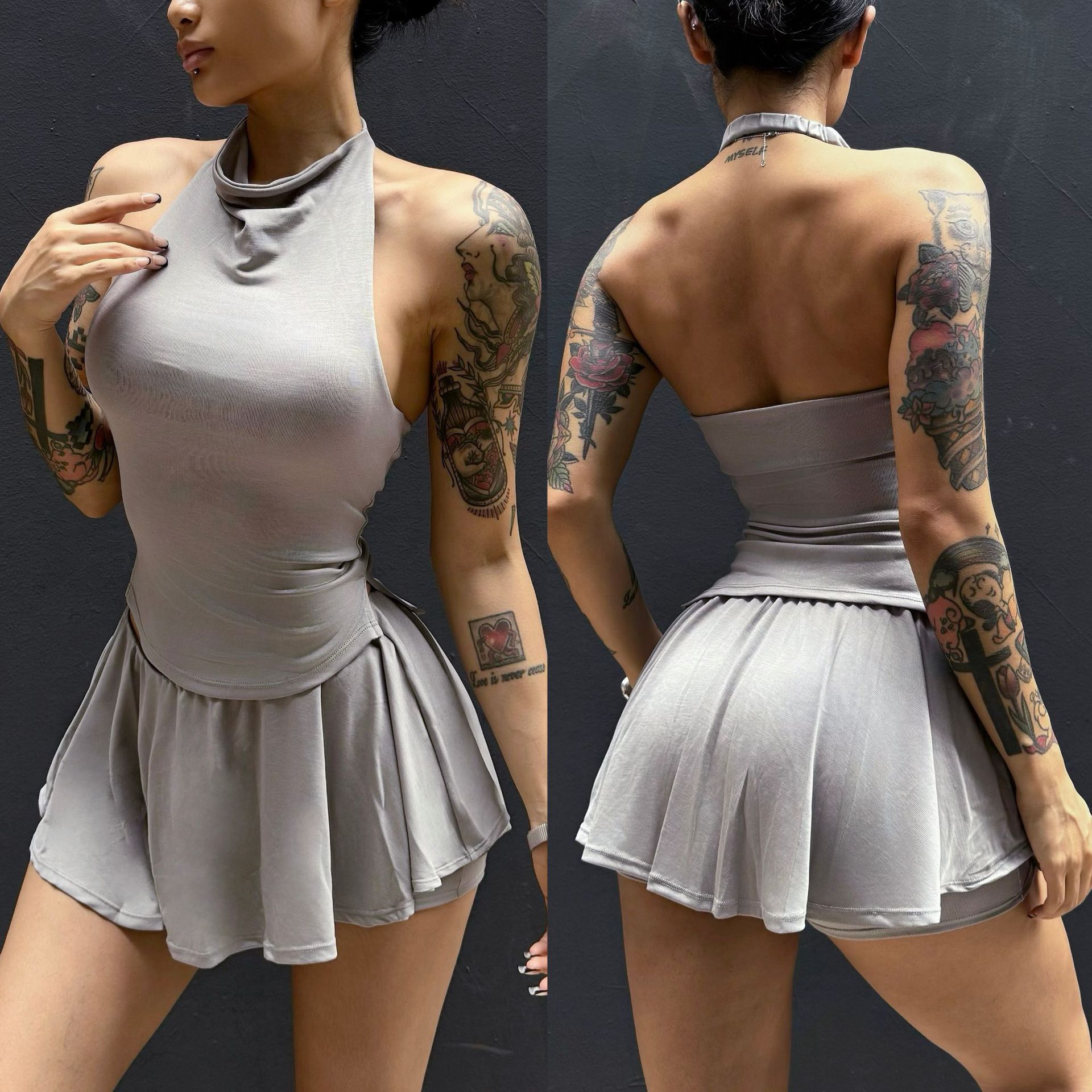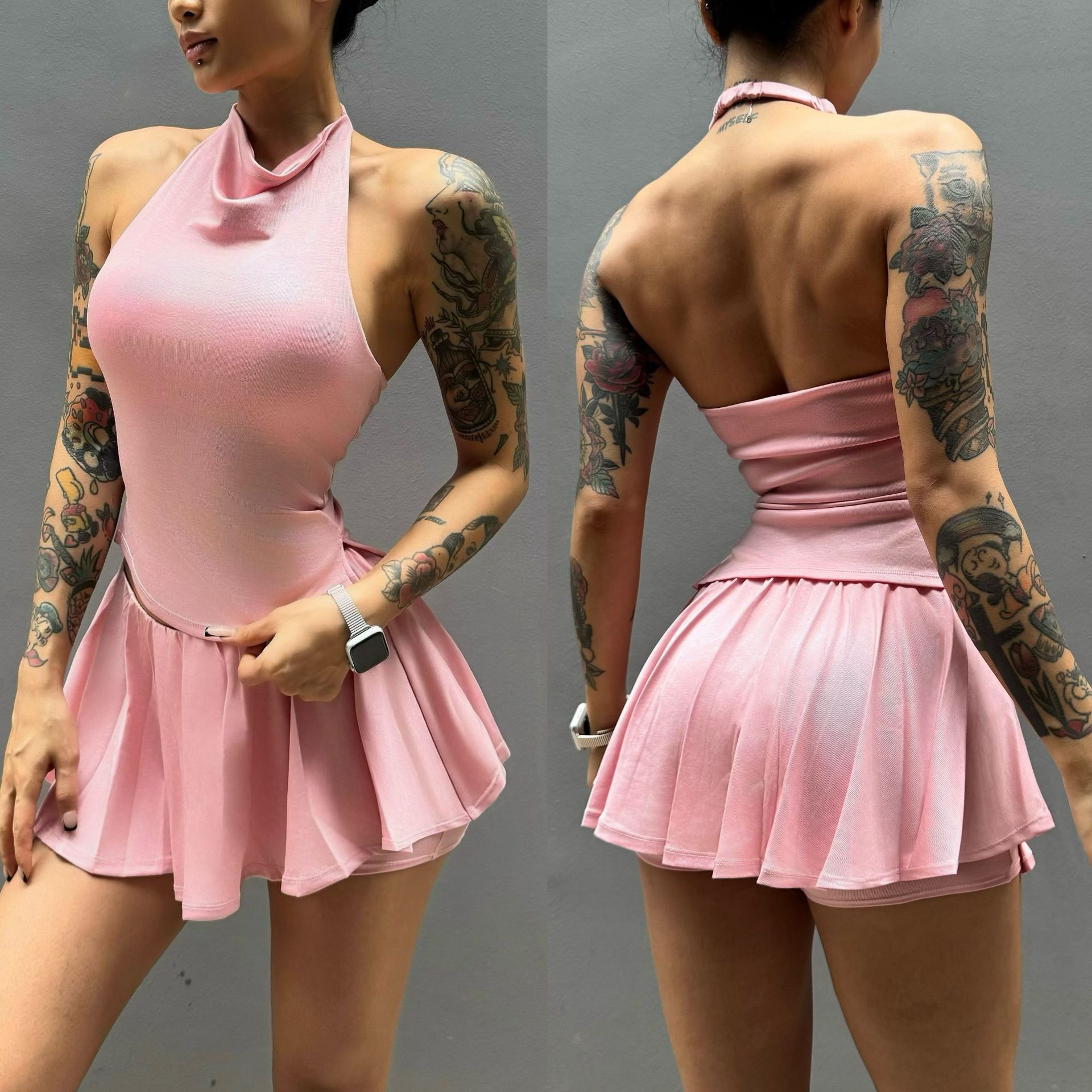 모달 피트니스 요가 스포츠 브라 조끼 하프 길이 플리츠 스커트 노출 방지 러닝 통기성 및 고탄성 세트