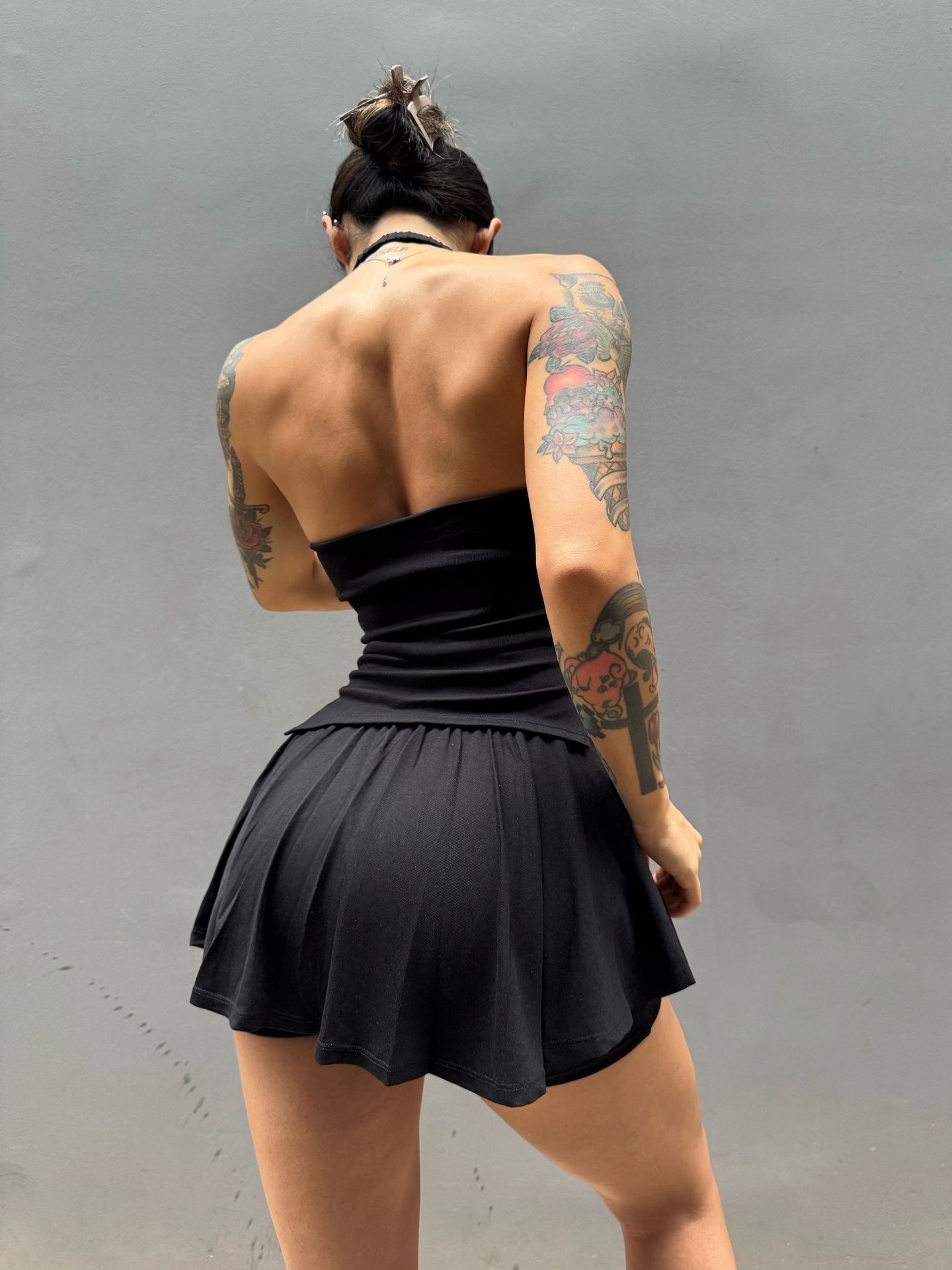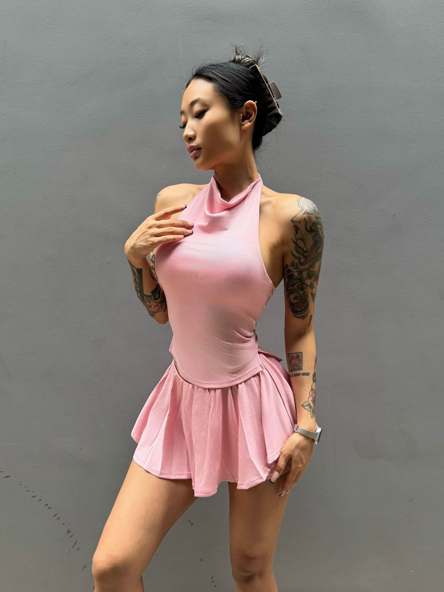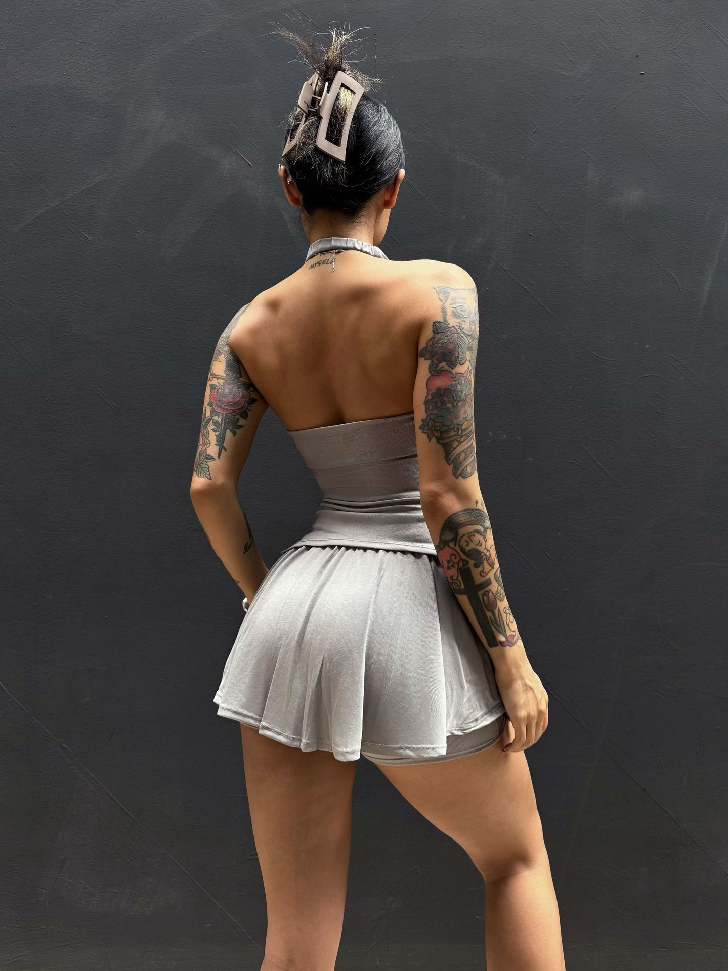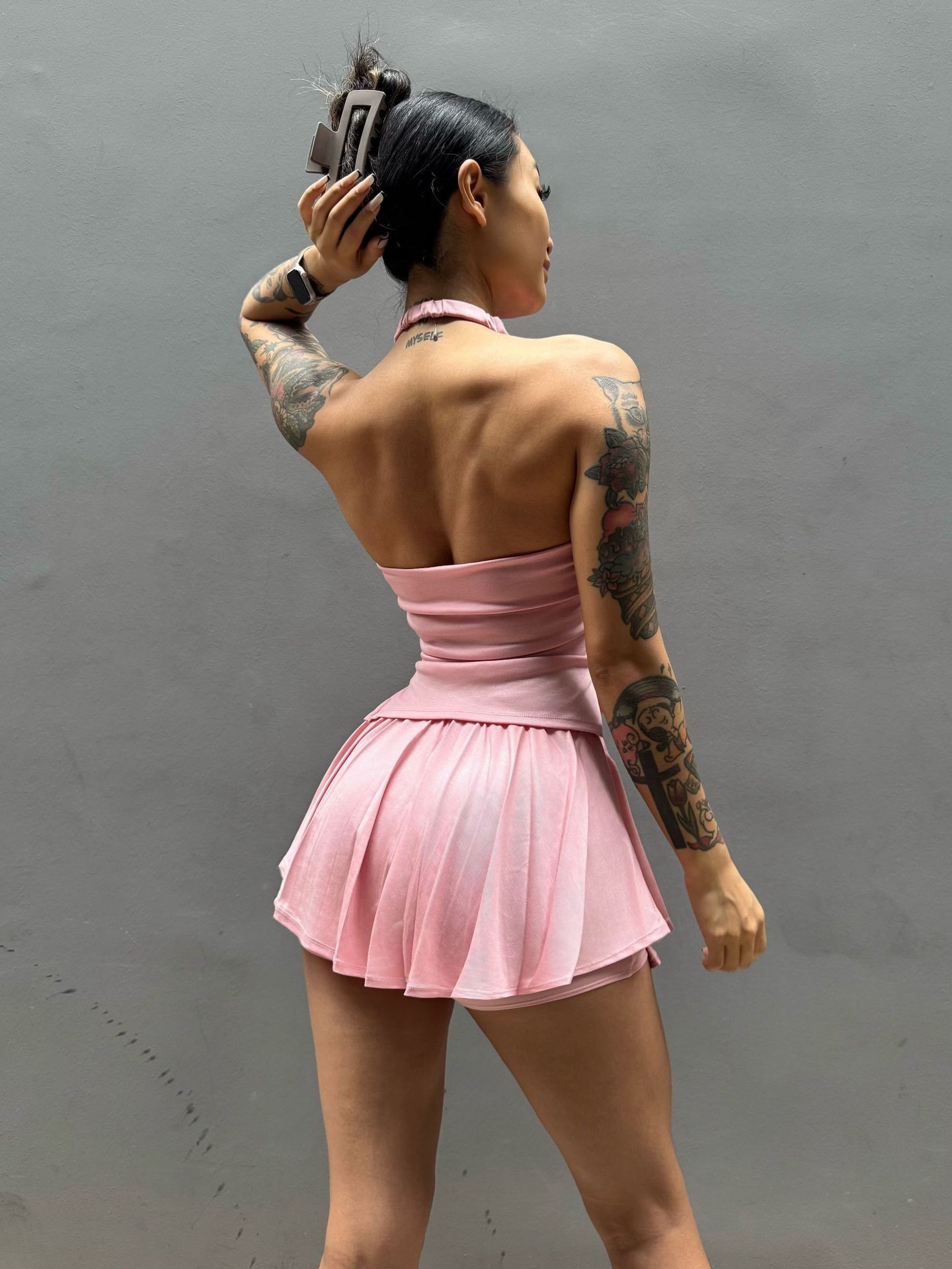 모달 피트니스 요가 스포츠 브라 조끼 하프 길이 플리츠 스커트 노출 방지 러닝 통기성 및 고탄성 세트