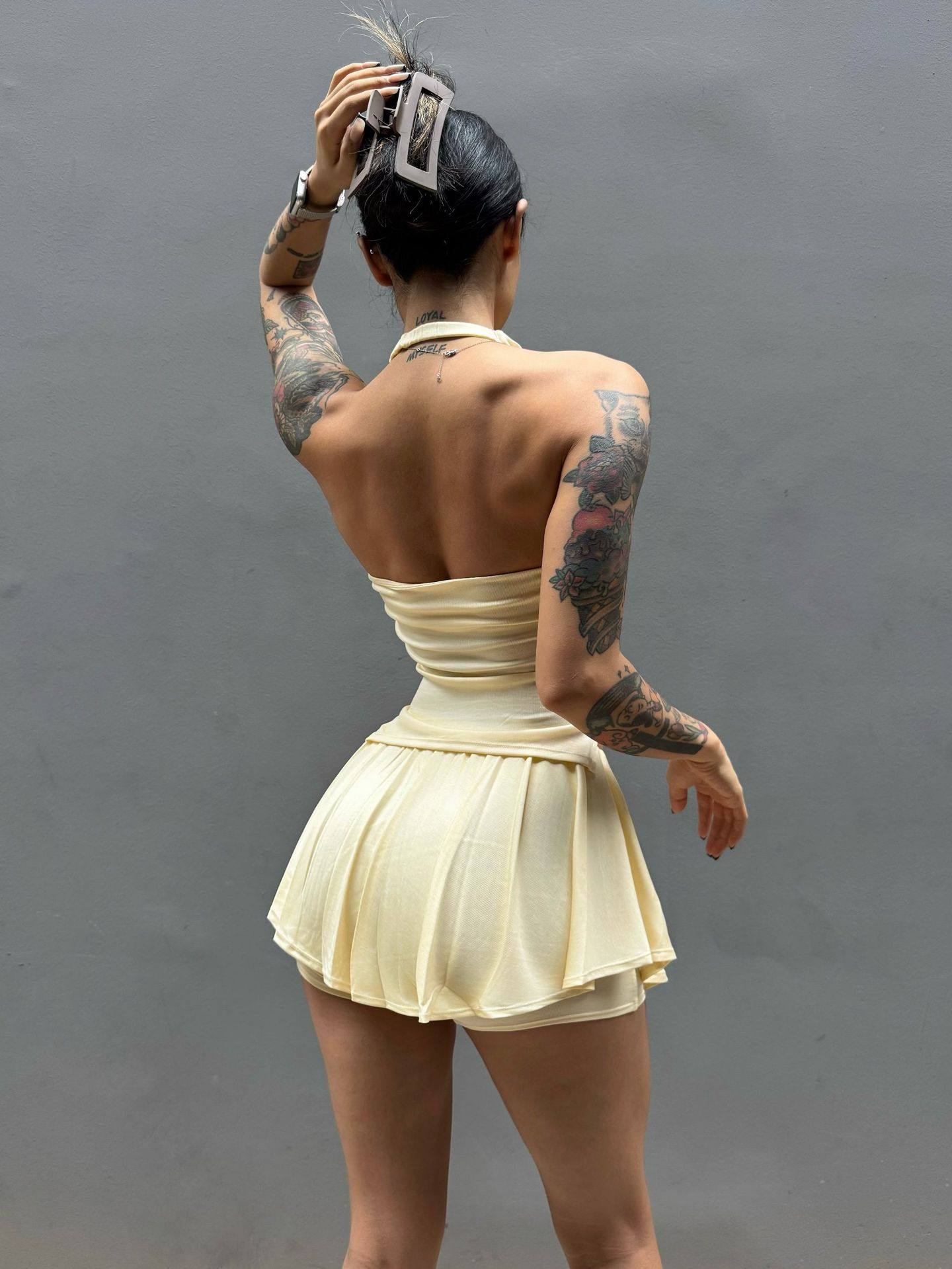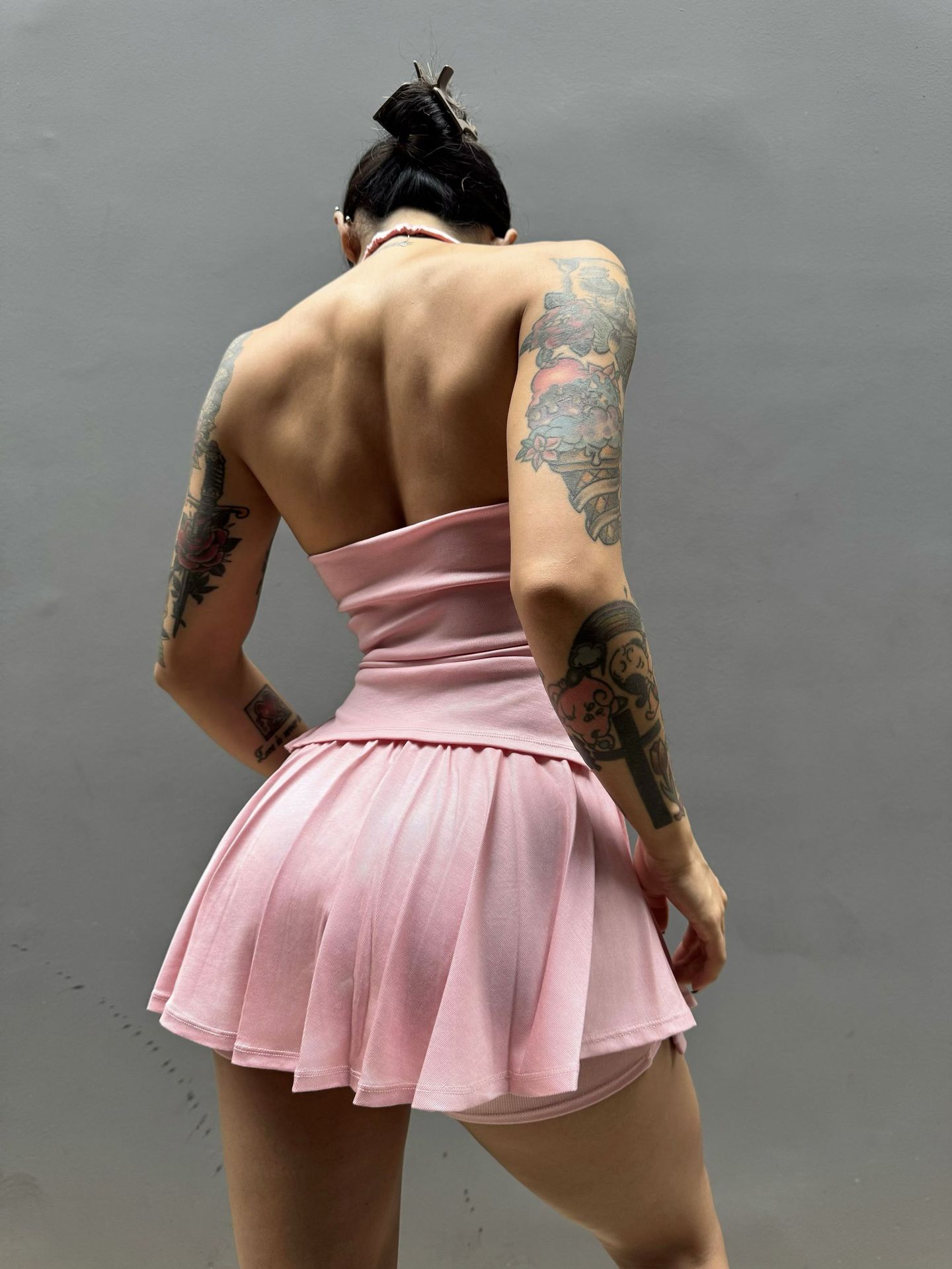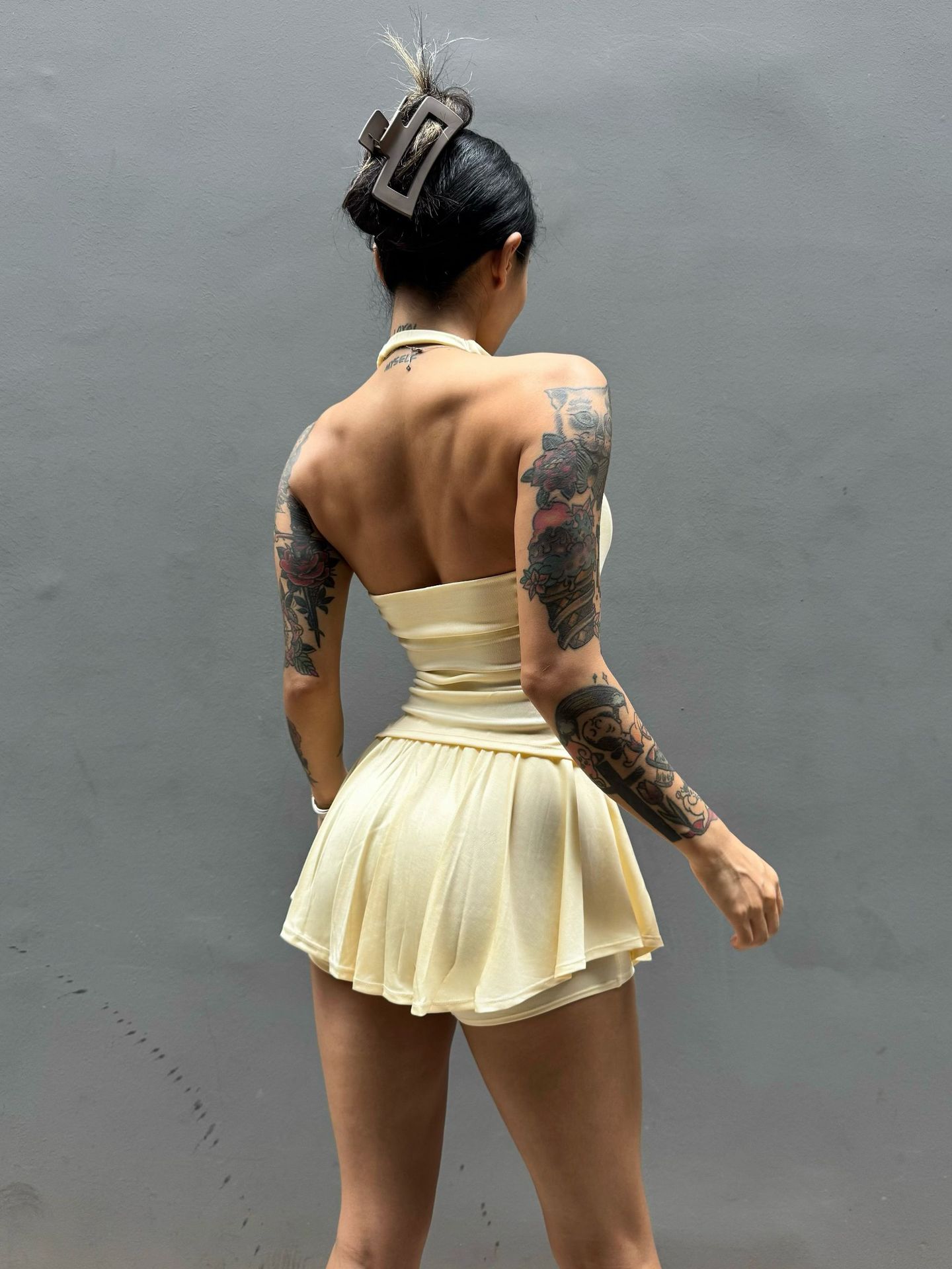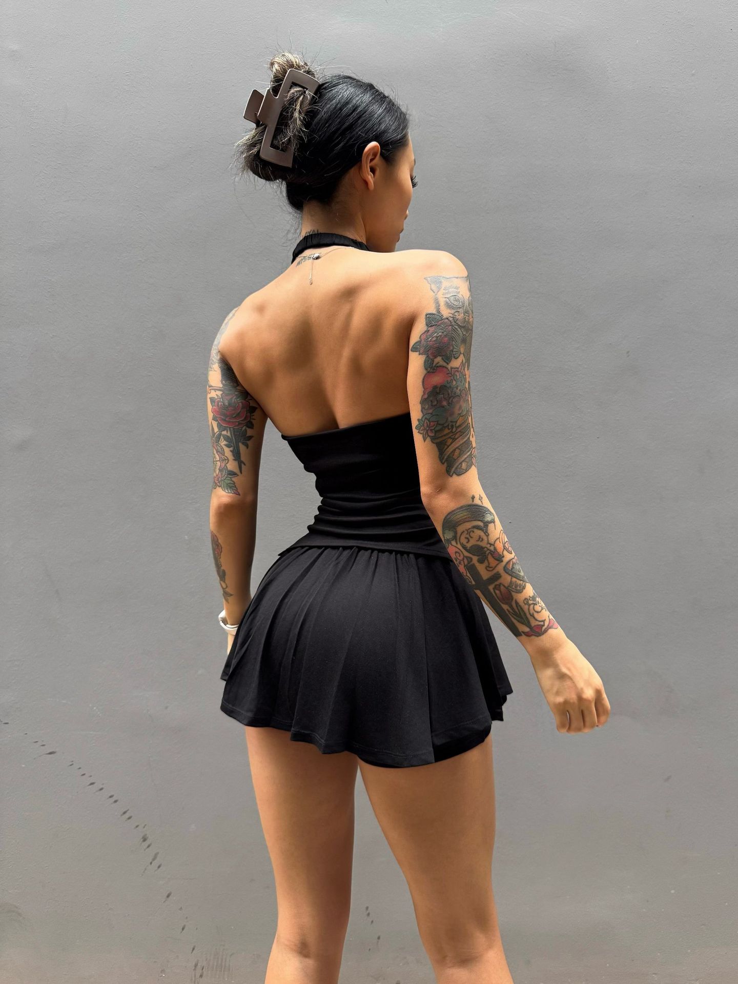 모달 피트니스 요가 스포츠 브라 조끼 하프 길이 플리츠 스커트 노출 방지 러닝 통기성 및 고탄성 세트