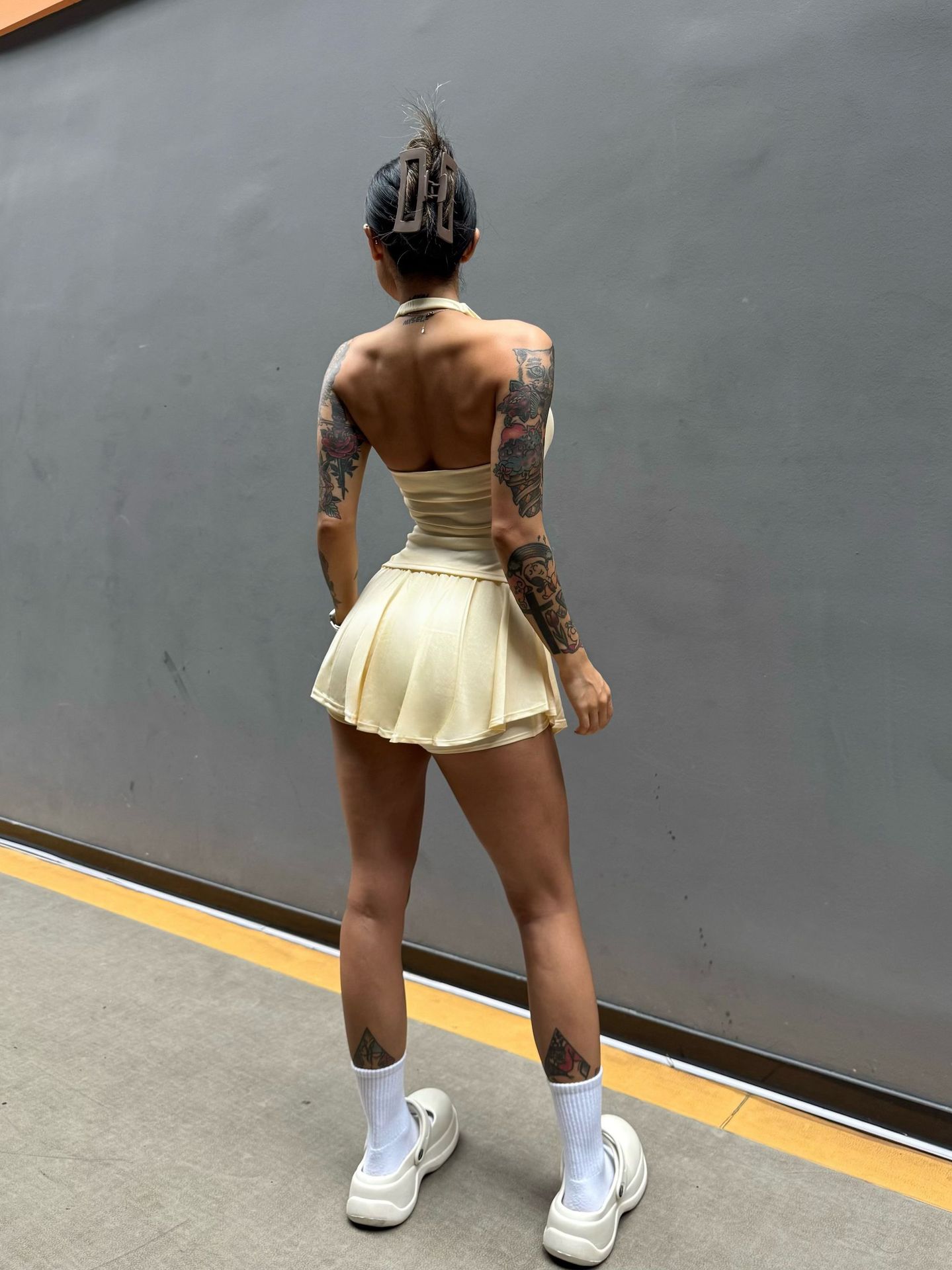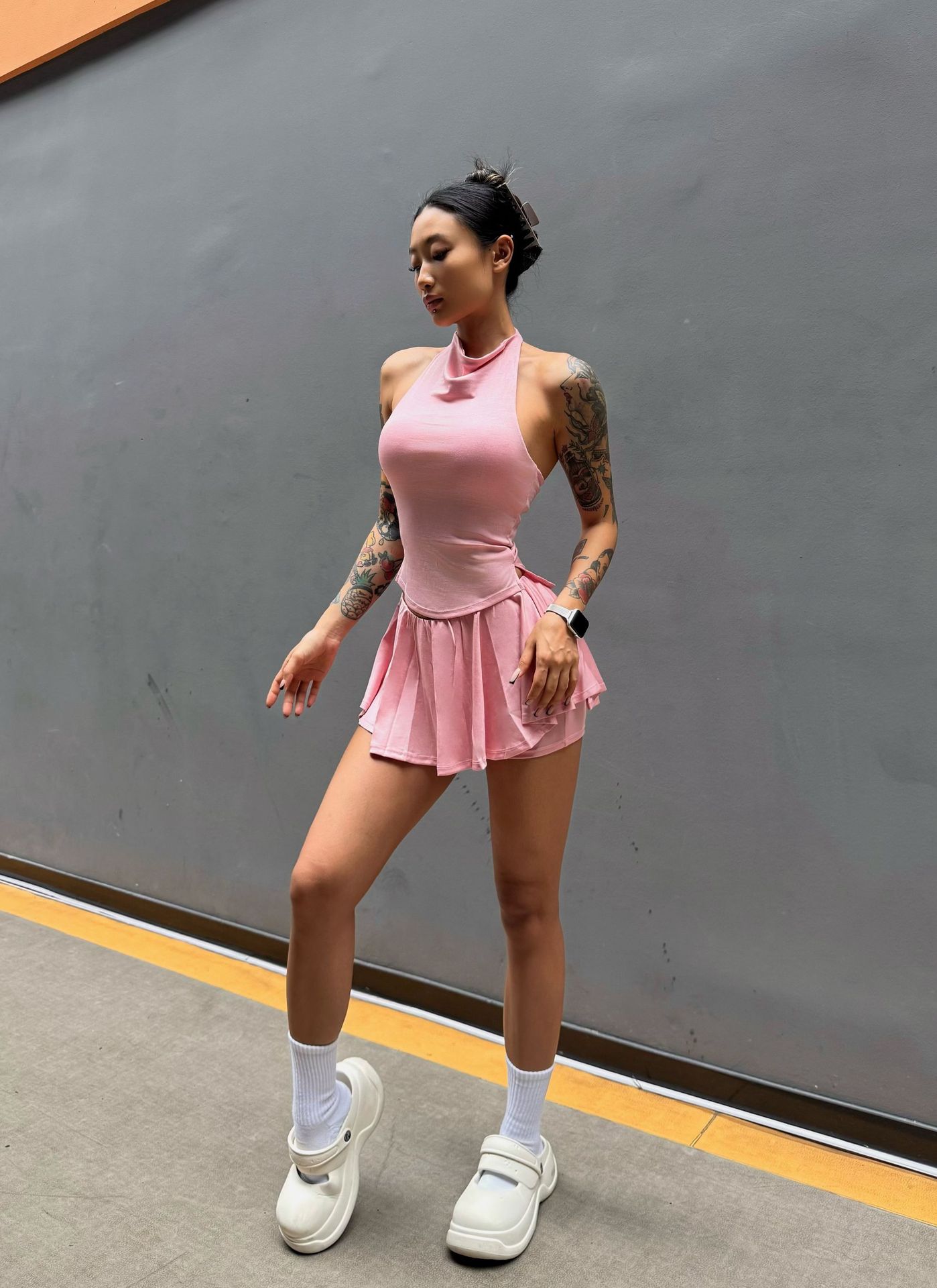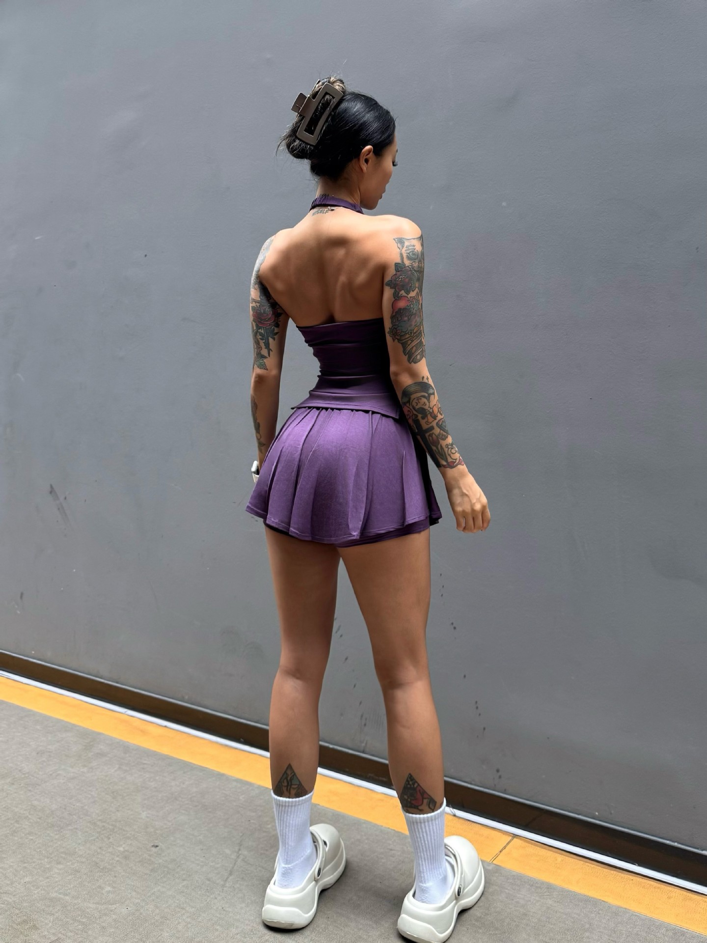 모달 피트니스 요가 스포츠 브라 조끼 하프 길이 플리츠 스커트 노출 방지 러닝 통기성 및 고탄성 세트스토어 가기