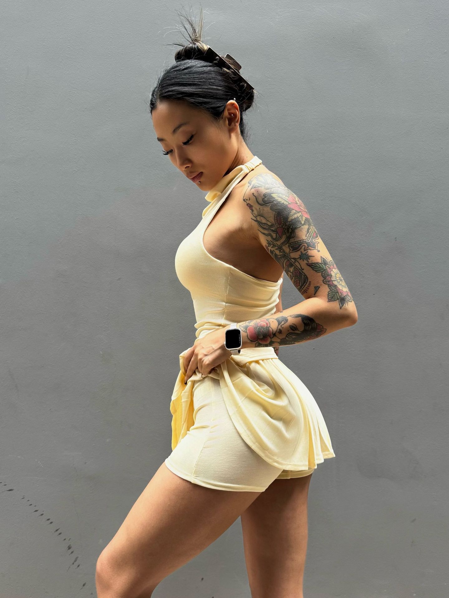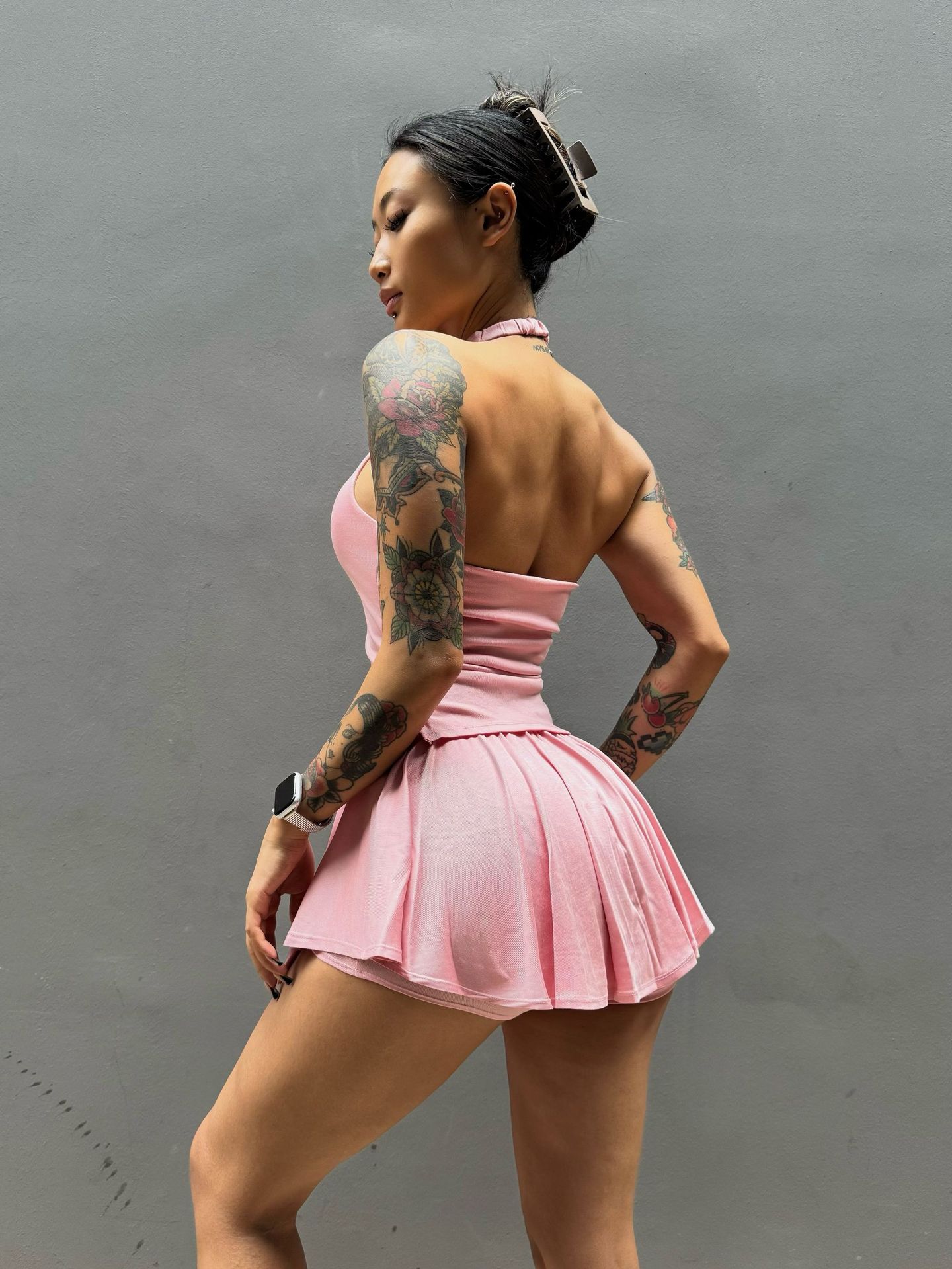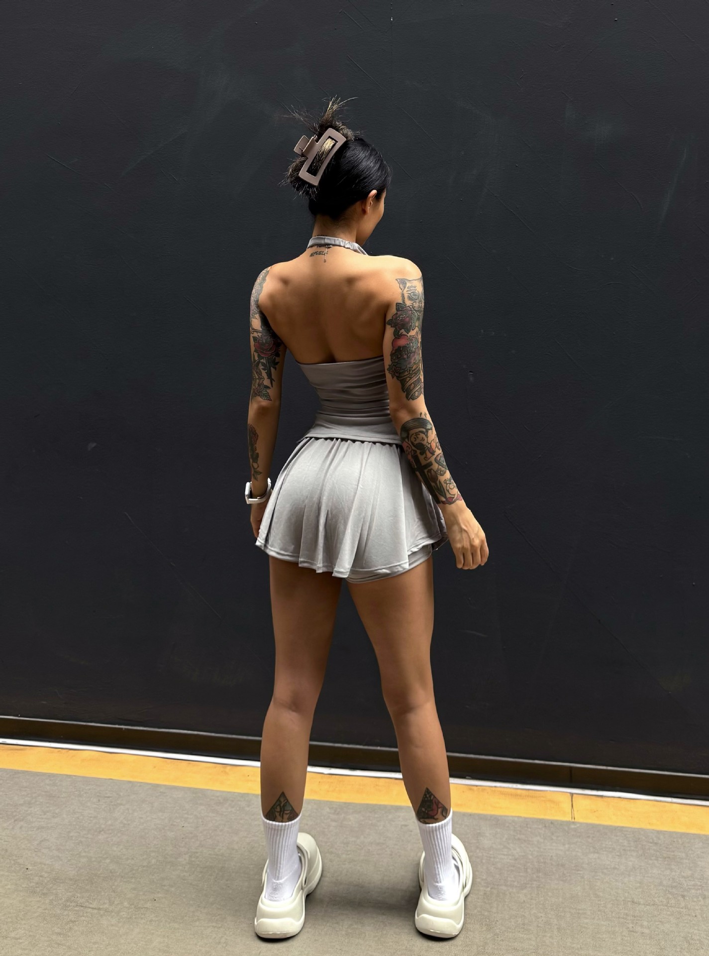 모달 피트니스 요가 스포츠 브라 조끼 하프 길이 플리츠 스커트 노출 방지 러닝 통기성 및 고탄성 세트스토어 가기