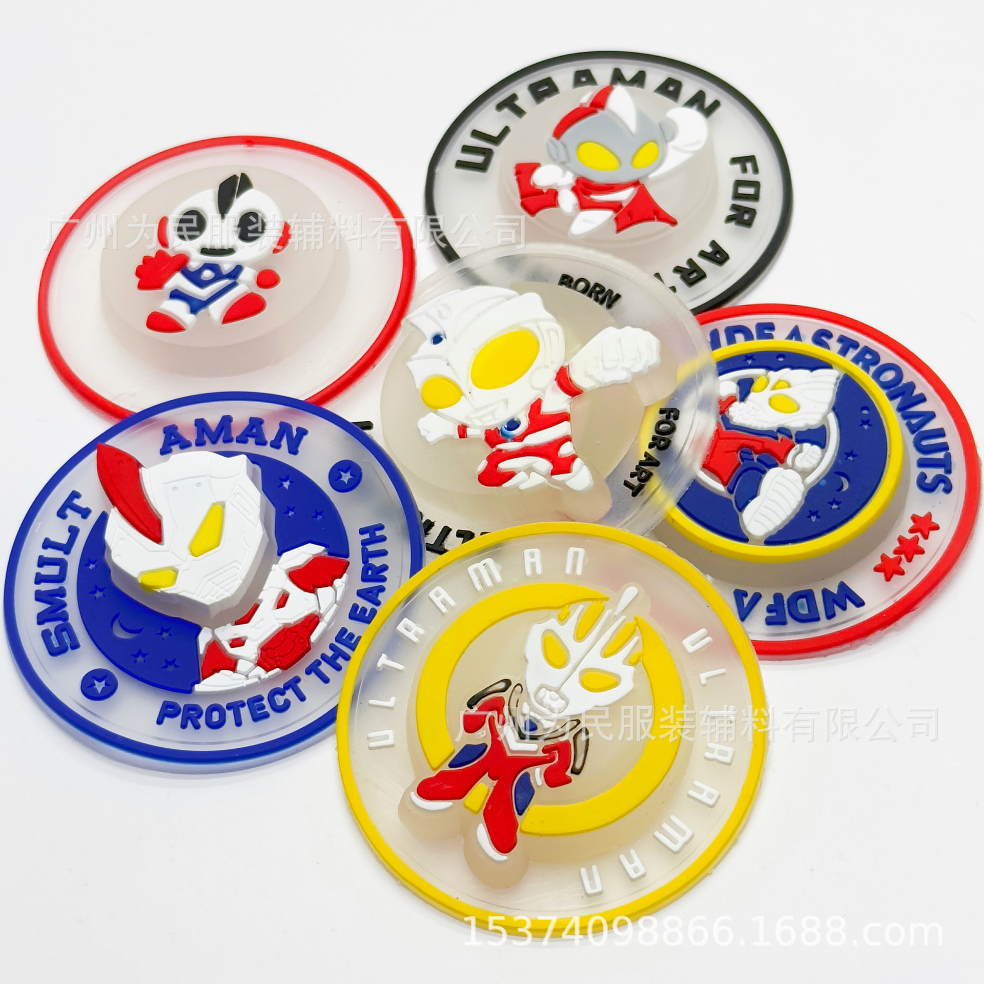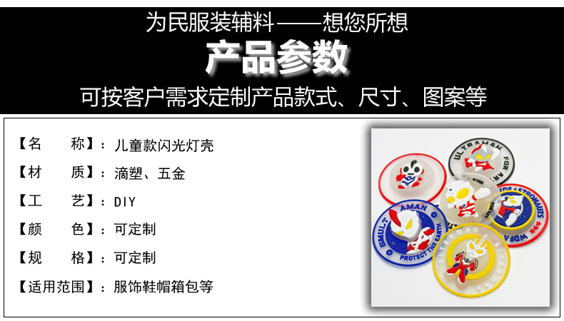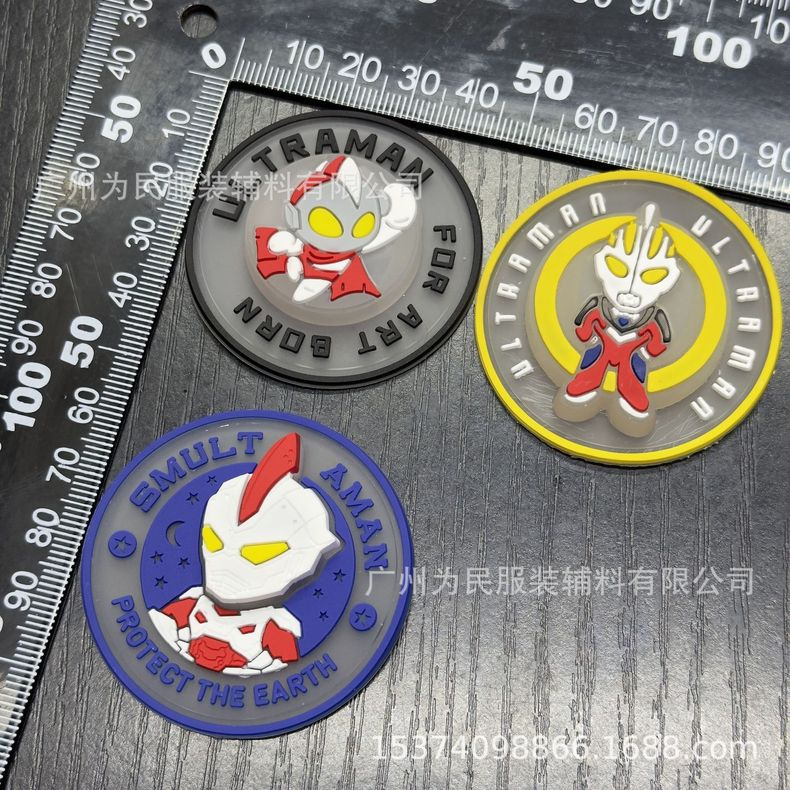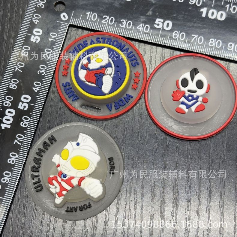 샘플 테스트용 섬유 부자재, 멋진 울트라맨 디자인, 한 번에 반짝이는 플라스틱 소프트 젤 스탬프, 점멸등 케이스, 원형 표지판