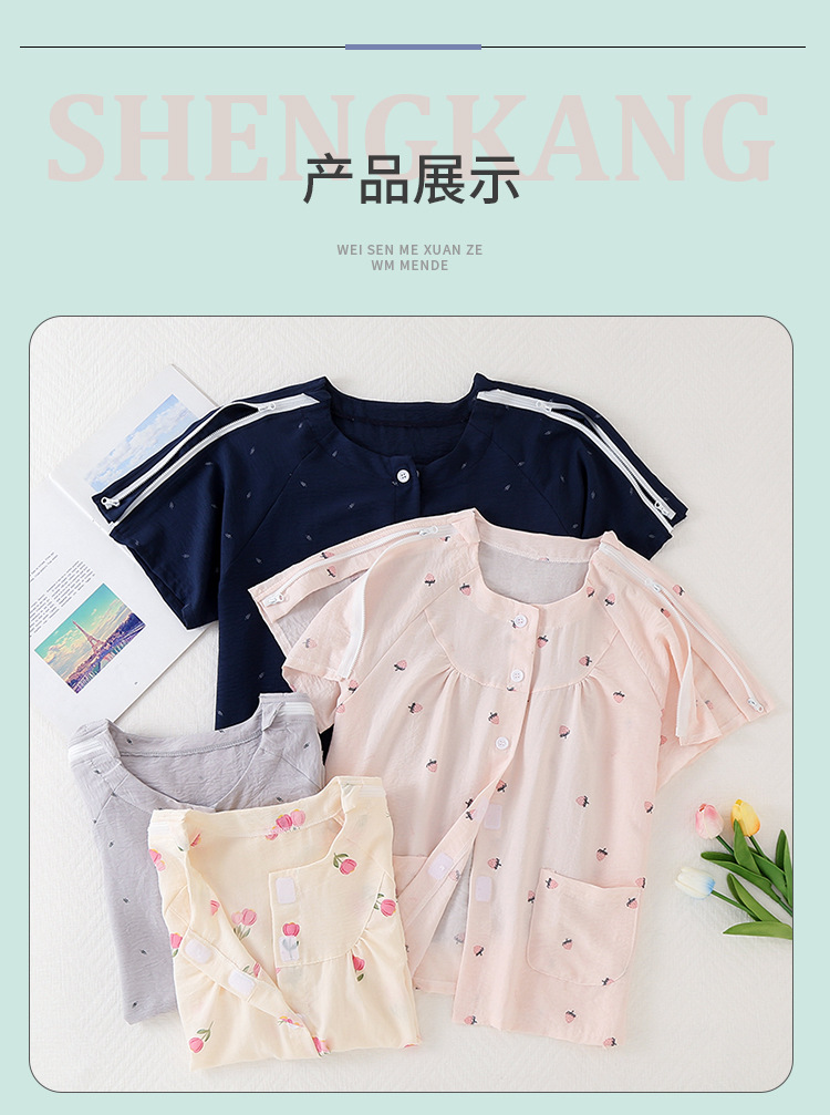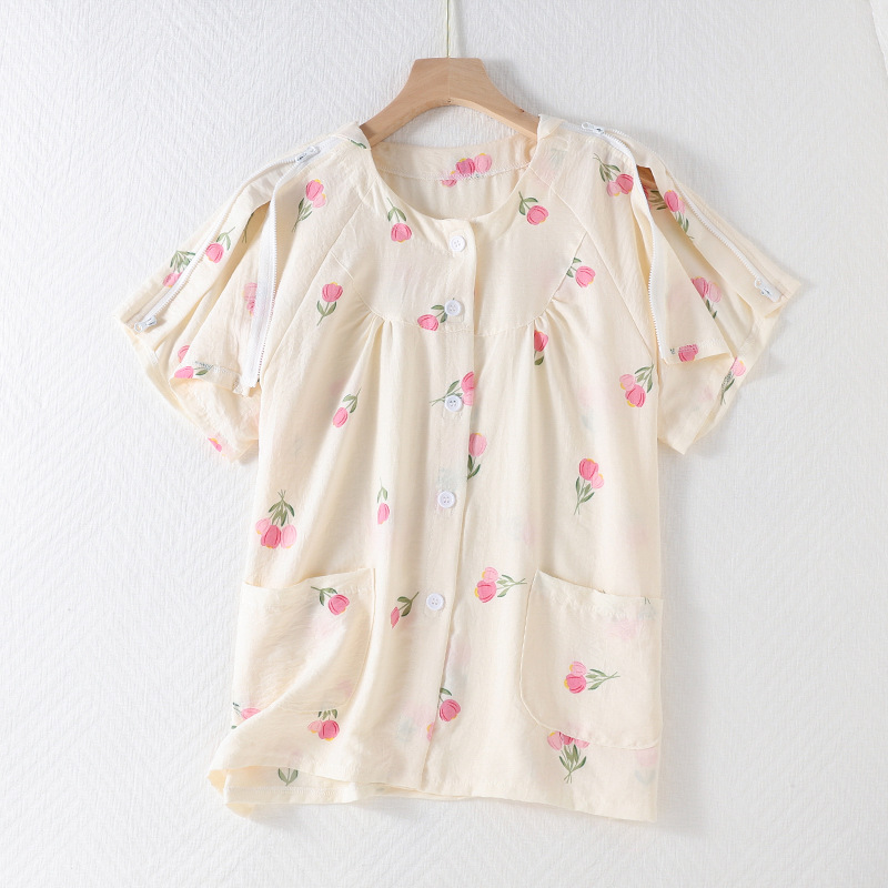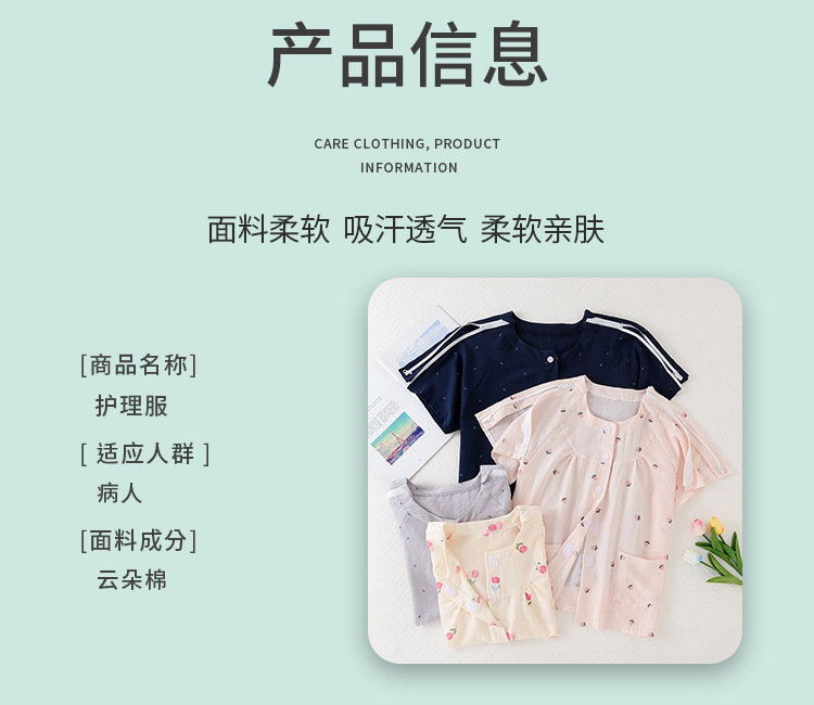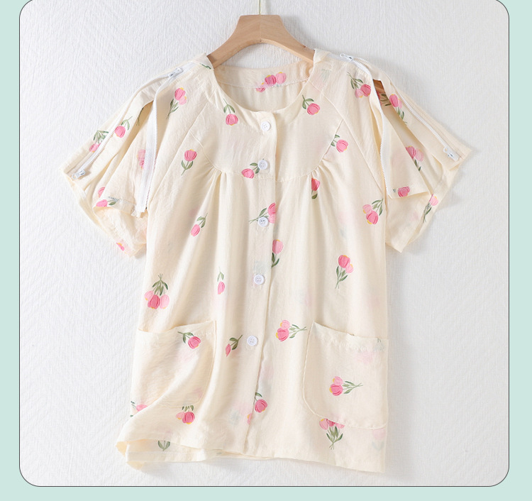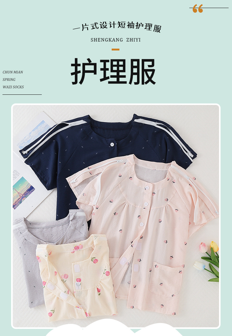 골절, 침대에 누워 있는 마비 환자를 위한 성인 여름 병원 가운 세트, 잠옷, 반팔 상의, 부드러운 구름 면스토어 가기