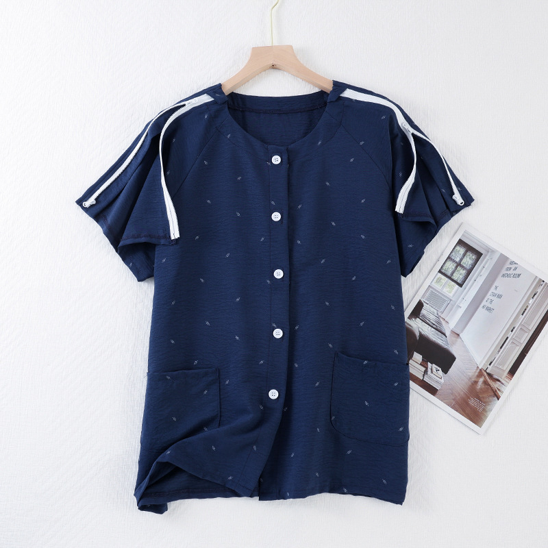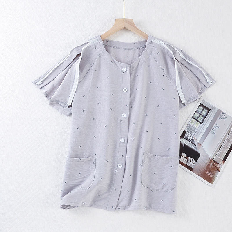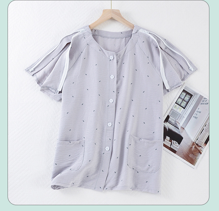 골절, 침대에 누워 있는 마비 환자를 위한 성인 여름 병원 가운 세트, 잠옷, 반팔 상의, 부드러운 구름 면