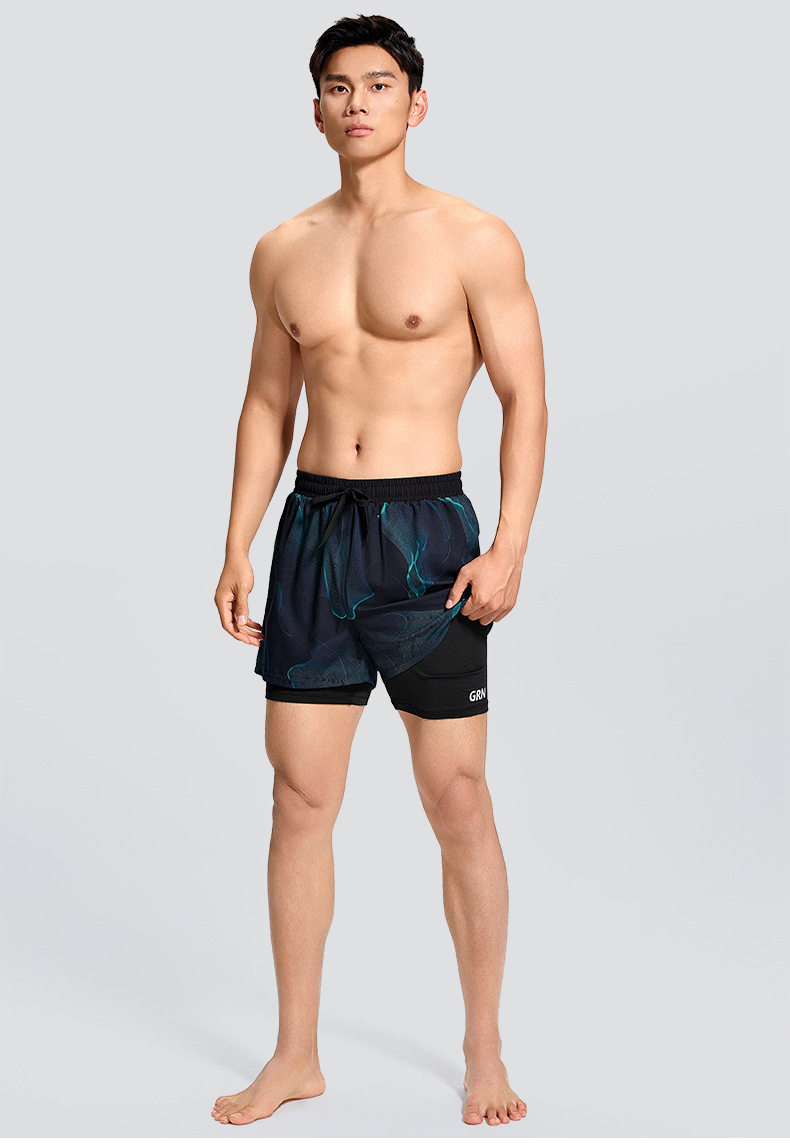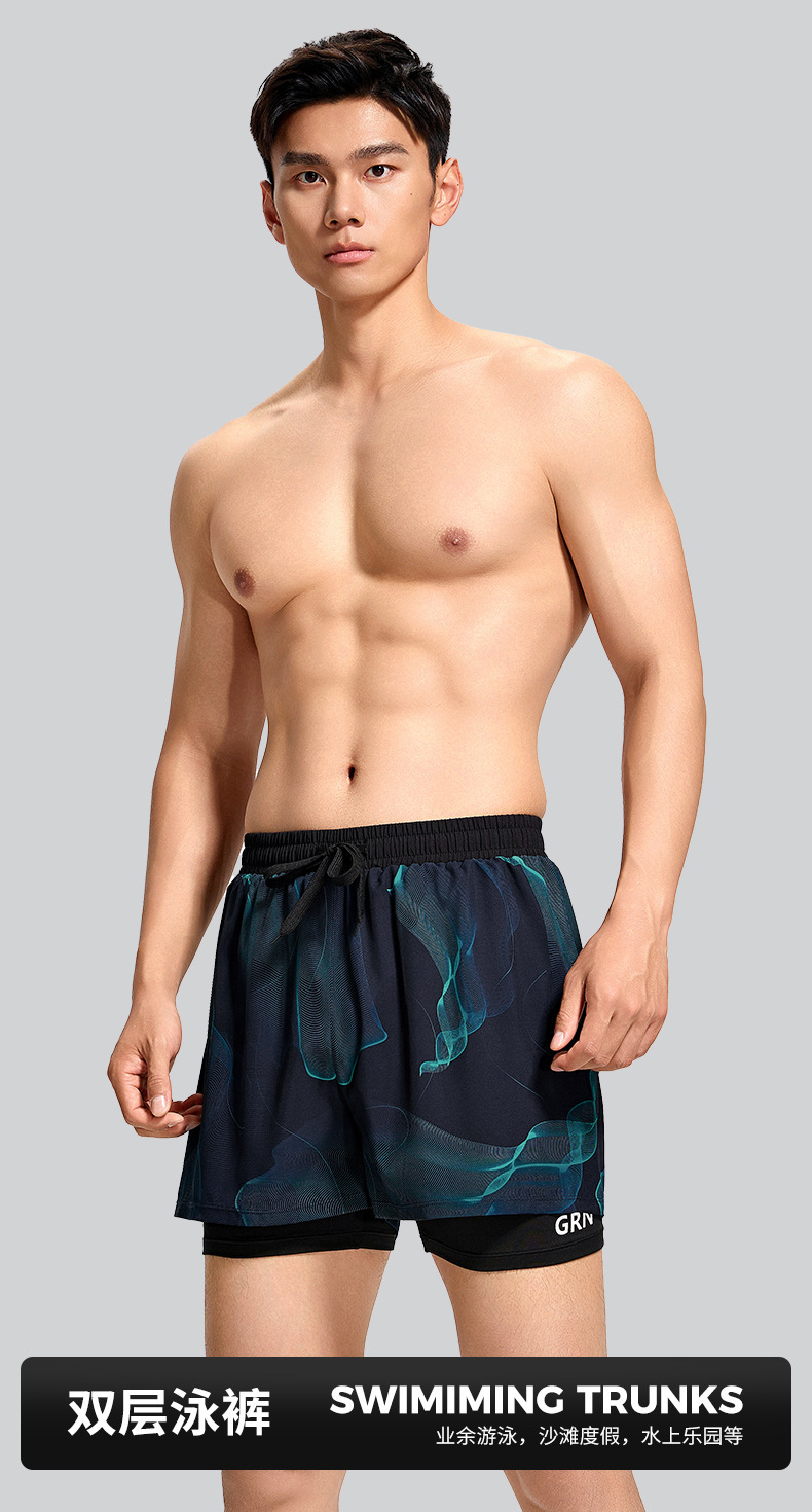 Guirenniao 수영 trunks 남성 성인 2025 새로운 당황 방지 전문 속건성 더블 레이어 대형 수영 장비 남성용 풀 세트