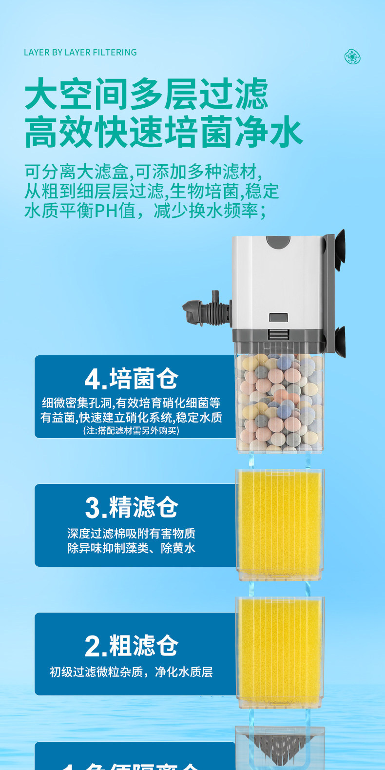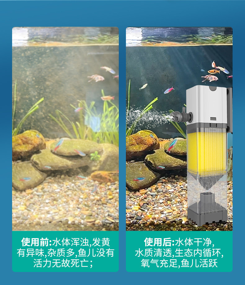 Jingye 수조 내장 필터 가정용 새로운 바닥 흡입 물고기 산소화 물결 물 순환 조절 가능한 올인원 기계스토어 가기
