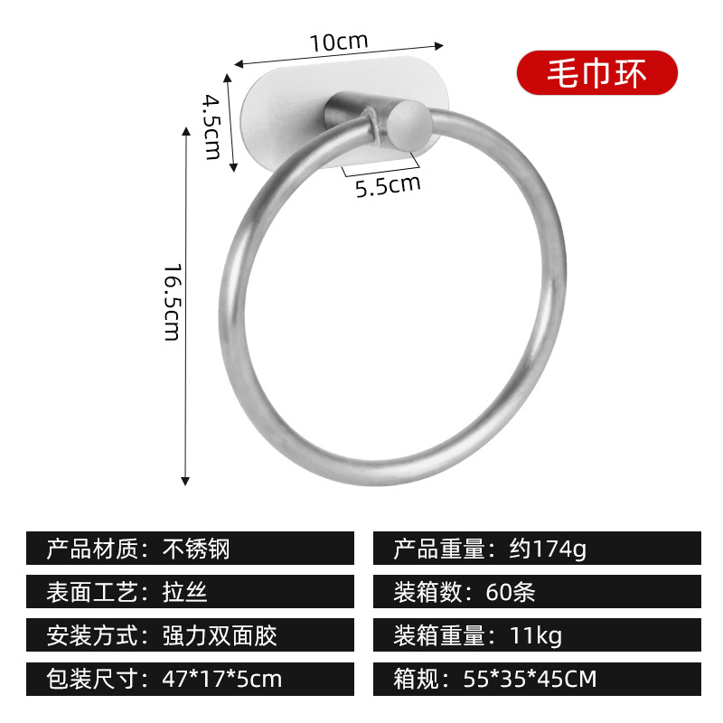 스테인리스 수건걸이 욕실 수건걸이 화장실 액세서리 손수건걸이 링 욕실타월걸이 무타공