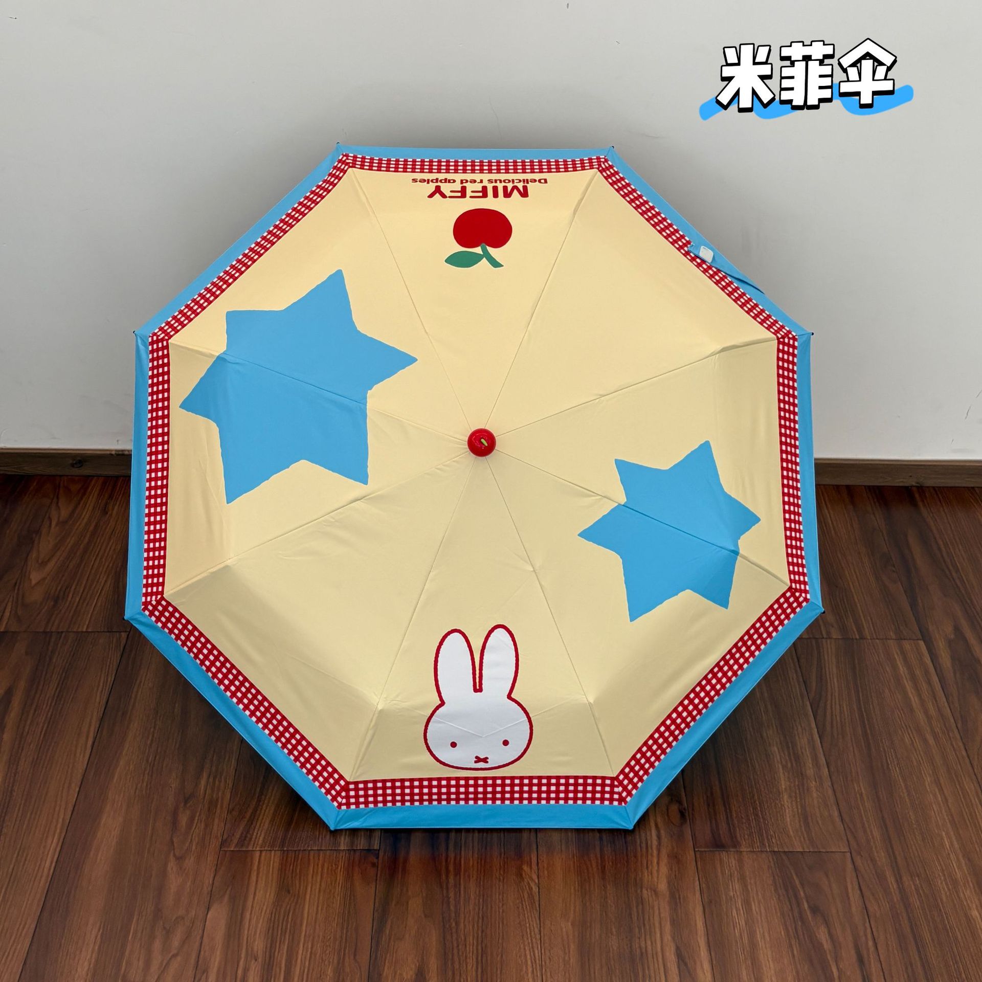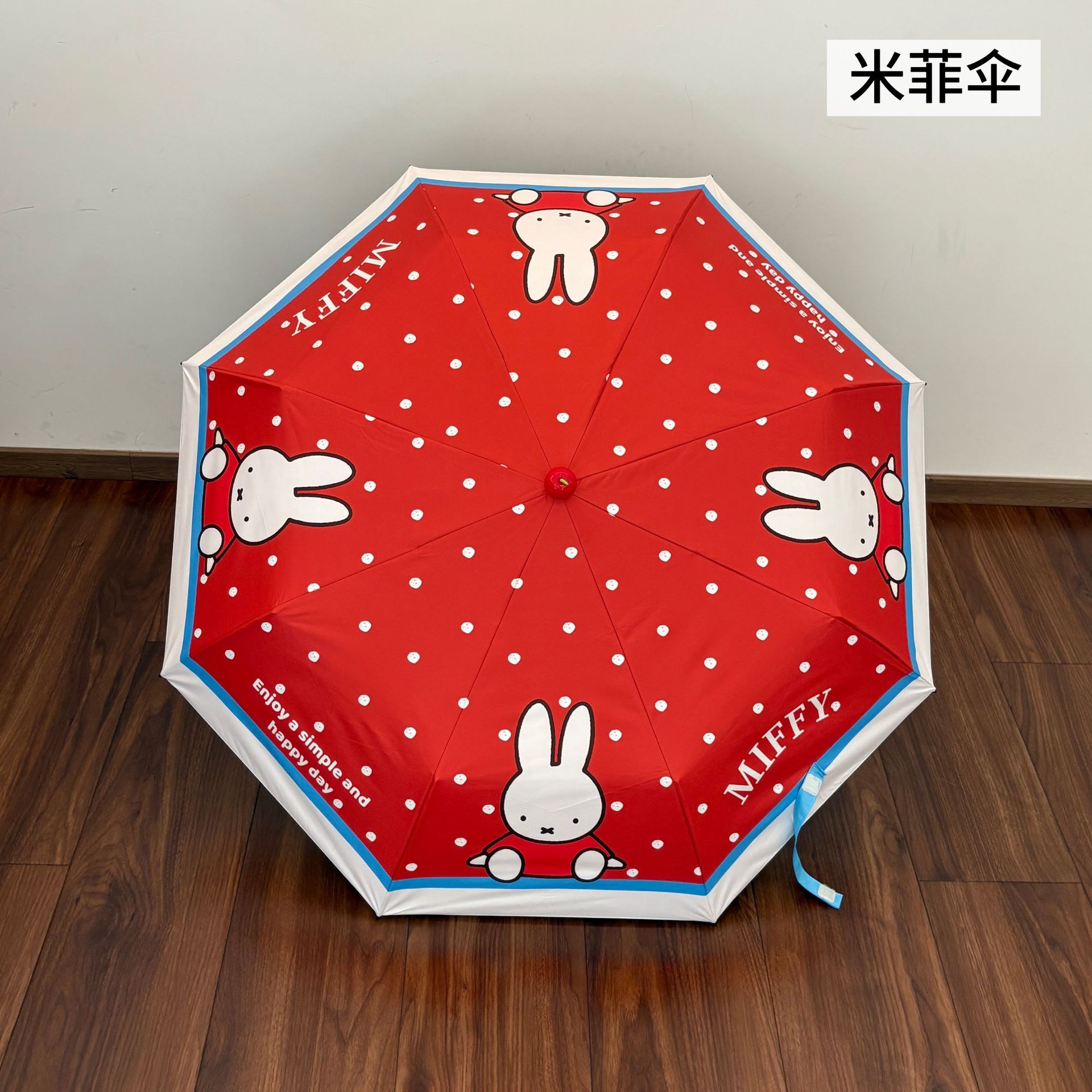 정품 공인 미피 토끼 우산 귀여운 빨간 부츠 비 또는 빛 접이식 자외선 차단제 자외선 차단 우산