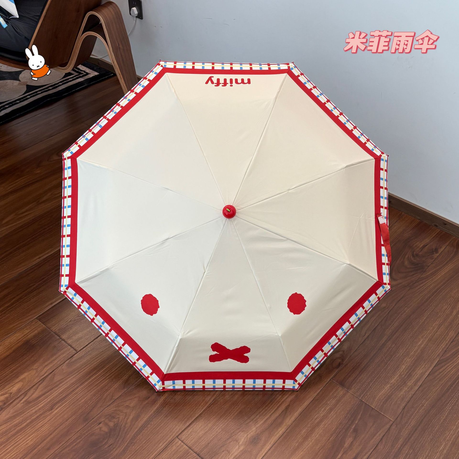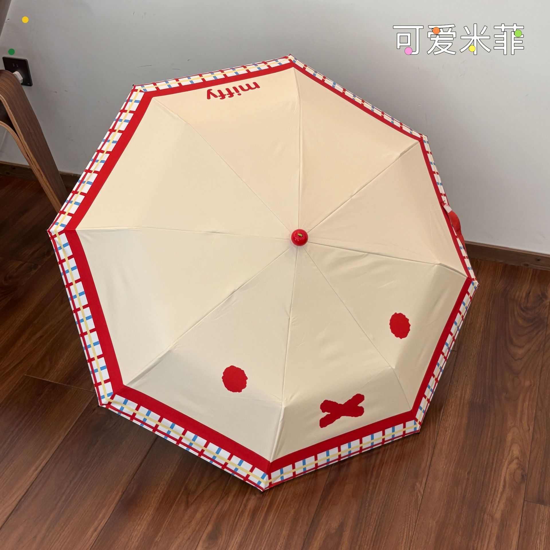 정품 공인 미피 토끼 우산 귀여운 빨간 부츠 비 또는 빛 접이식 자외선 차단제 자외선 차단 우산스토어 가기