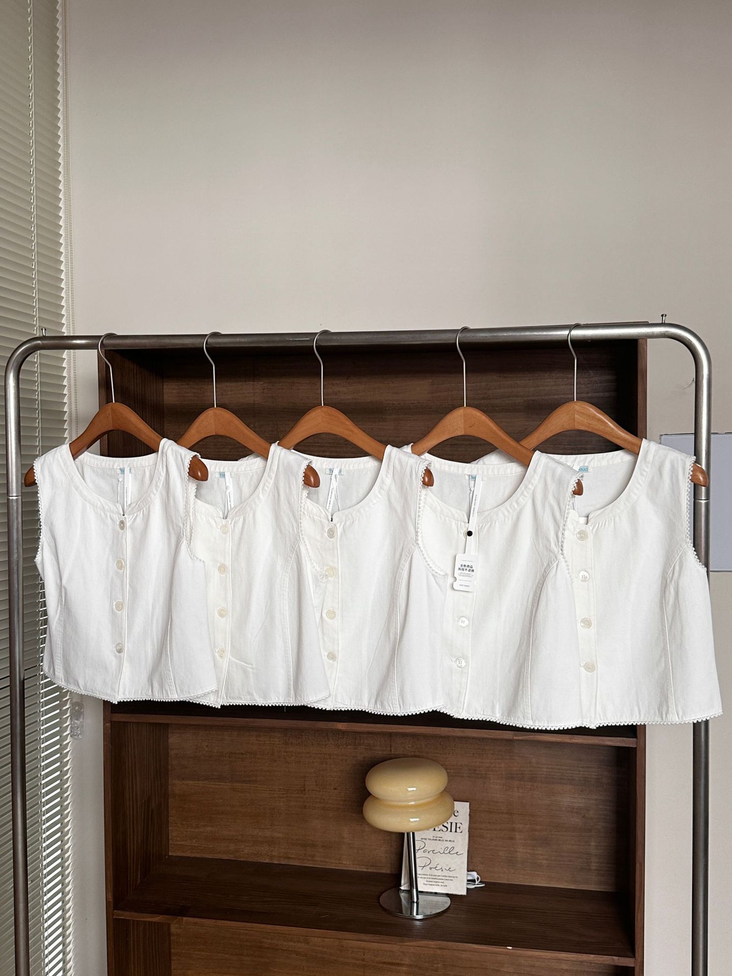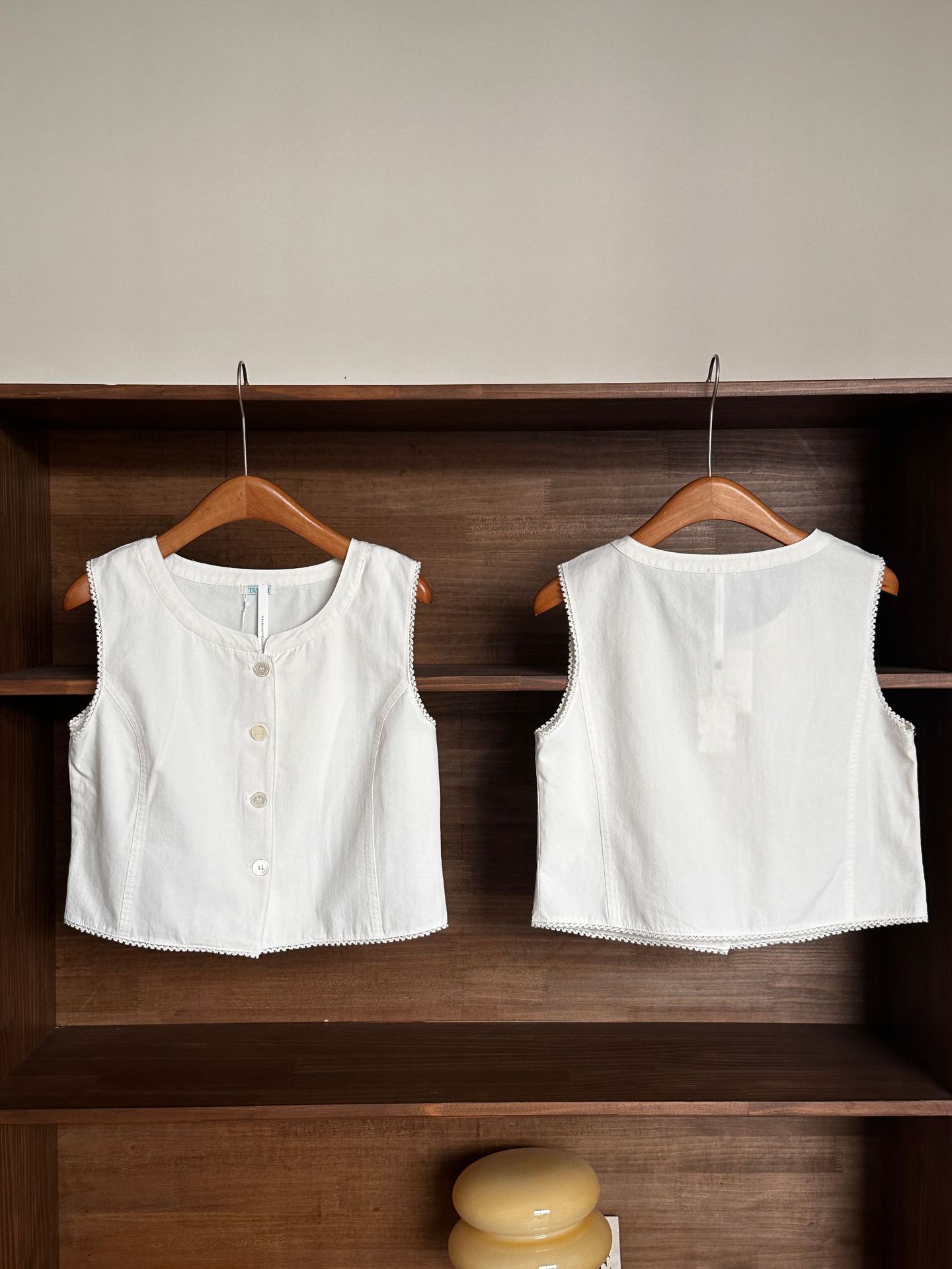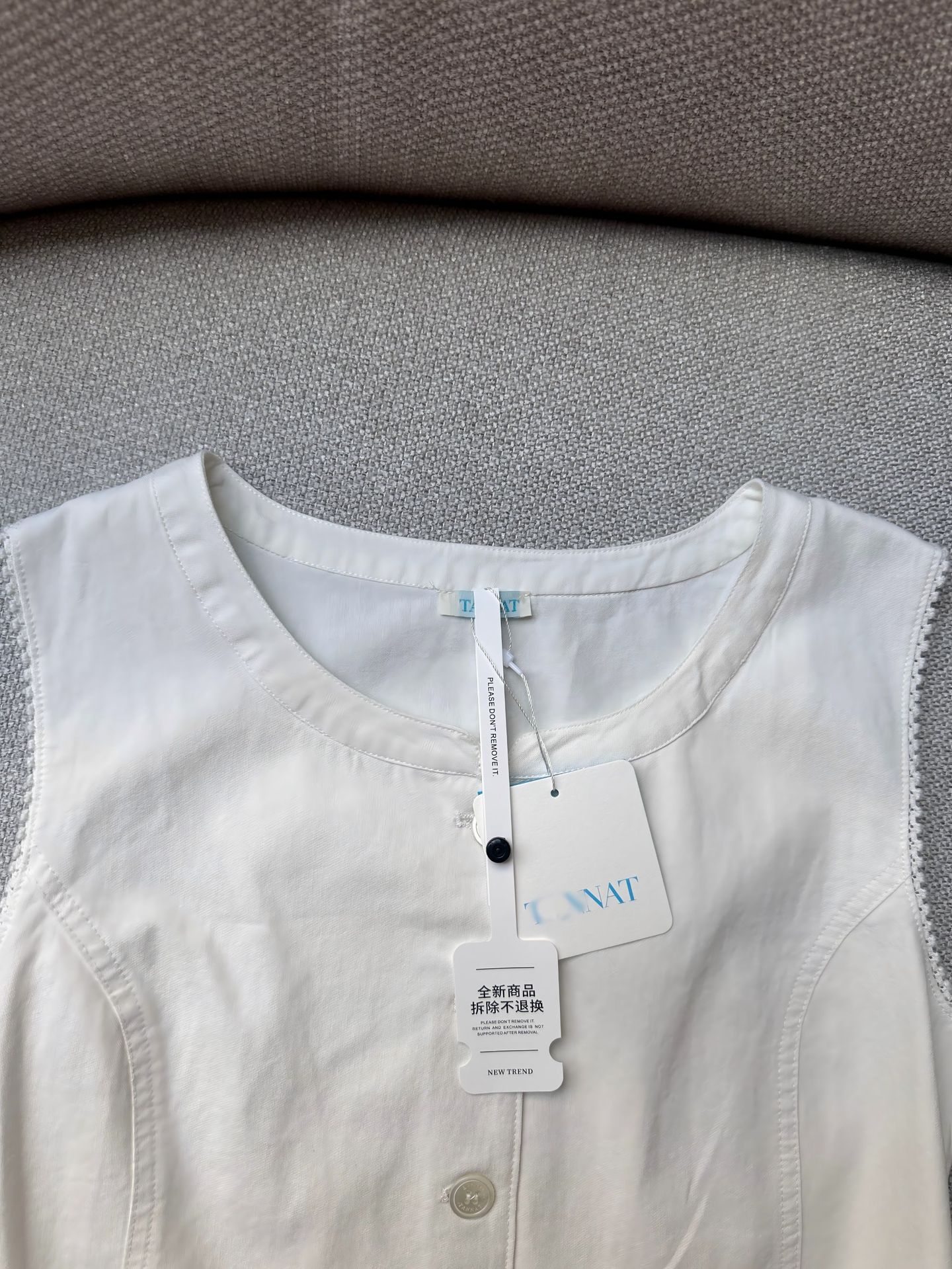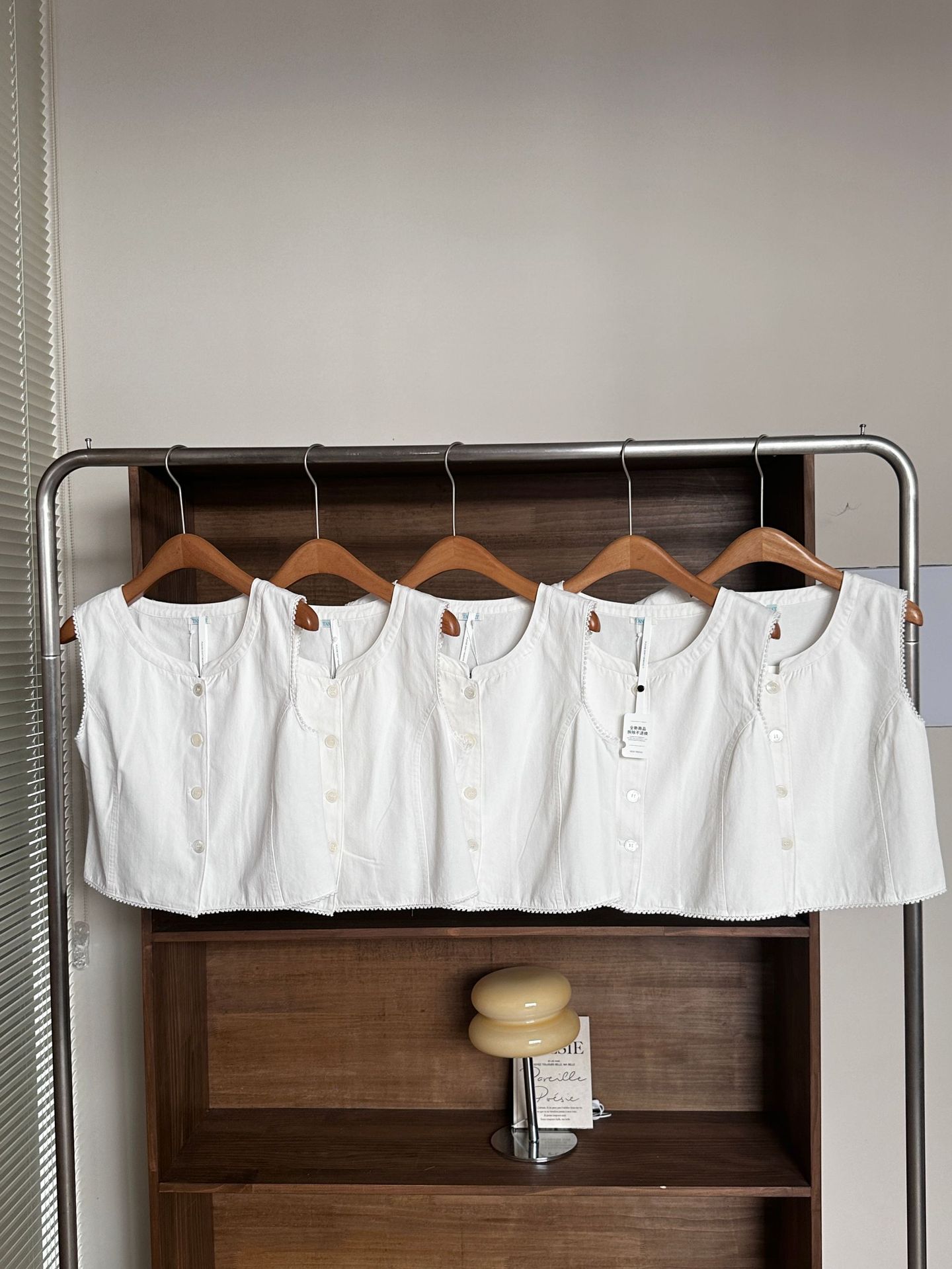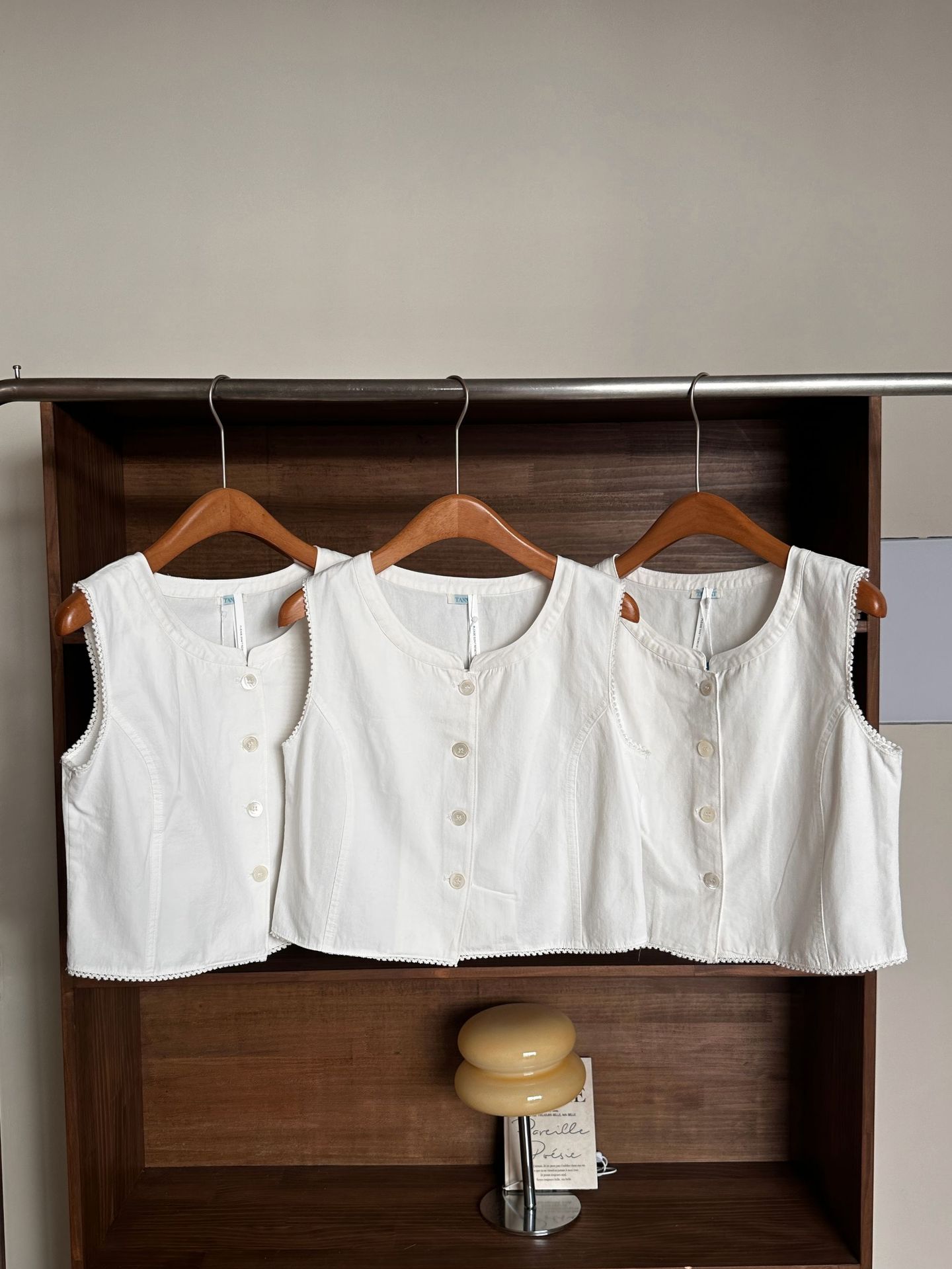 여성용 Now H 린넨 더블 브레스트 조끼 2025 여름 미니멀리스트 한국 스타일 하이 엔드 반팔 탑 Tan*t
