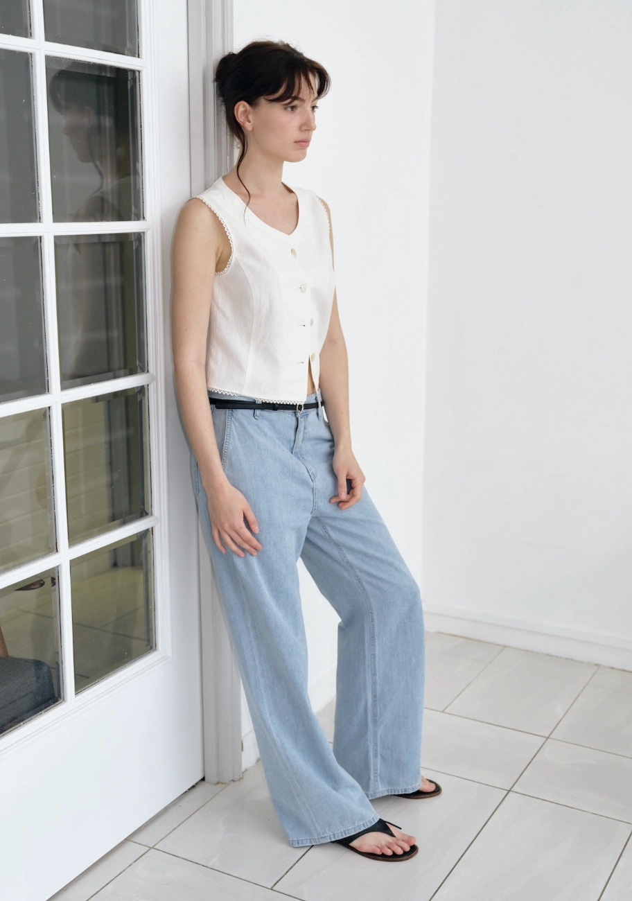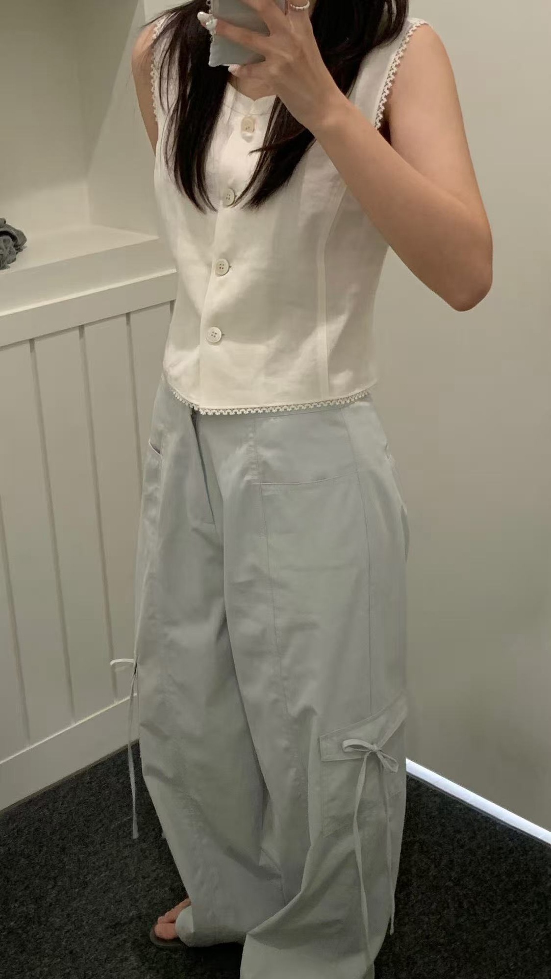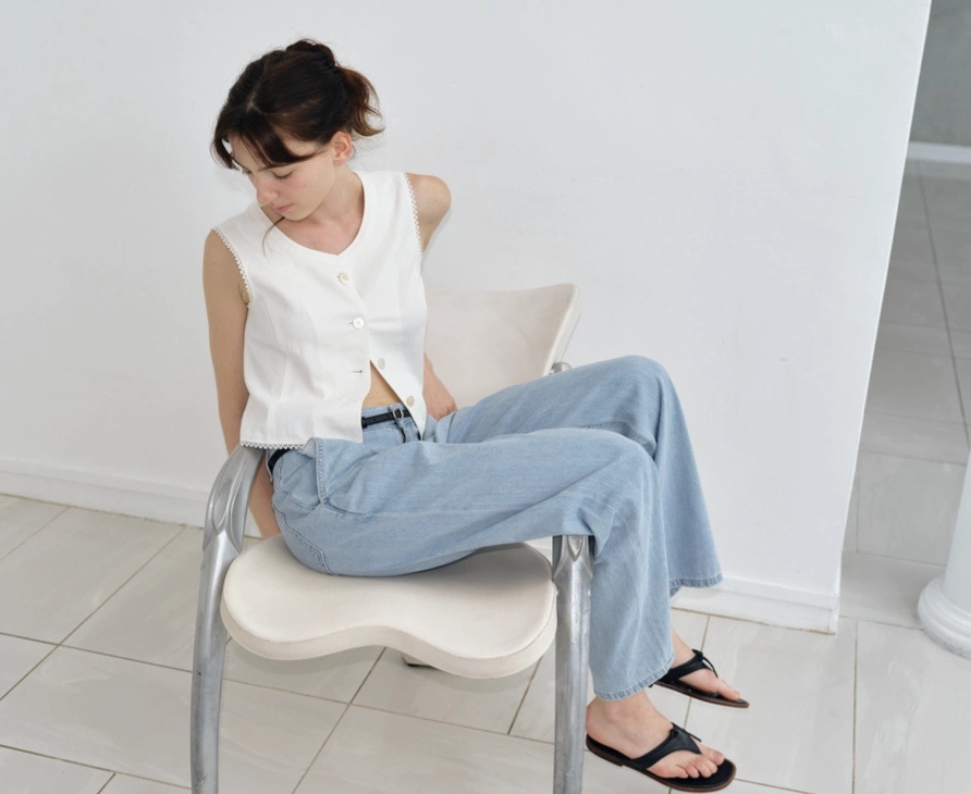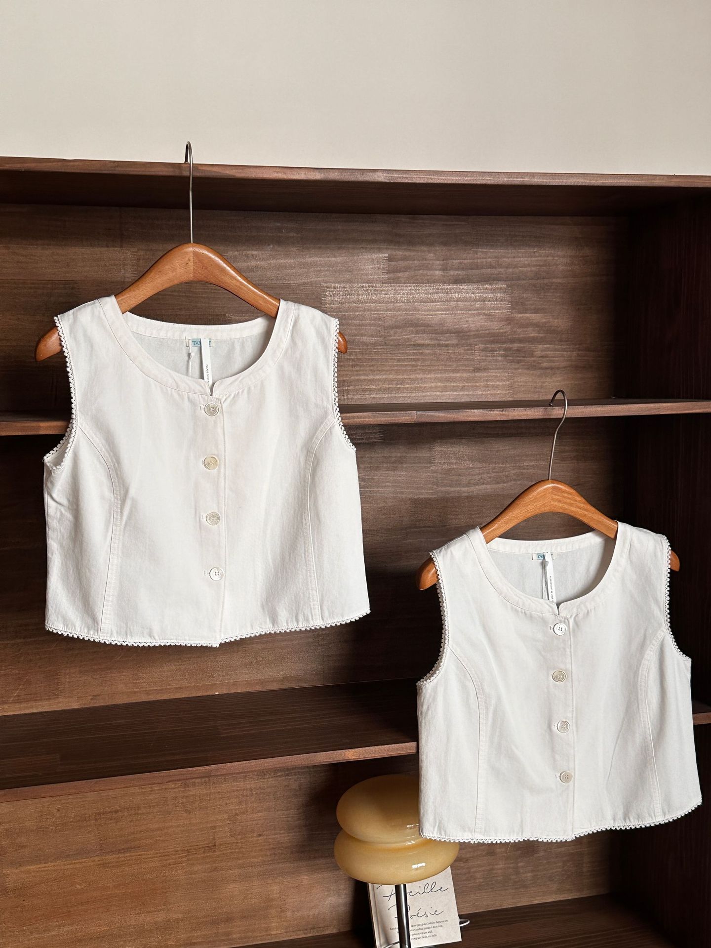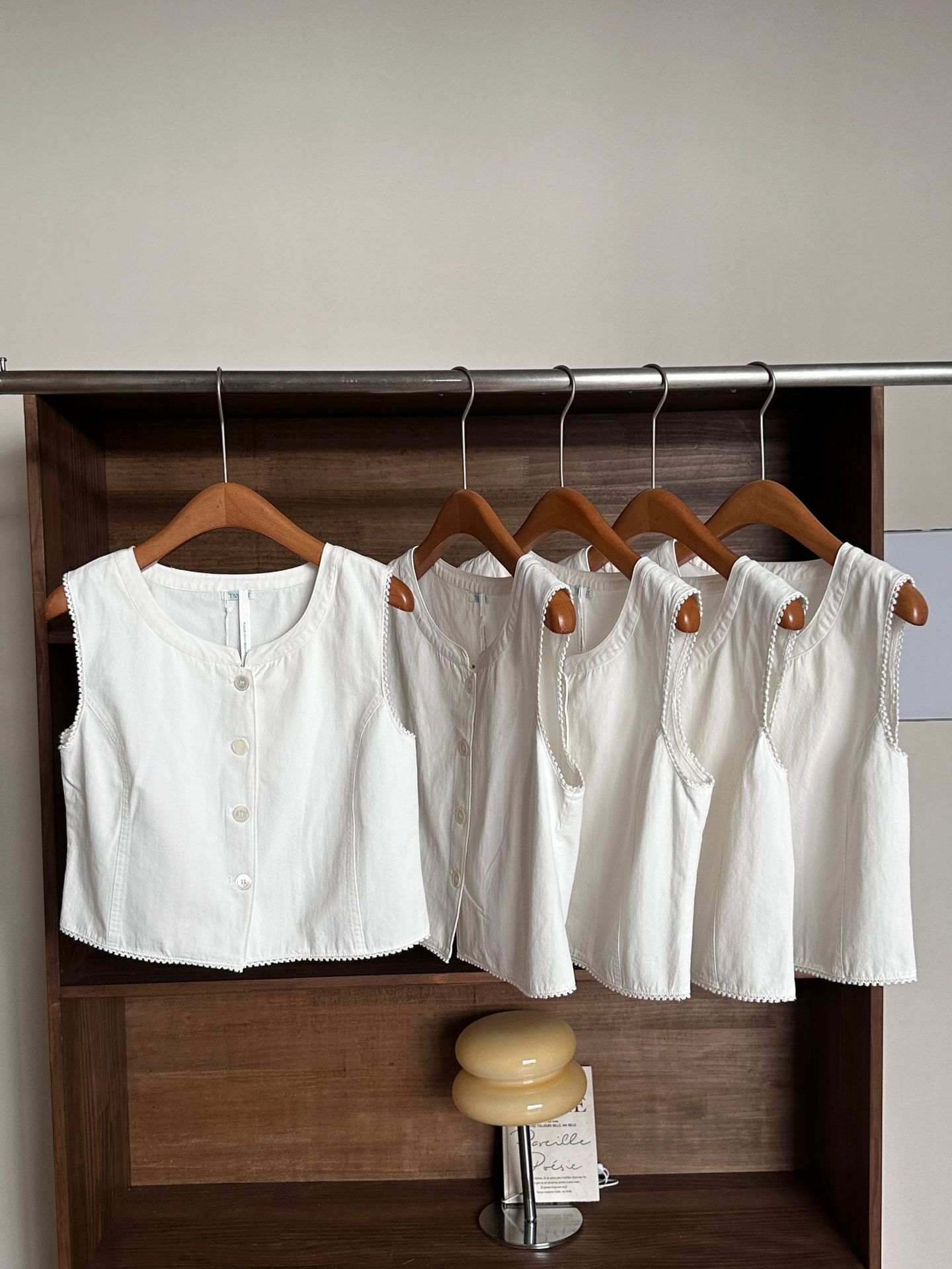 여성용 Now H 린넨 더블 브레스트 조끼 2025 여름 미니멀리스트 한국 스타일 하이 엔드 반팔 탑 Tan*t