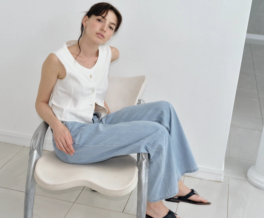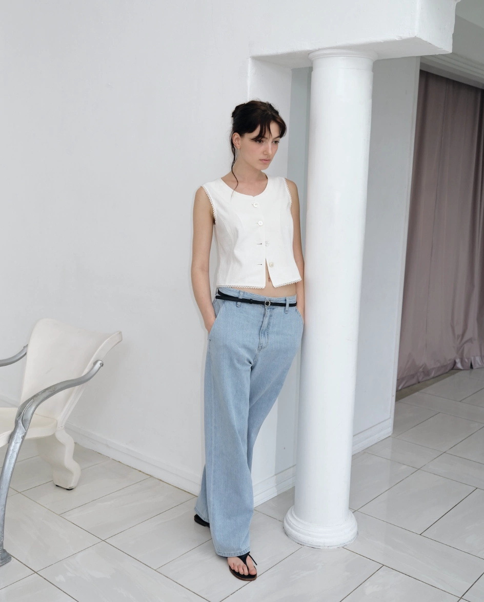 여성용 Now H 린넨 더블 브레스트 조끼 2025 여름 미니멀리스트 한국 스타일 하이 엔드 반팔 탑 Tan*t스토어 가기