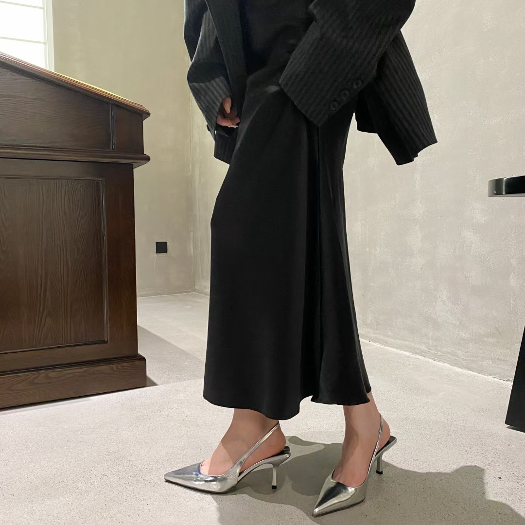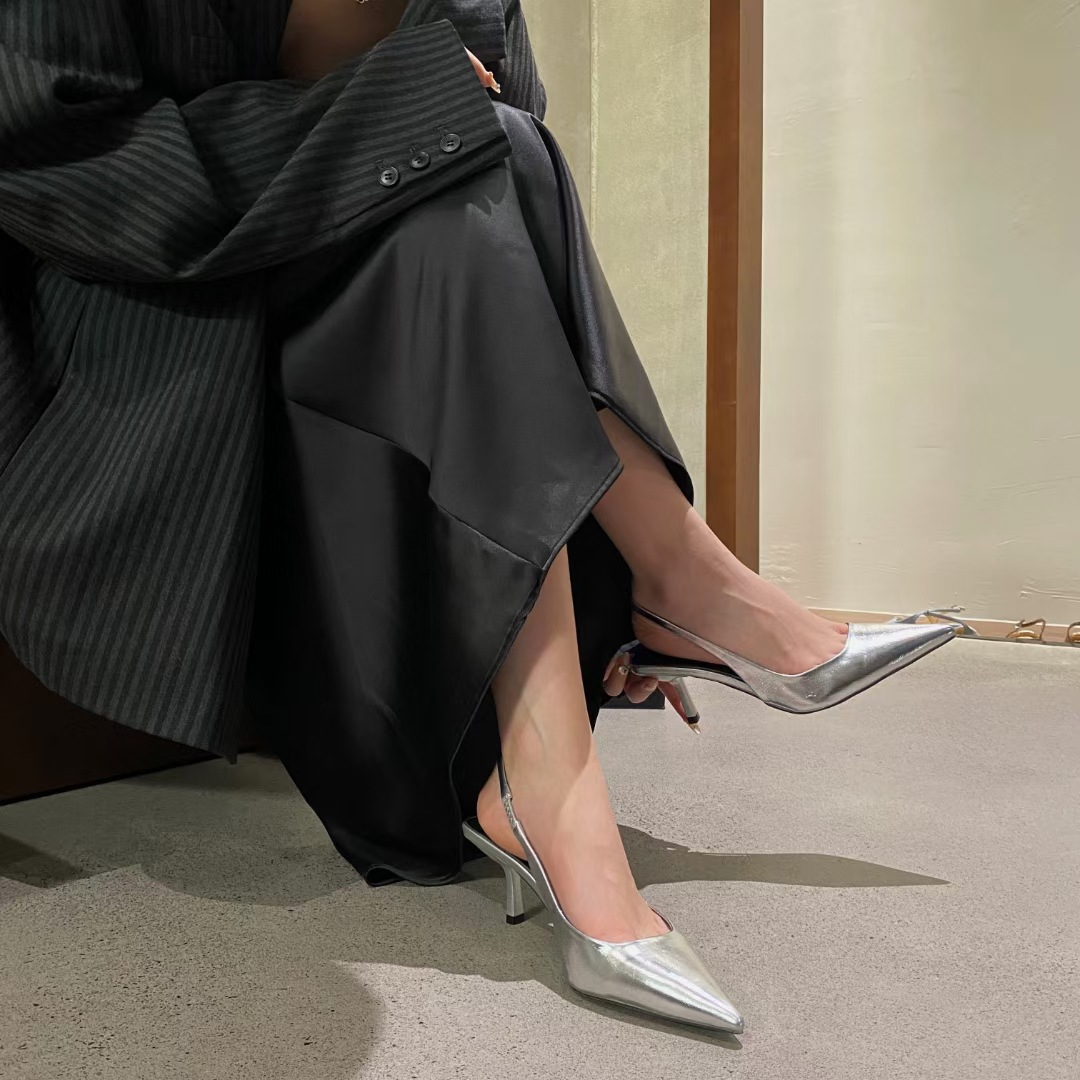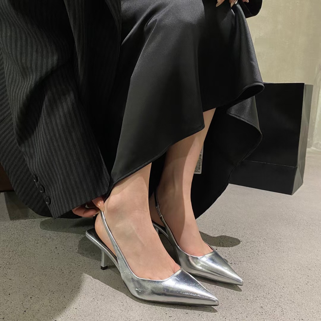 실버 하이힐, 포인티드 토, 토캡 샌들, 페어리 슈즈, 2025 봄 여름 신상 프렌치 스타일 힐리스 슈즈스토어 가기