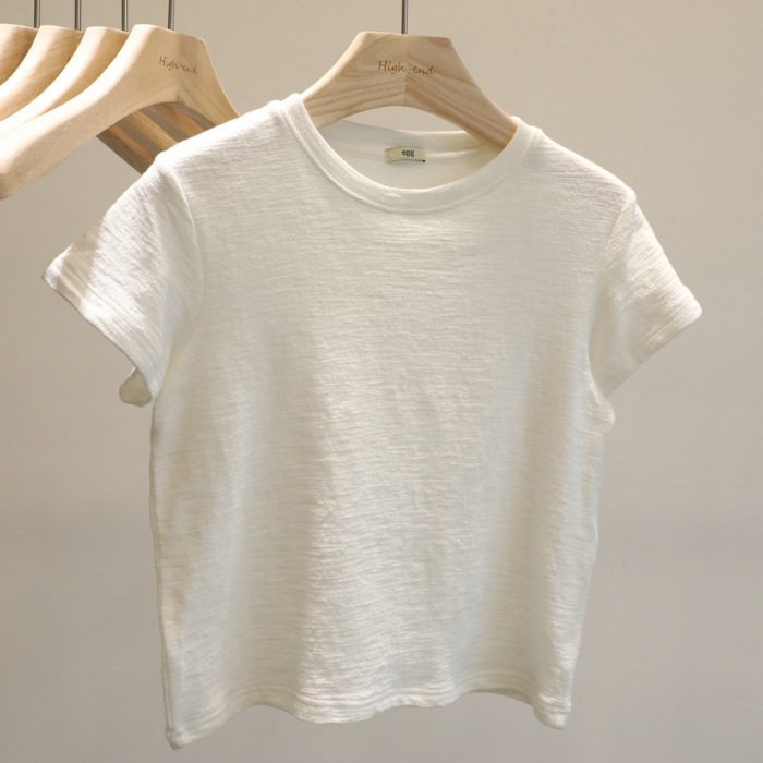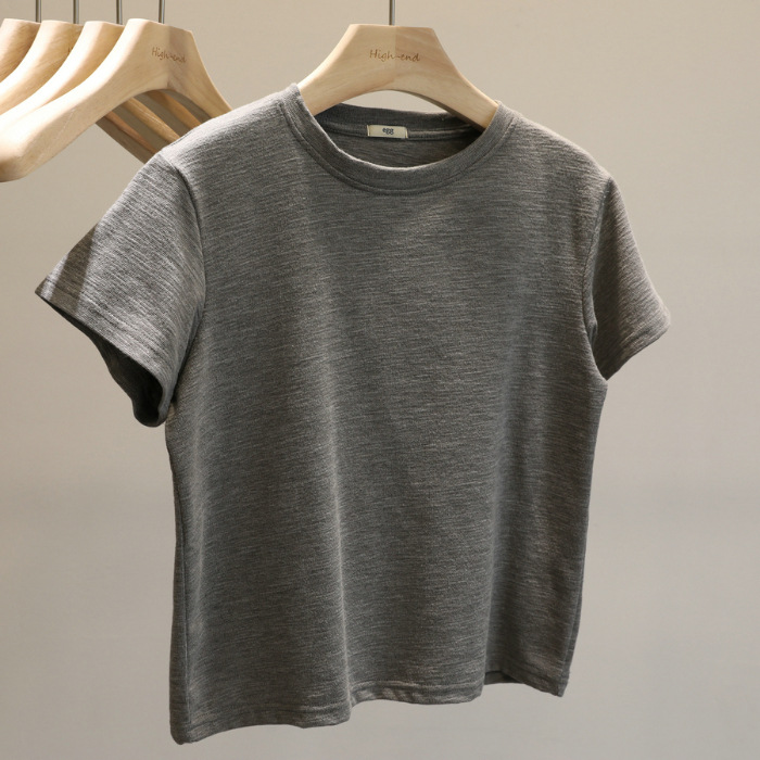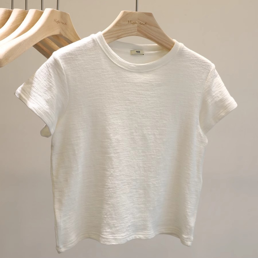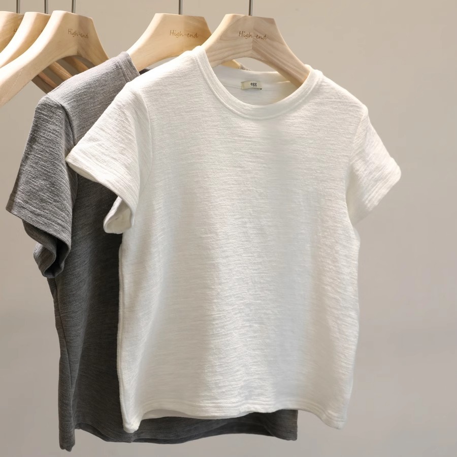 베이직 오른쪽 어깨 작은 T~한국식 심플 솔리드 컬러 라운드넥 반팔 티셔츠 여성용 다용도 슬리밍 숏베이스탑