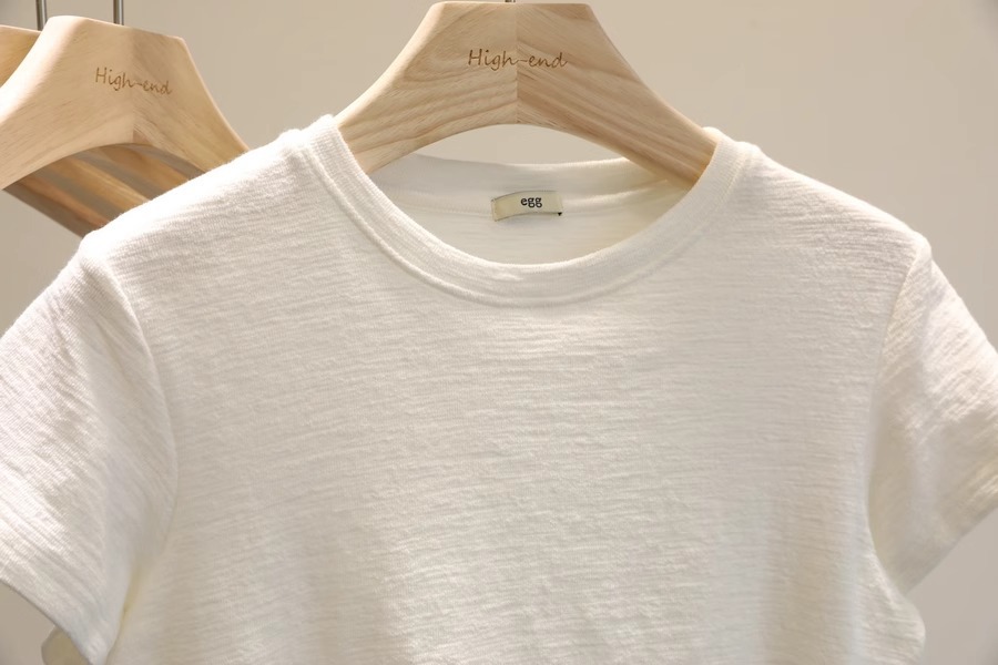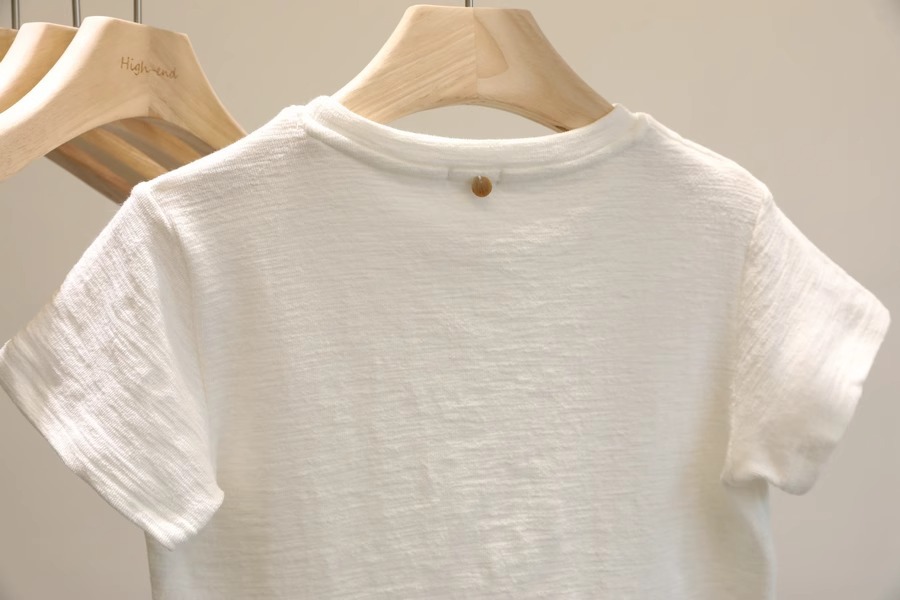 베이직 오른쪽 어깨 작은 T~한국식 심플 솔리드 컬러 라운드넥 반팔 티셔츠 여성용 다용도 슬리밍 숏베이스탑스토어 가기