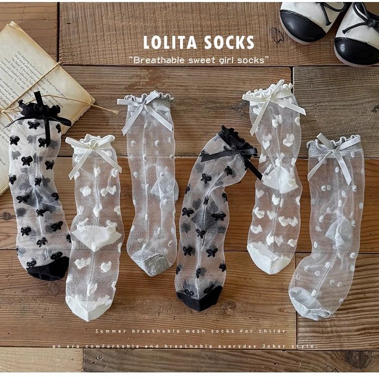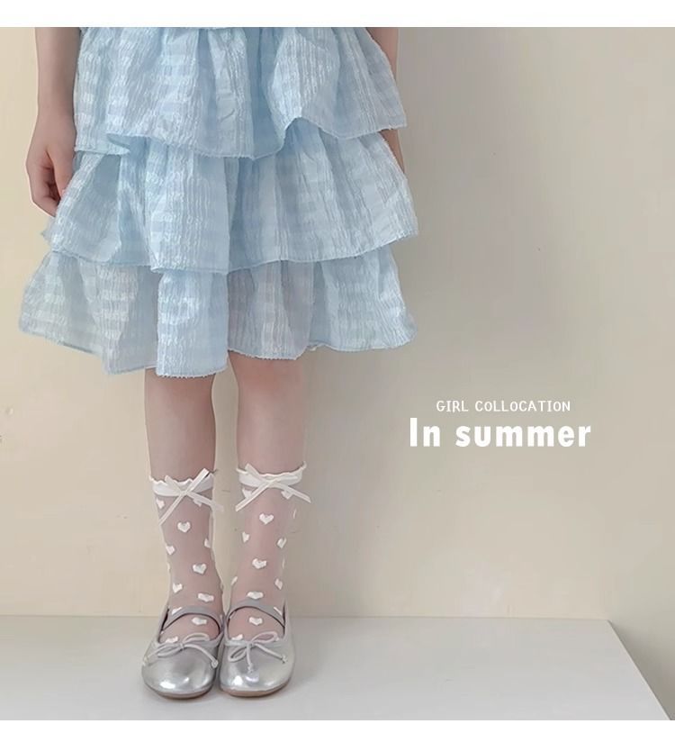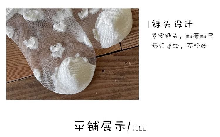 여자 양말 여름 얇은 통기성 유리 실크 중간 튜브 양말 어린이 한국 스타일 ins 달콤한 사랑 얼음 스타킹 여름스토어 가기