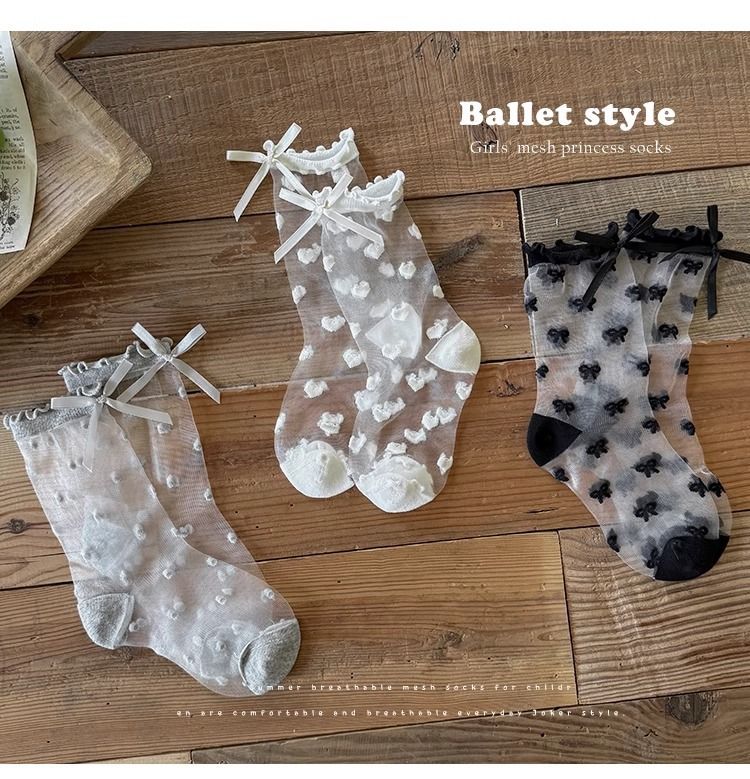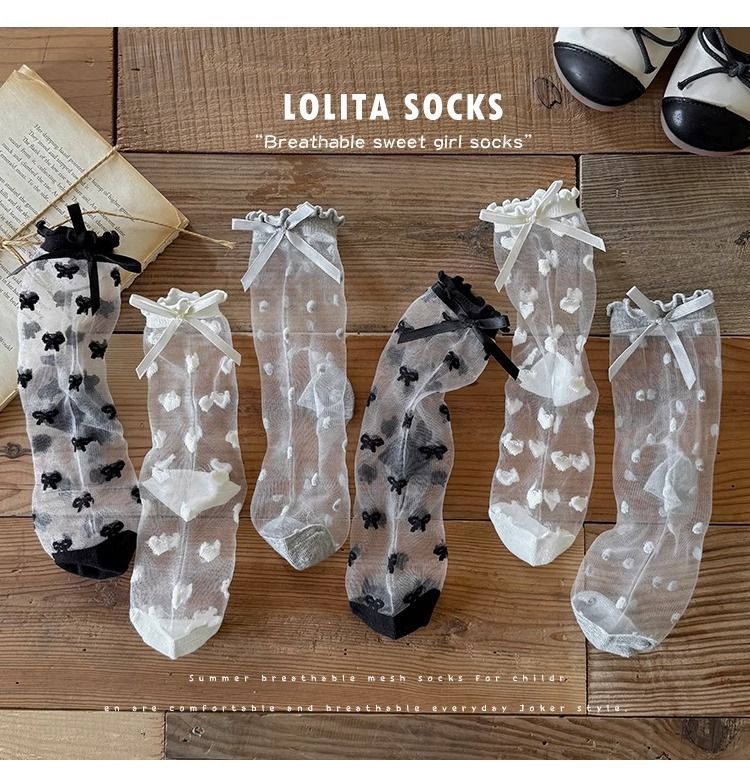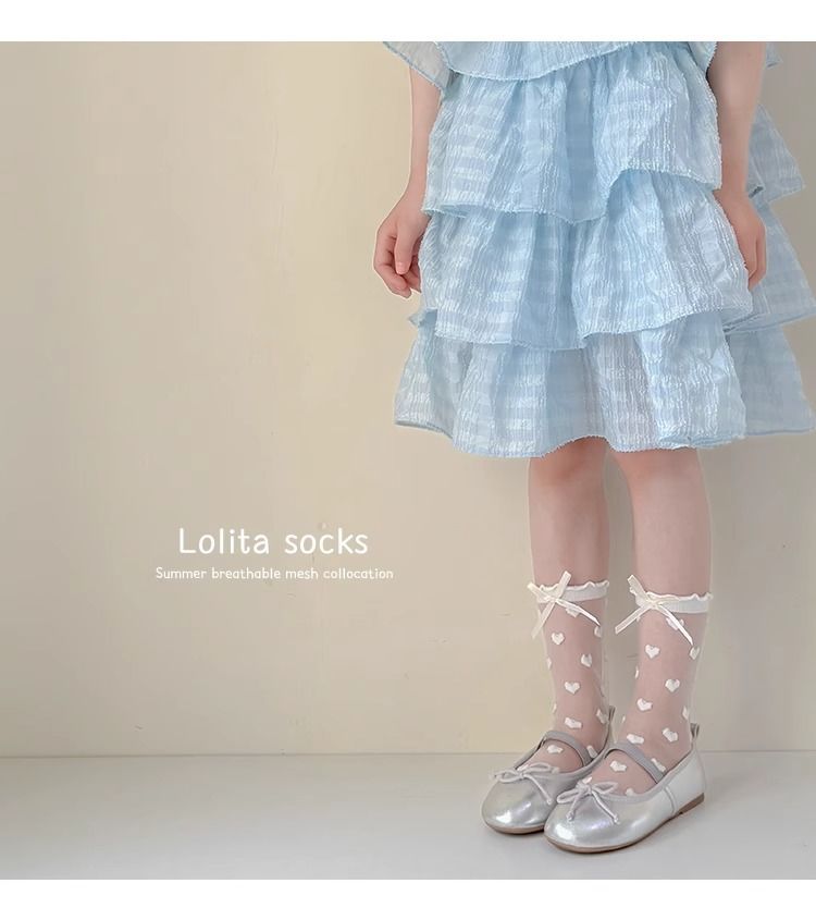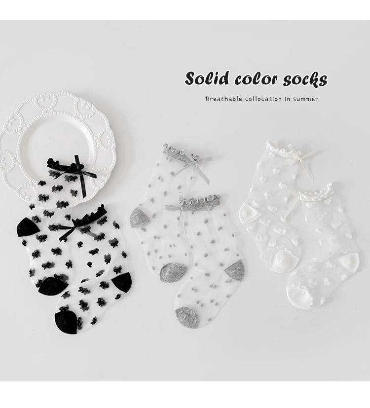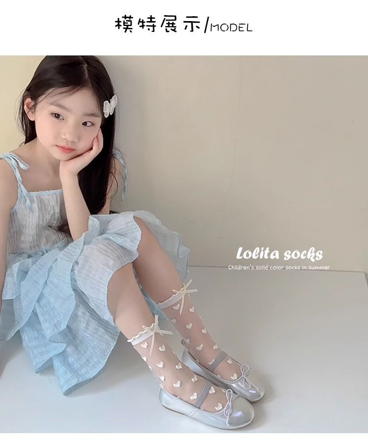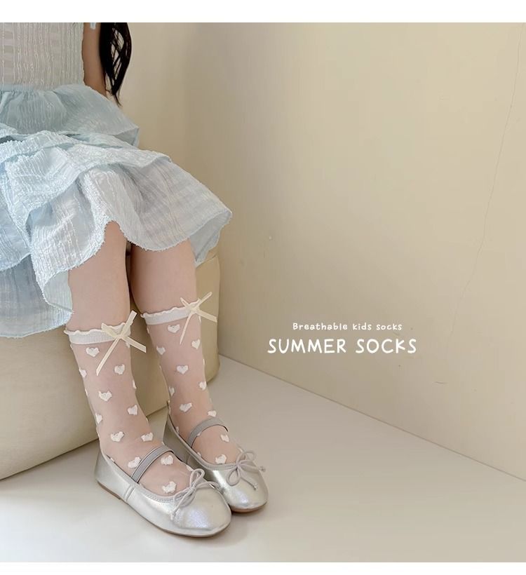 여자 양말 여름 얇은 통기성 유리 실크 중간 튜브 양말 어린이 한국 스타일 ins 달콤한 사랑 얼음 스타킹 여름