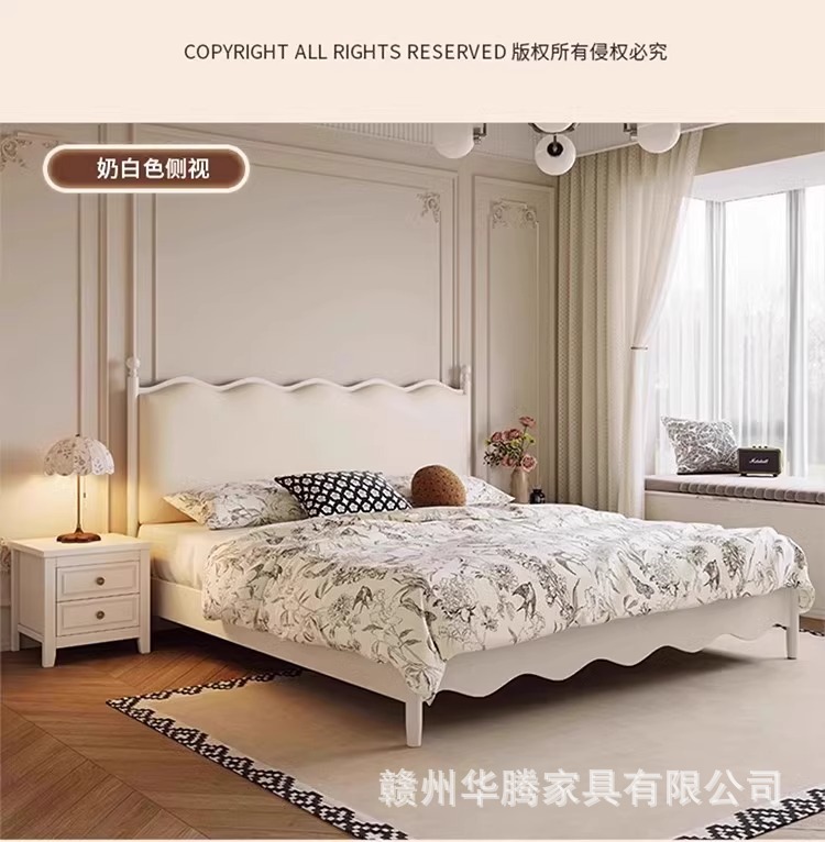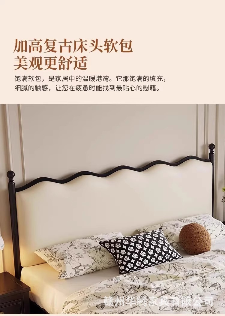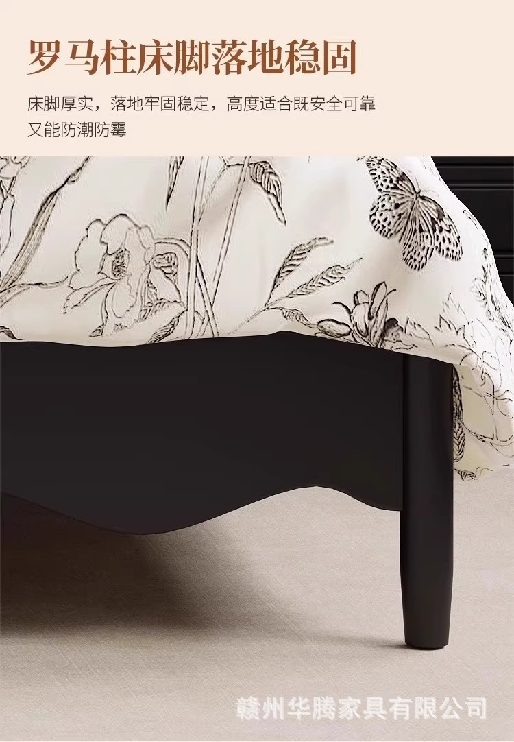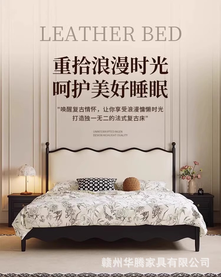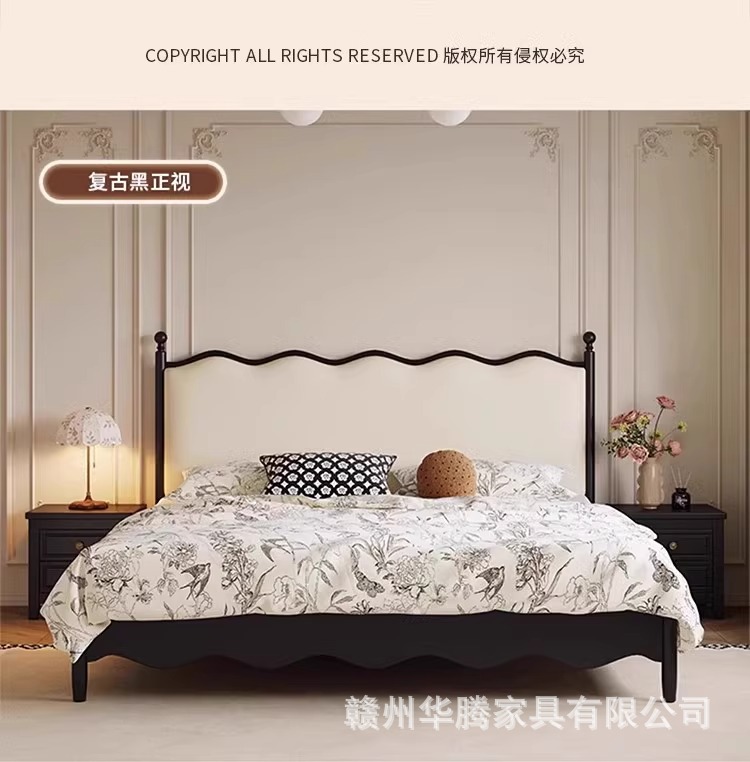 프렌치 복고풍 원목 침대, 모던하고 심플한 마스터 침실, 고급스럽고 분위기 있는 더블 침대, 중세 스타일의 가벼운 럭셔리 블랙 침대