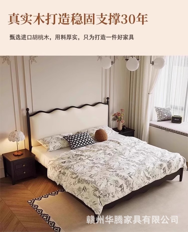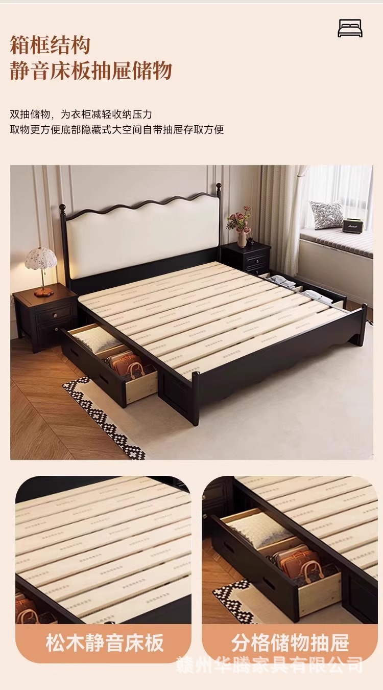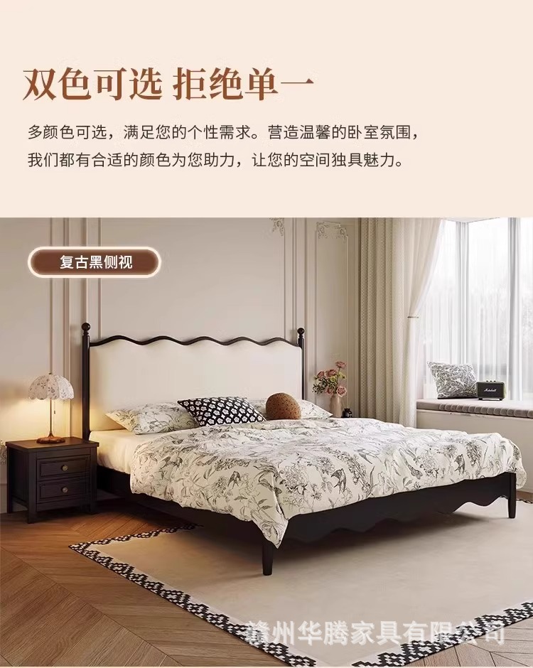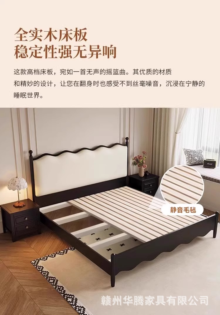 프렌치 복고풍 원목 침대, 모던하고 심플한 마스터 침실, 고급스럽고 분위기 있는 더블 침대, 중세 스타일의 가벼운 럭셔리 블랙 침대스토어 가기