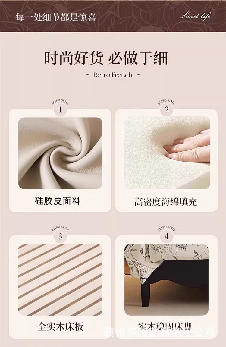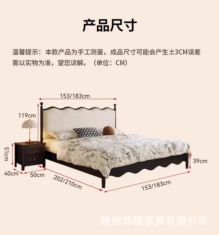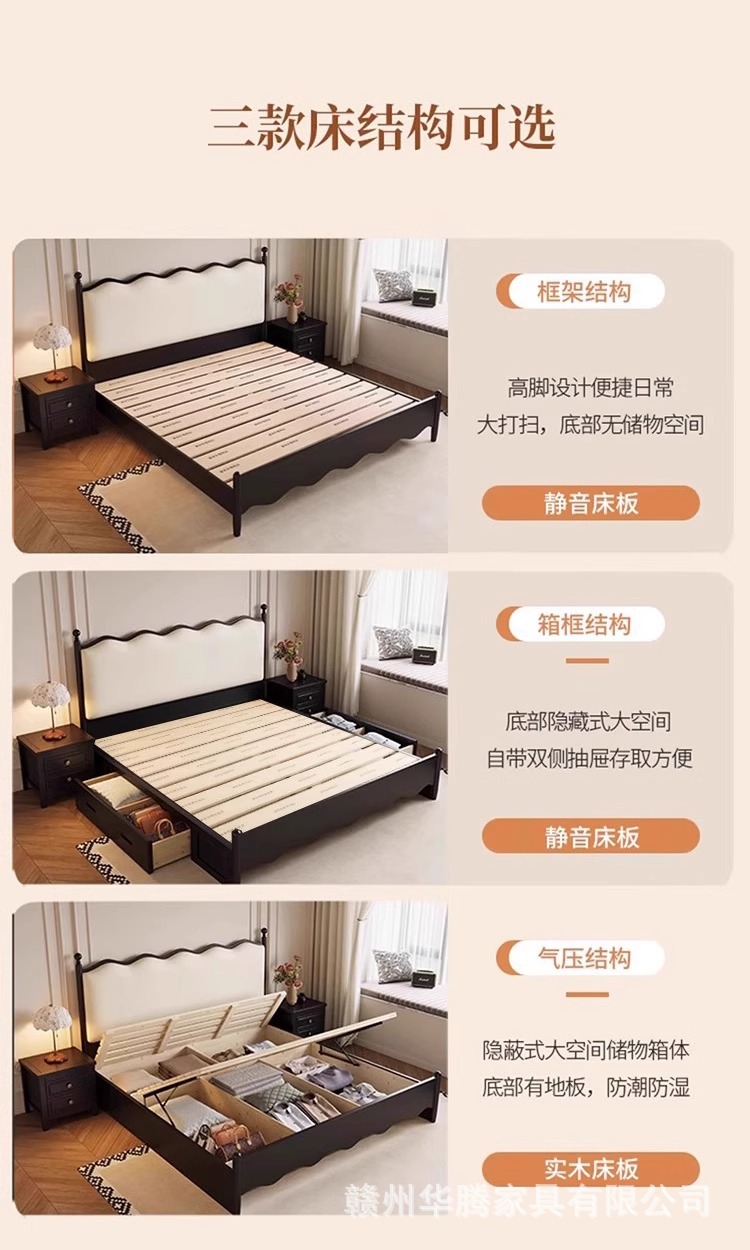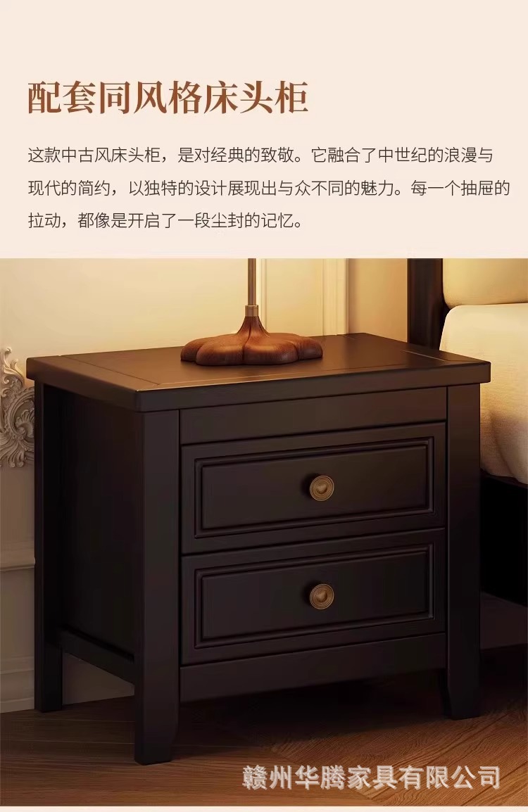 프렌치 복고풍 원목 침대, 모던하고 심플한 마스터 침실, 고급스럽고 분위기 있는 더블 침대, 중세 스타일의 가벼운 럭셔리 블랙 침대스토어 가기