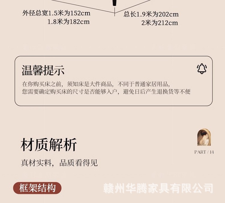 • 1.5* 1.9m [프레임 구조 + 두꺼워진 사일런트 침대 보드]
