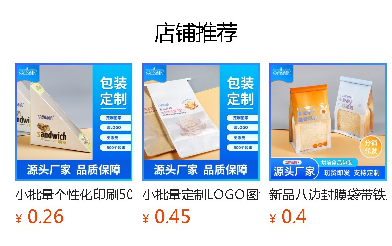 인기 판매 소형 8면 밀봉 종이 봉투 토스트 빵 과자 스낵 포장 봉투 디지털 인쇄 100개스토어 가기