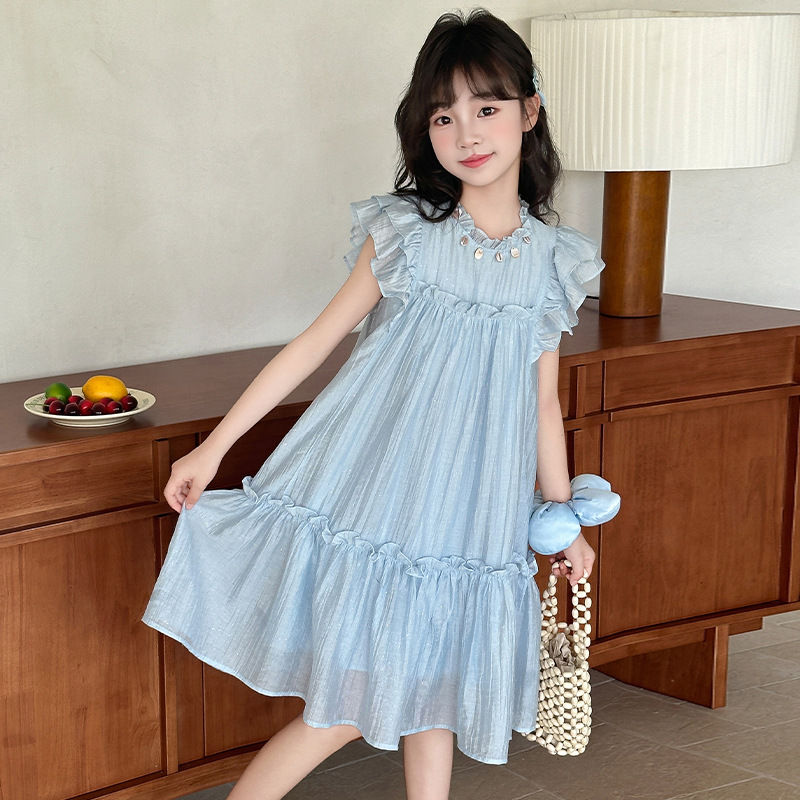 여자 여름 드레스 유행 2025 새로운 여자 플라잉 슬리브 공주 드레스 여름 조끼 민소매 쉬폰 드레스 유행