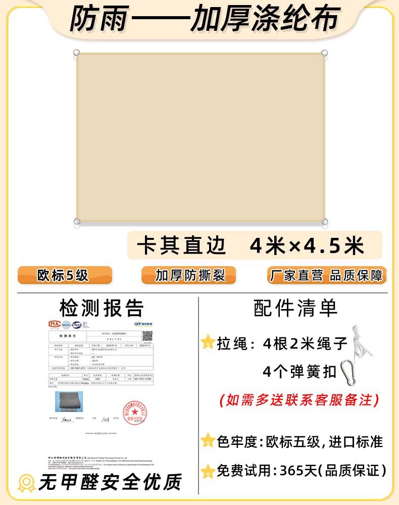 • [스트레이트 엣지] 카키 4.5x 4.5m [새롭게 업그레이드된 핫글루 방수 기술] 168g 업그레이드된 유럽 규격 5급 원단✦