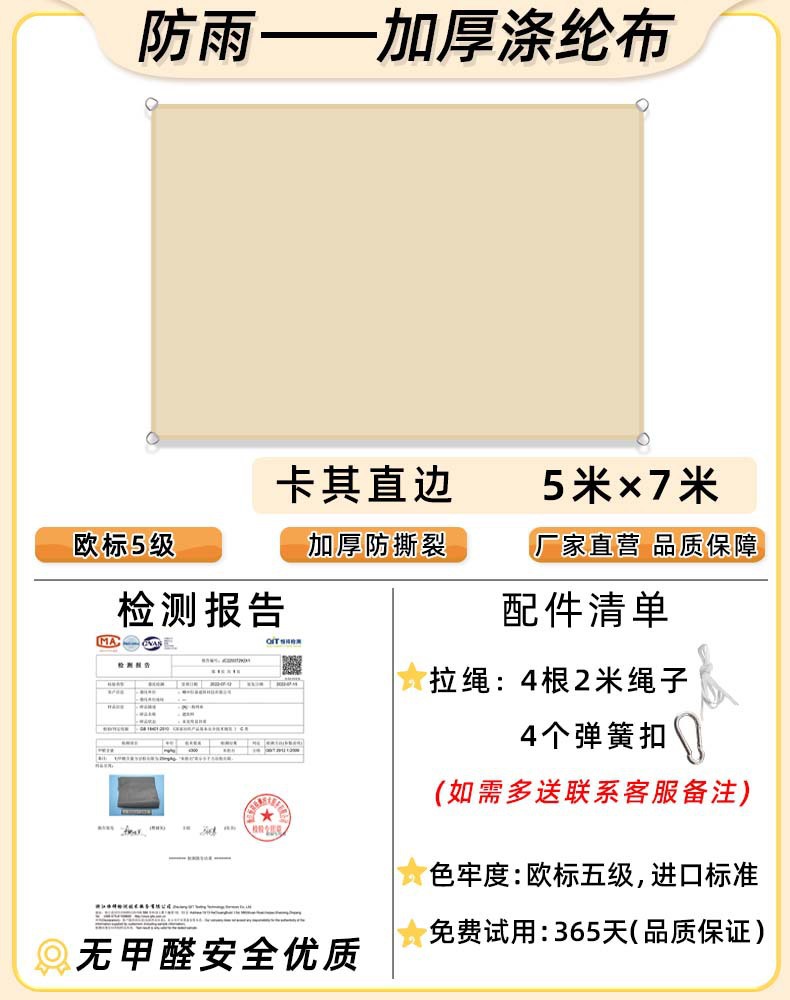 • [스트레이트 엣지] 카키 3.5x 4.5m [새롭게 업그레이드된 핫글루 방수 기술] 165g 업그레이드된 유럽 규격 5급 원단✦