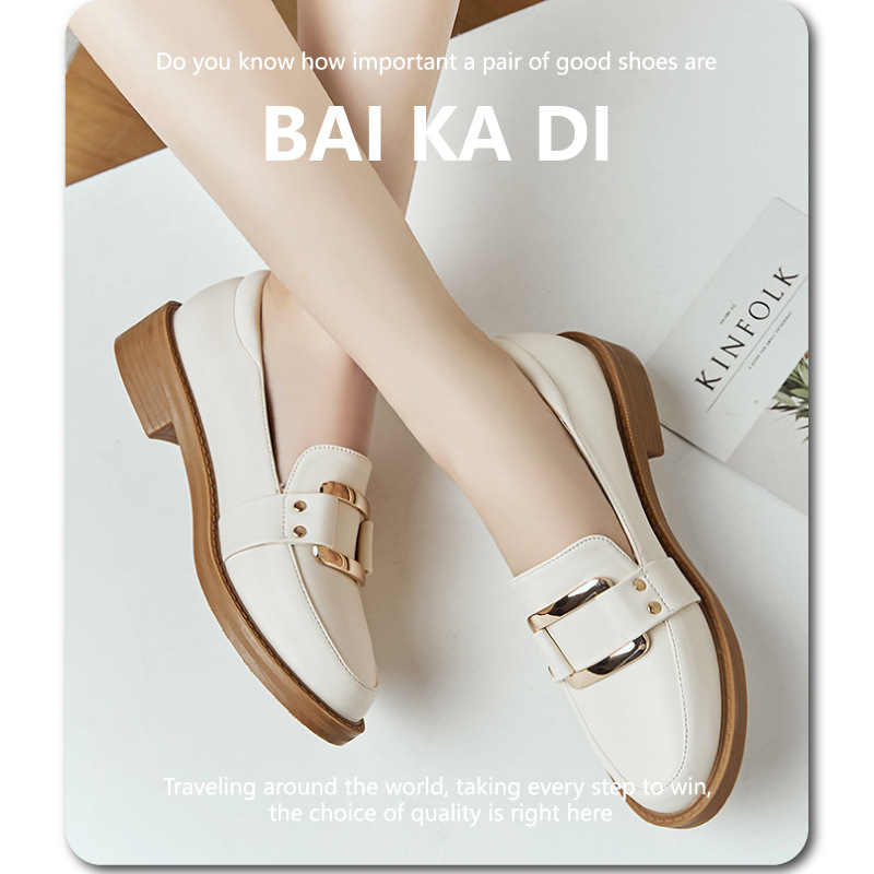 새로운 스타일의 작은 가죽 신발, 영국 스타일의 신발, 금속 사각 버클, 다용도 가을 블랙 로퍼, 플러스 사이즈 로퍼, 여성용 단화스토어 가기