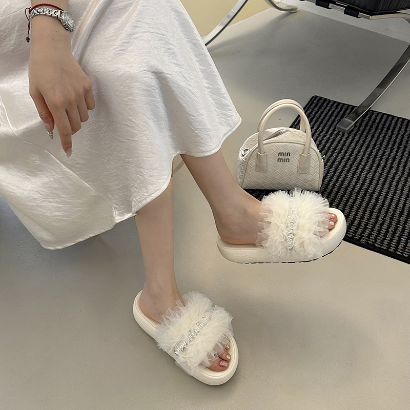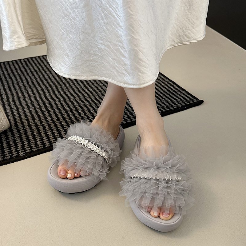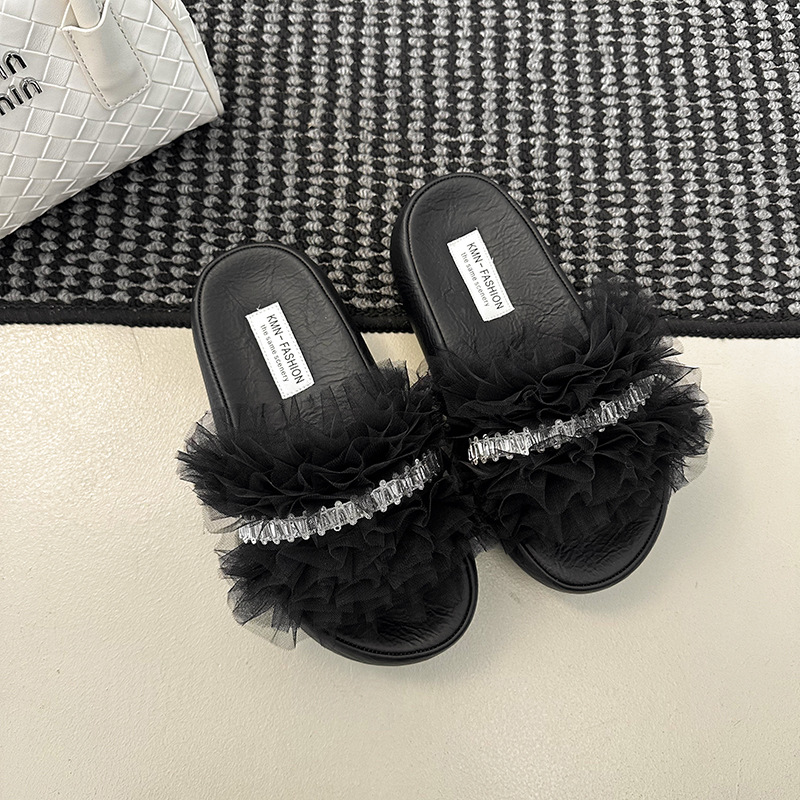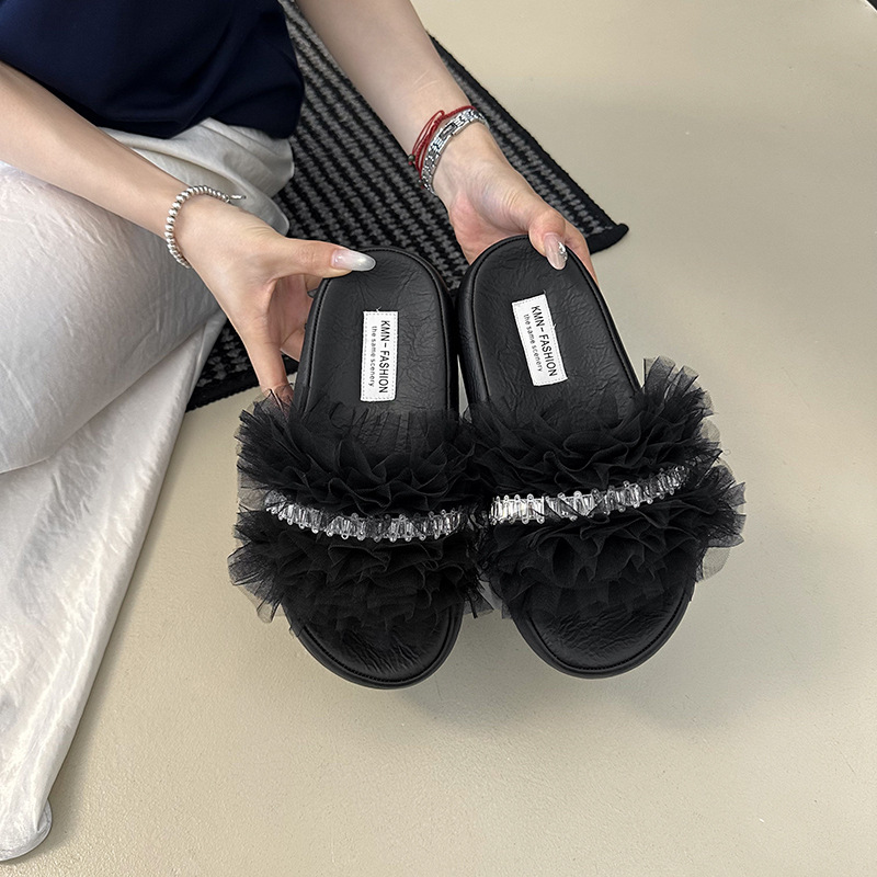 2025년 여름 신상 작은 사이즈 패셔너블한 태슬 힐과 여성용 다용도 샌들, 단색, 달콤하고 가벼운 럭셔리 슬리퍼스토어 가기