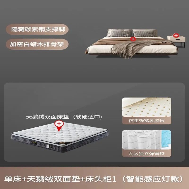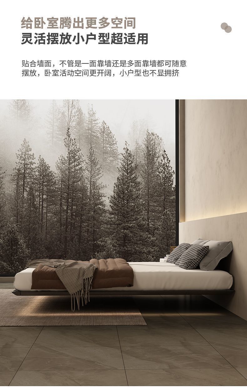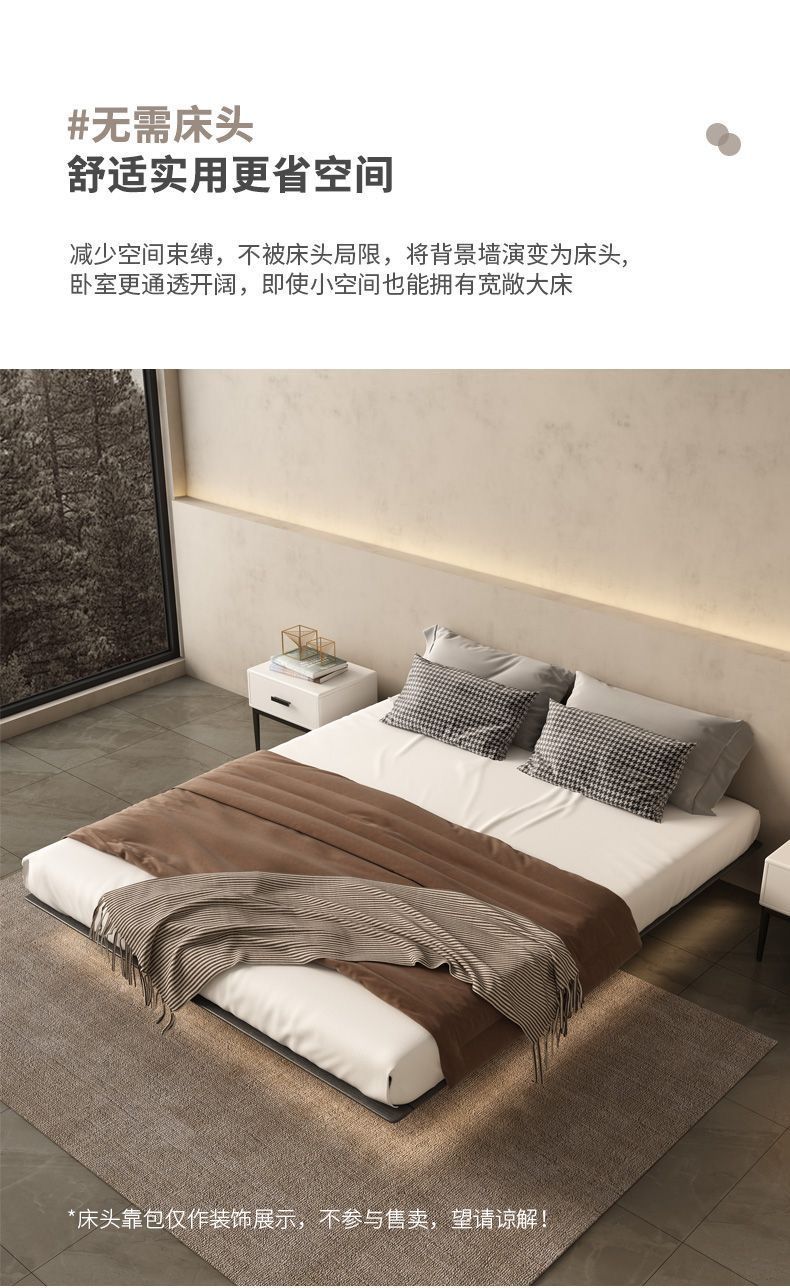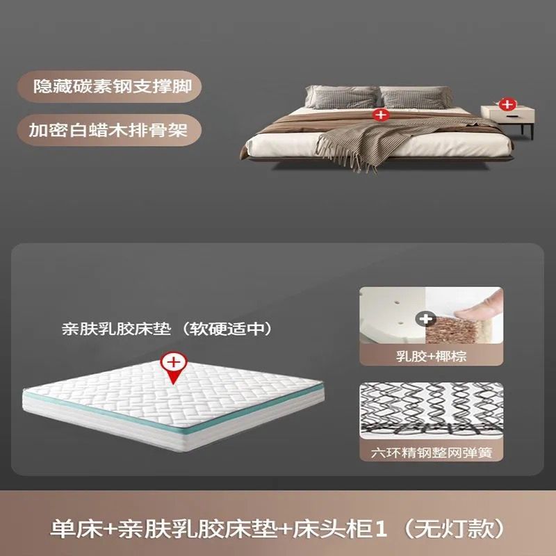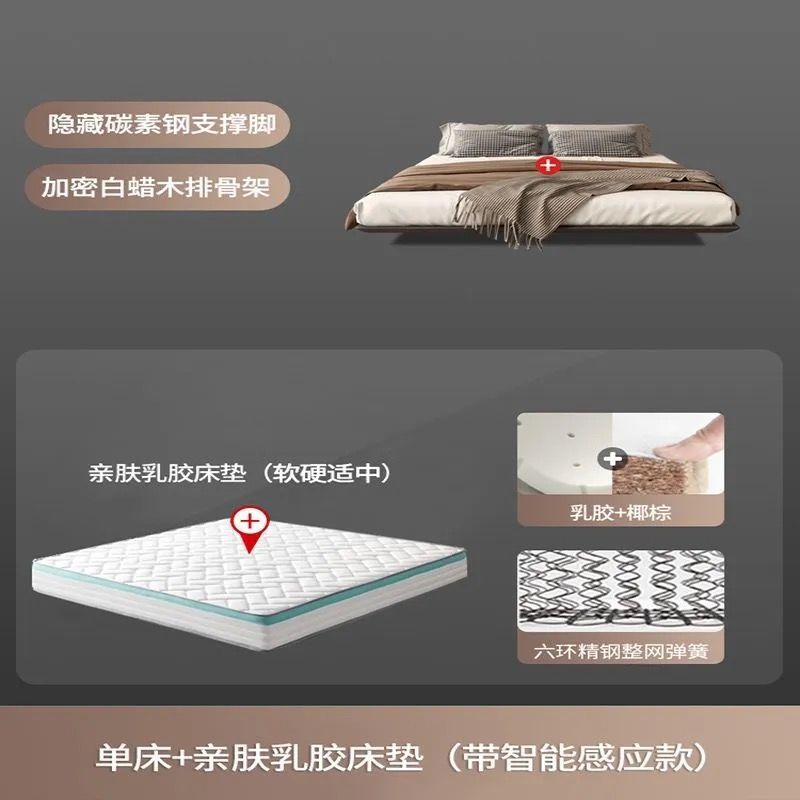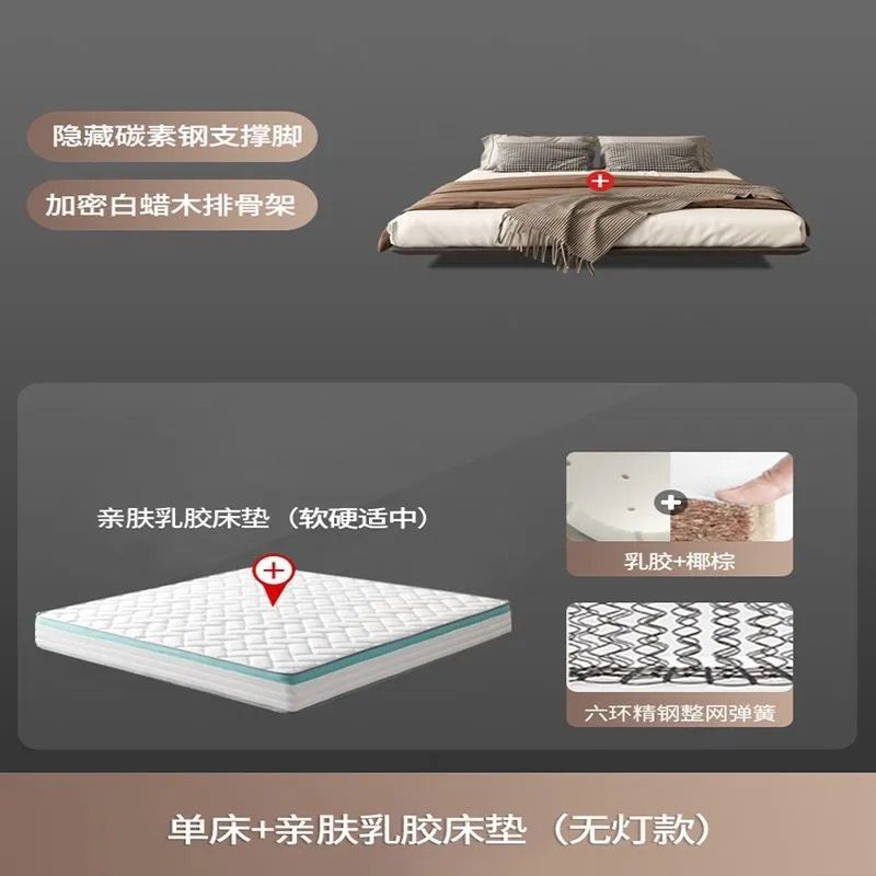 침대가 없는 공중부양 침대 와비사비 스타일 마스터 침실 더블 침대 라이트 럭셔리 모던 심플 소형 아파트 원목 공중부양 침대 프레임스토어 가기