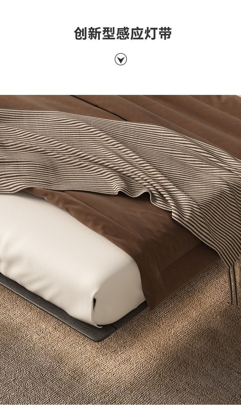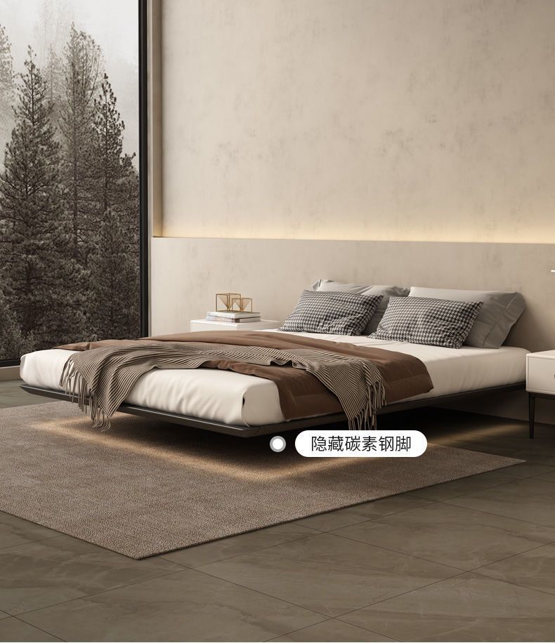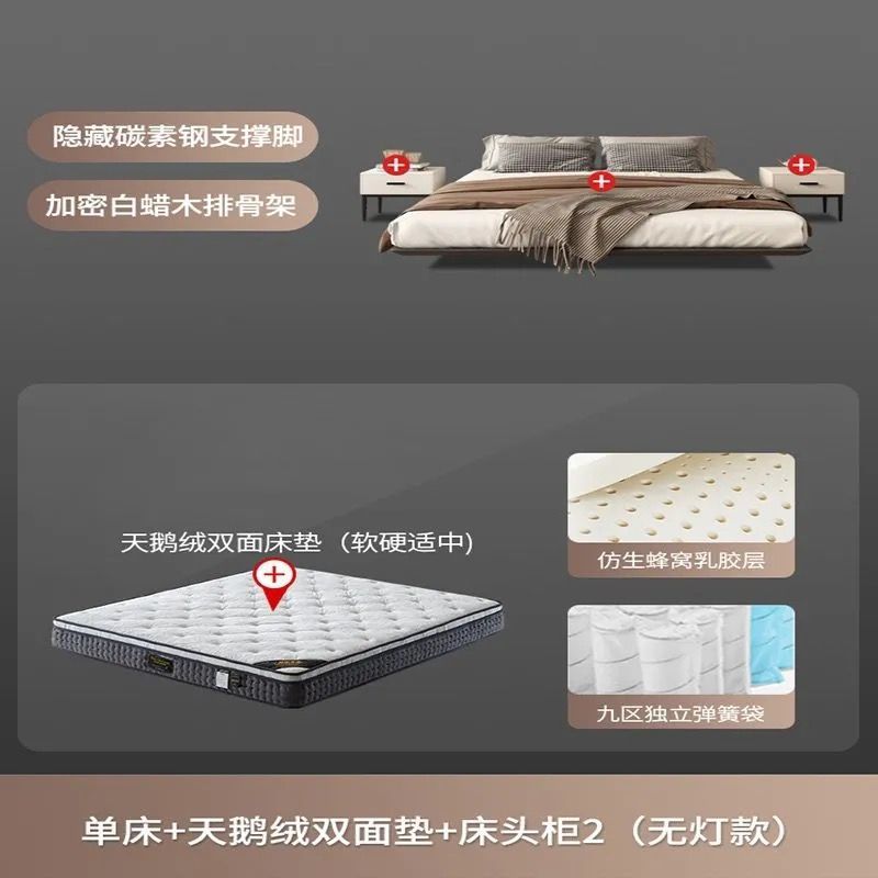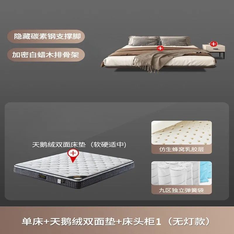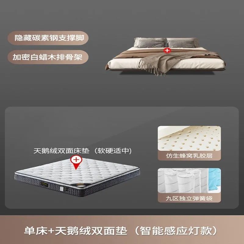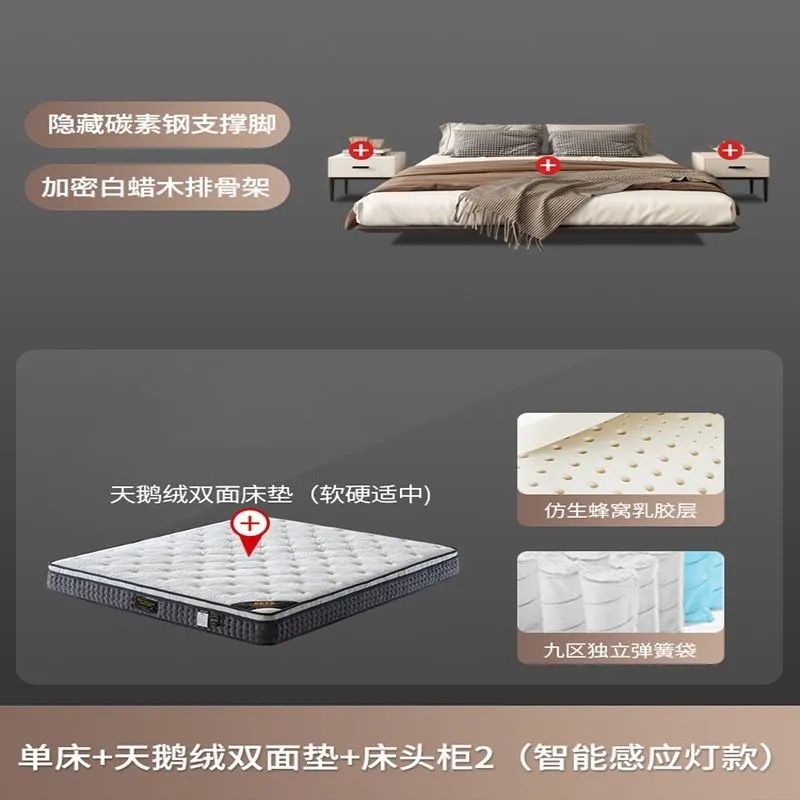 침대가 없는 공중부양 침대 와비사비 스타일 마스터 침실 더블 침대 라이트 럭셔리 모던 심플 소형 아파트 원목 공중부양 침대 프레임스토어 가기