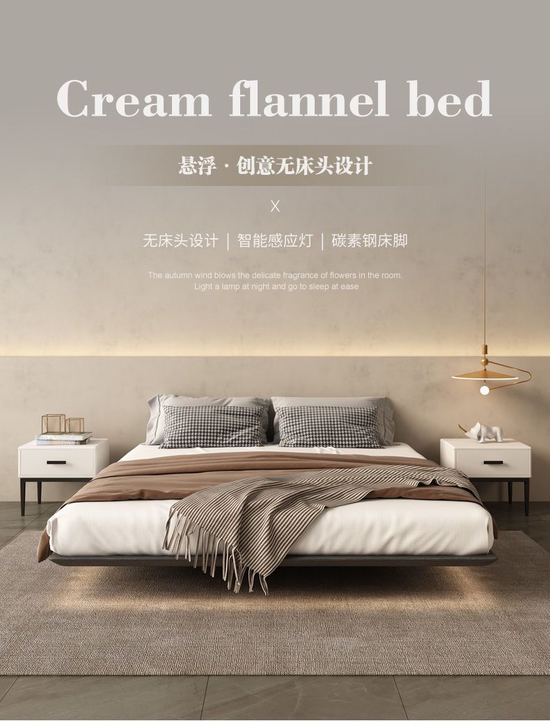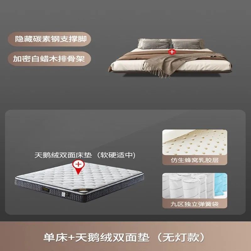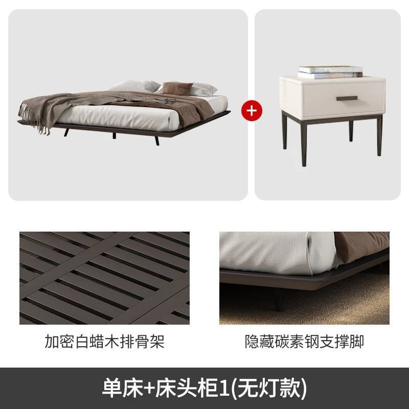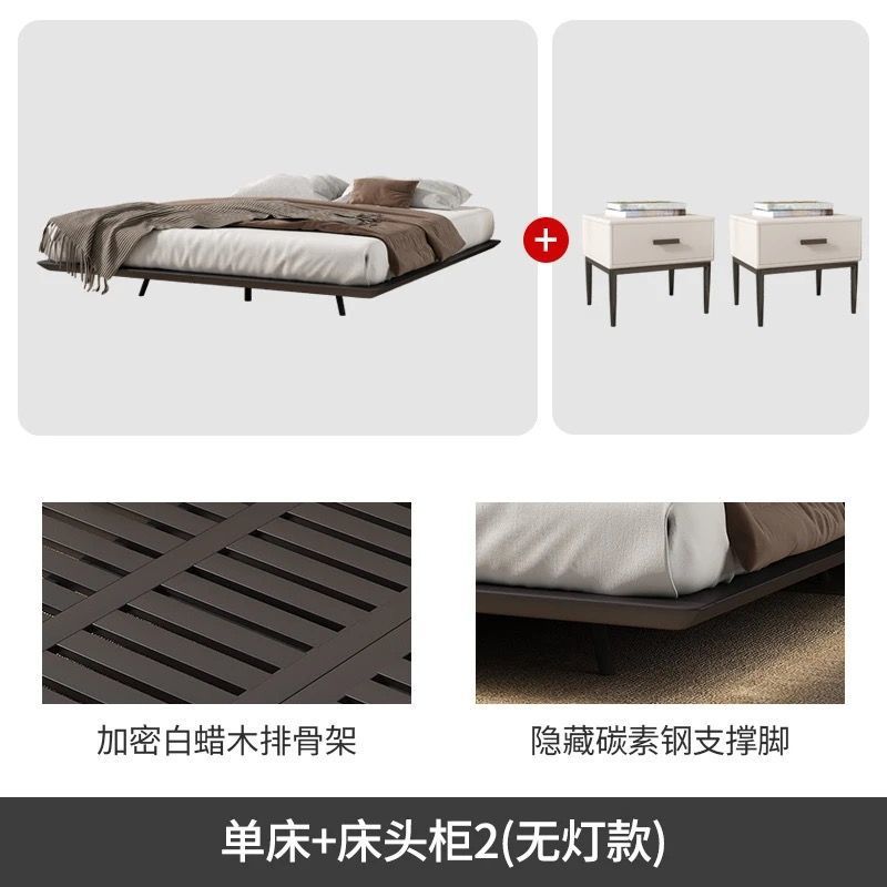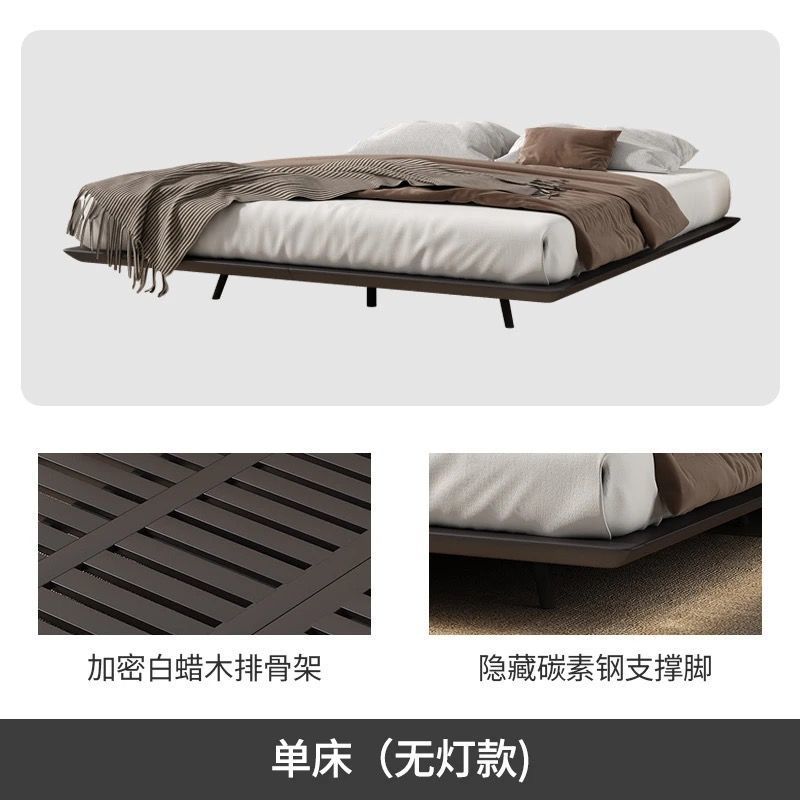 침대가 없는 공중부양 침대 와비사비 스타일 마스터 침실 더블 침대 라이트 럭셔리 모던 심플 소형 아파트 원목 공중부양 침대 프레임