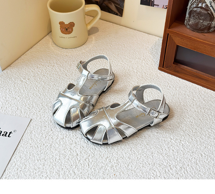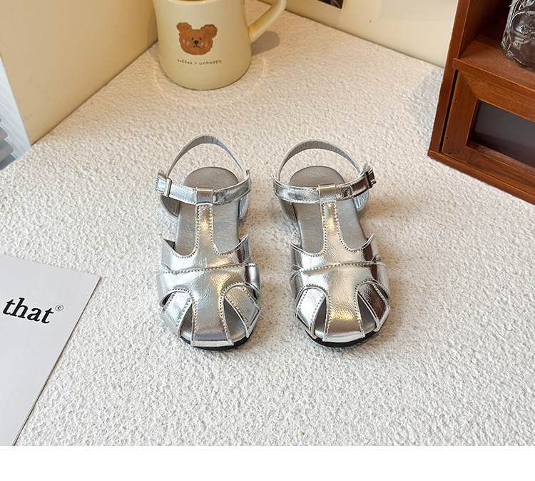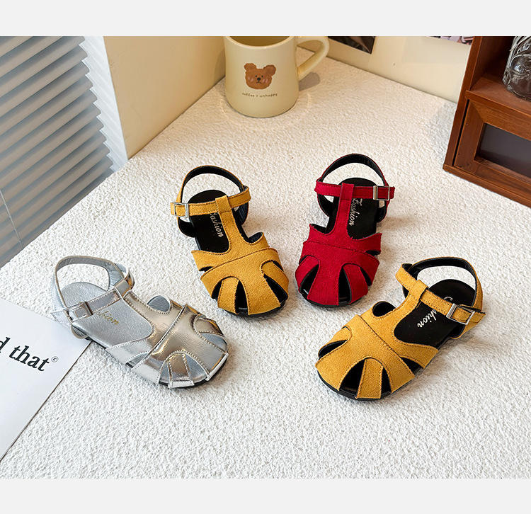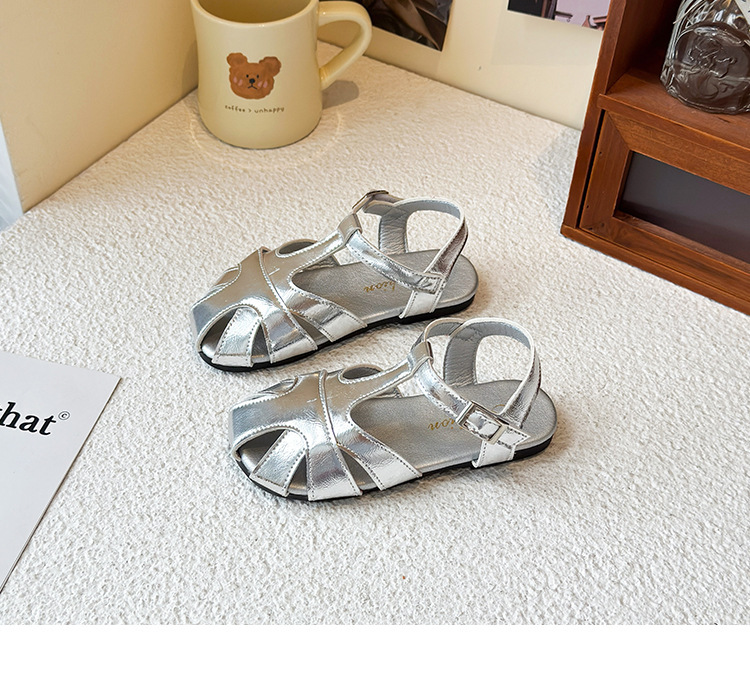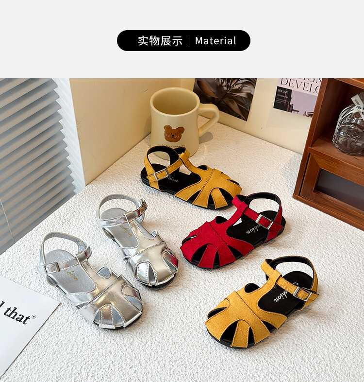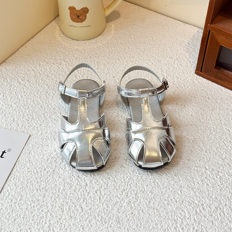 어린이 짠 발가락 로마 샌들 2025 여름 새로운 한국 스타일 소녀 중공 공주 신발 부드러운 바닥 해변 신발스토어 가기