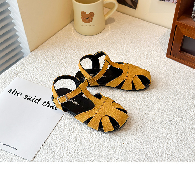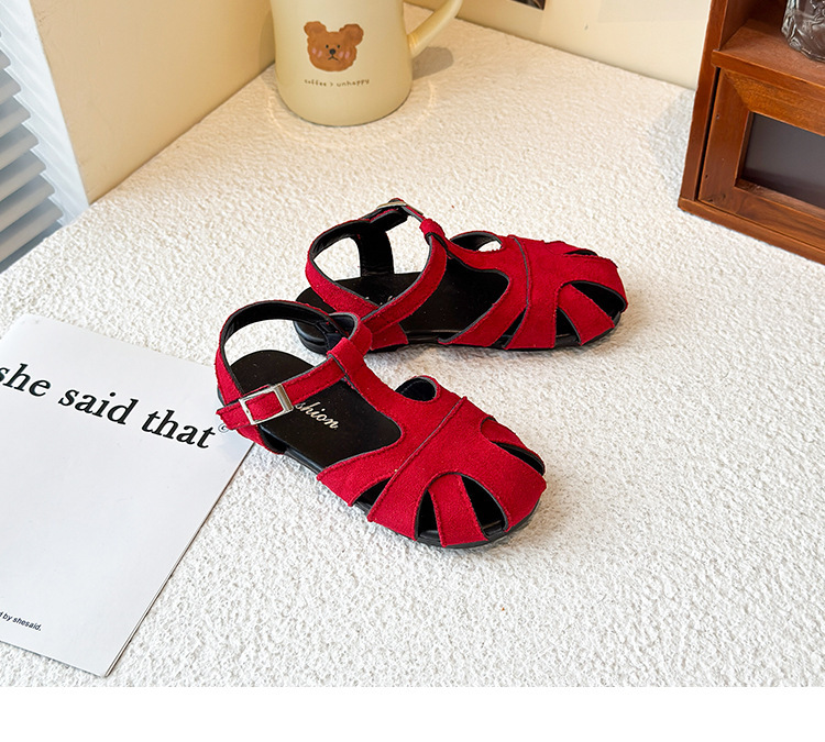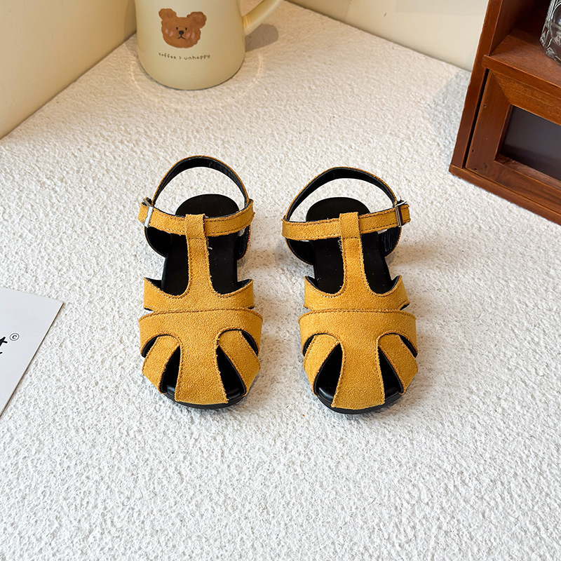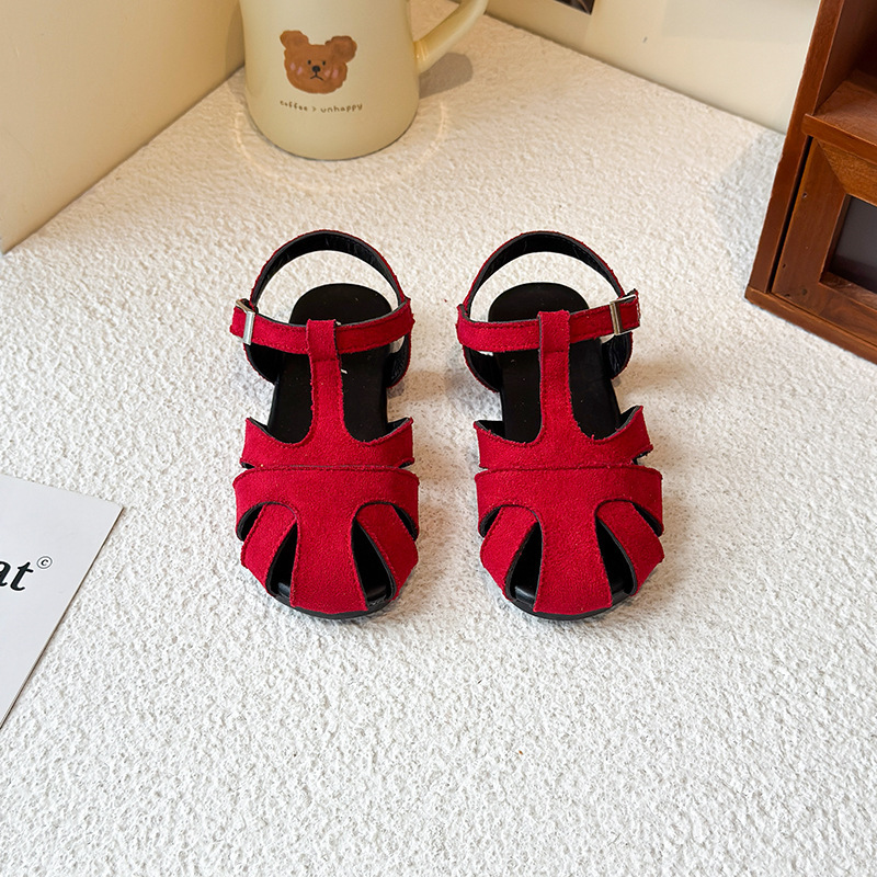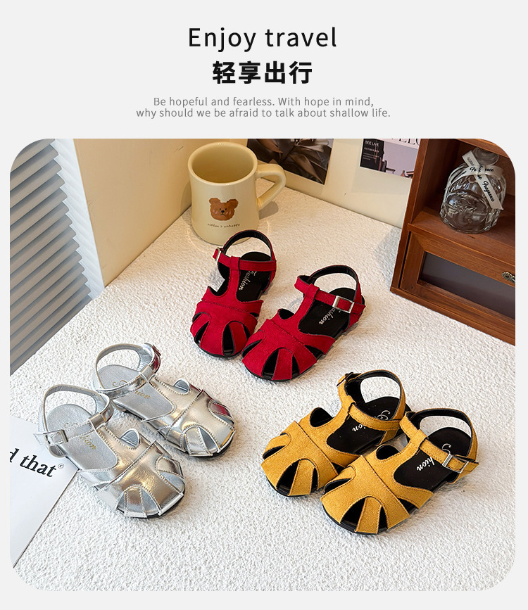 어린이 짠 발가락 로마 샌들 2025 여름 새로운 한국 스타일 소녀 중공 공주 신발 부드러운 바닥 해변 신발스토어 가기