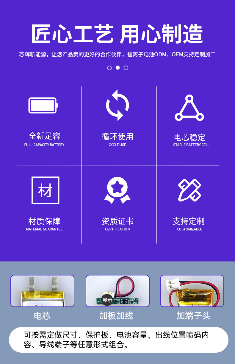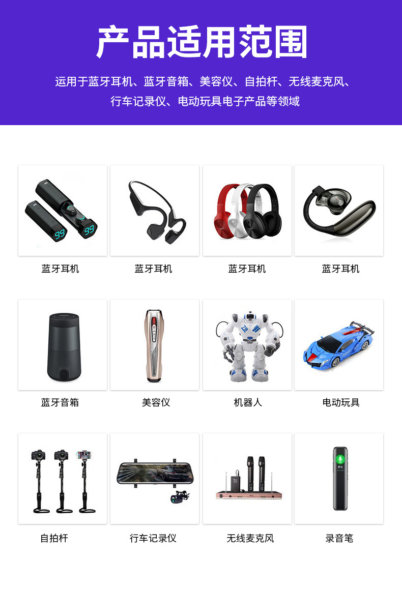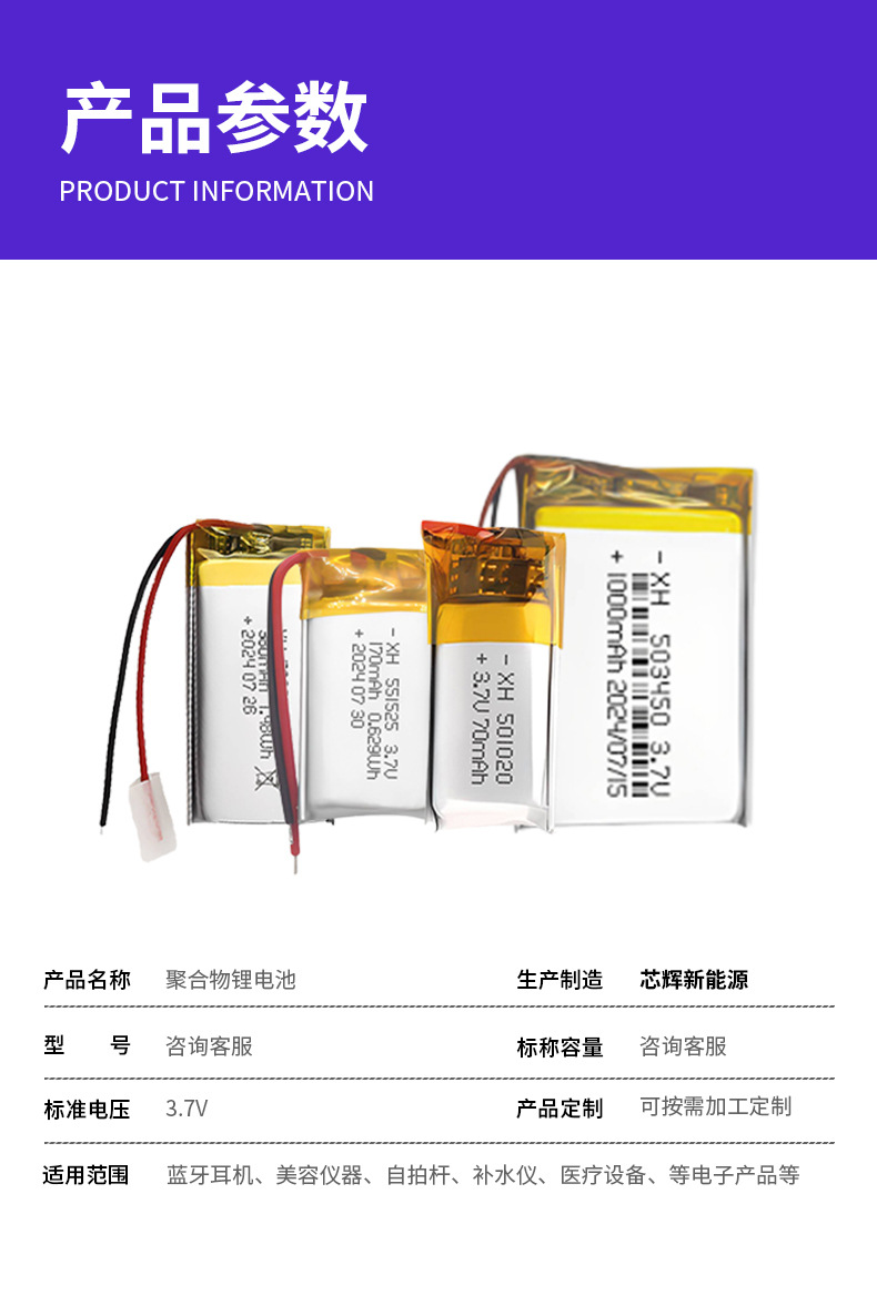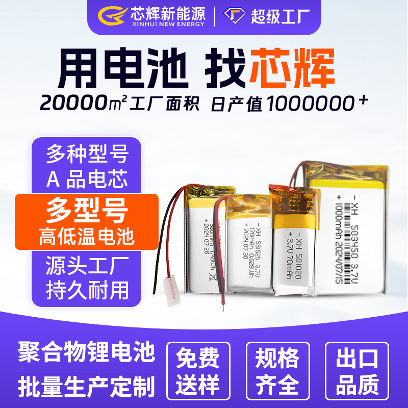 523450 502050 폴리머 리튬 배터리 3.7V100mAh-1000mAh 다중 사양 플러스 보드 케이블 배터리