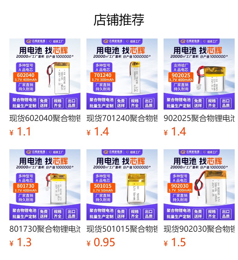 523450 502050 폴리머 리튬 배터리 3.7V100mAh-1000mAh 다중 사양 플러스 보드 케이블 배터리스토어 가기