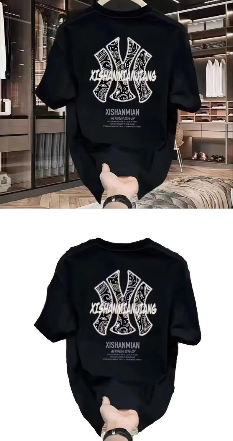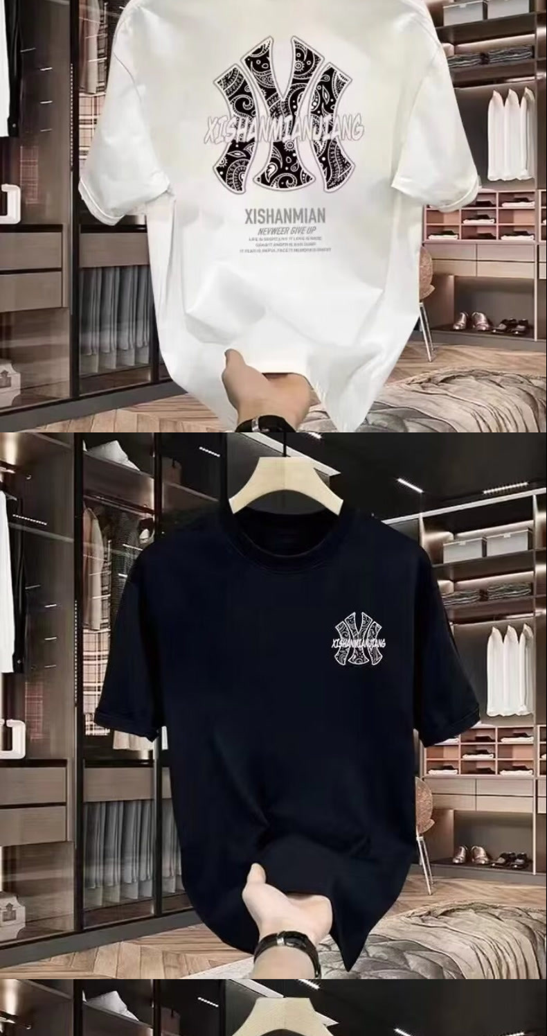 2025 여름 신작 헤비급 순수 코튼 티셔츠 남성용 미국 트렌디 브랜드 루즈 캐주얼 플러스 사이즈 반팔 티셔츠