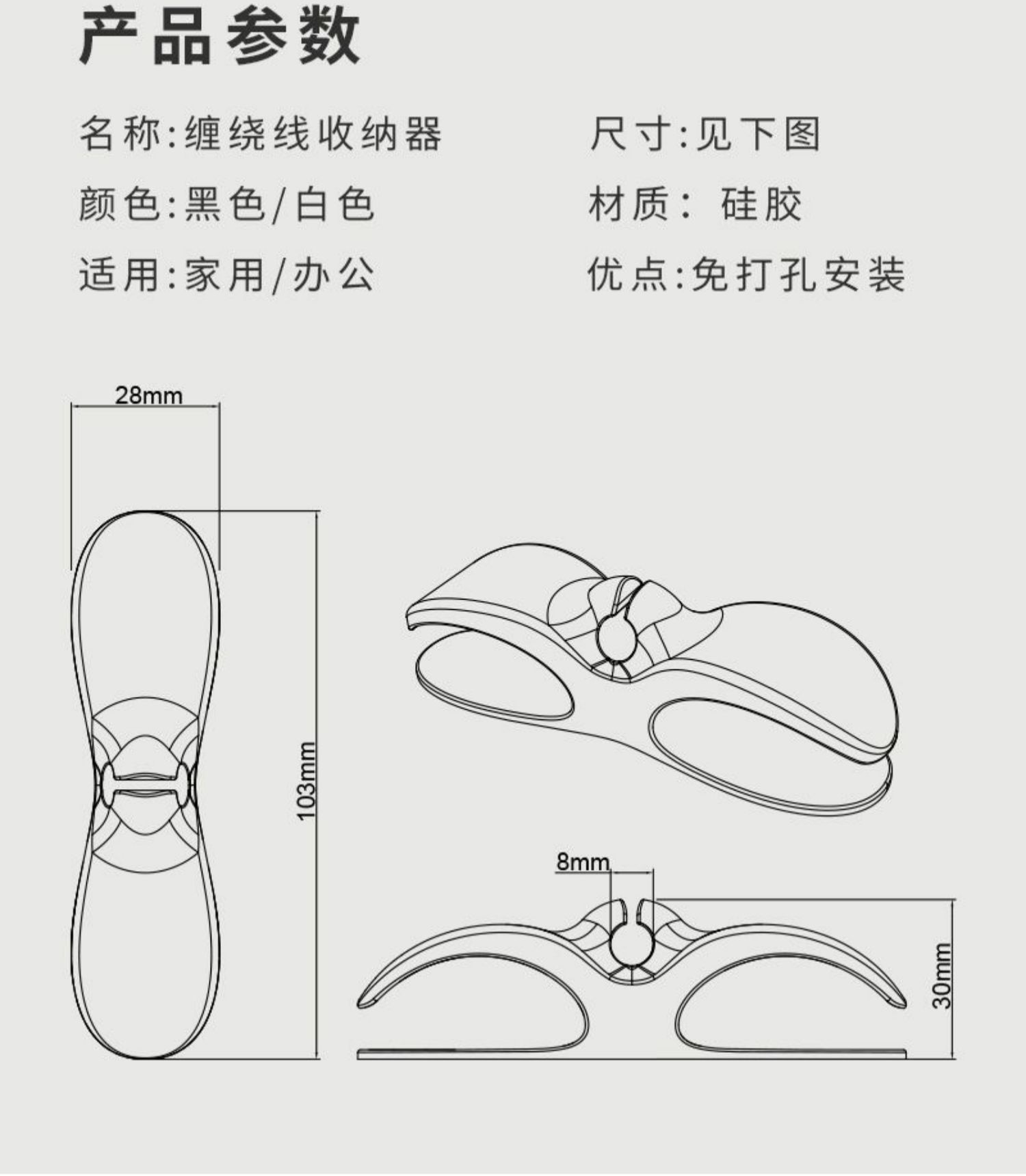 구멍이 없는 케이블 정리함, 주방 가전제품 전원 코드, 충전 케이블 후크, 보관, 고정 및 정리용 케이블 관리 도구스토어 가기