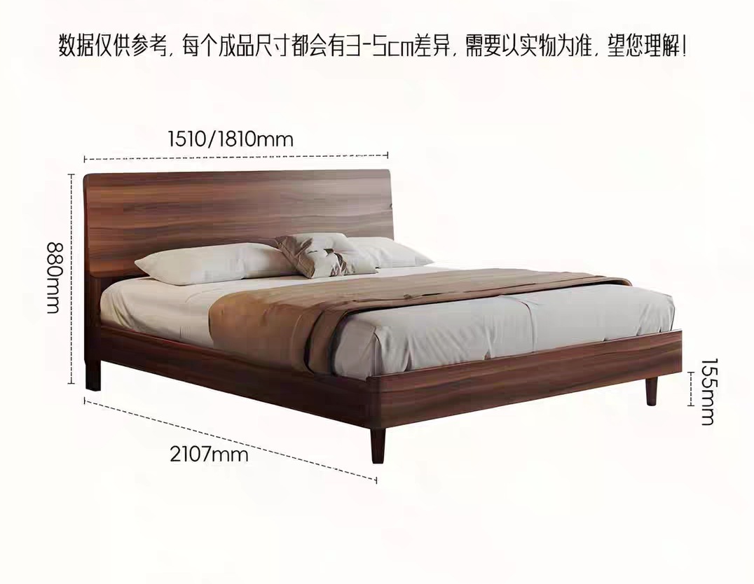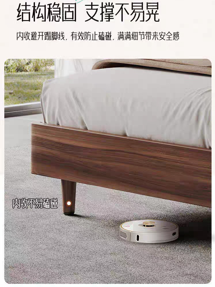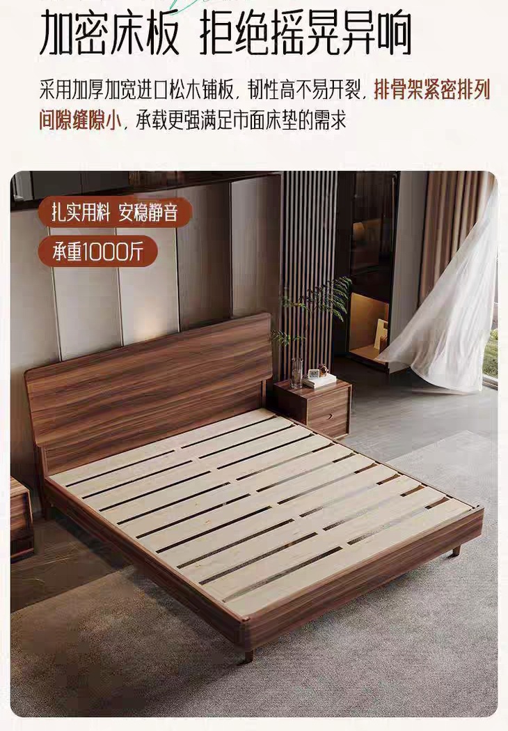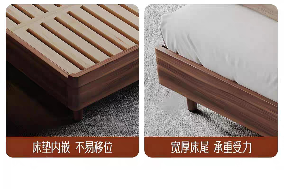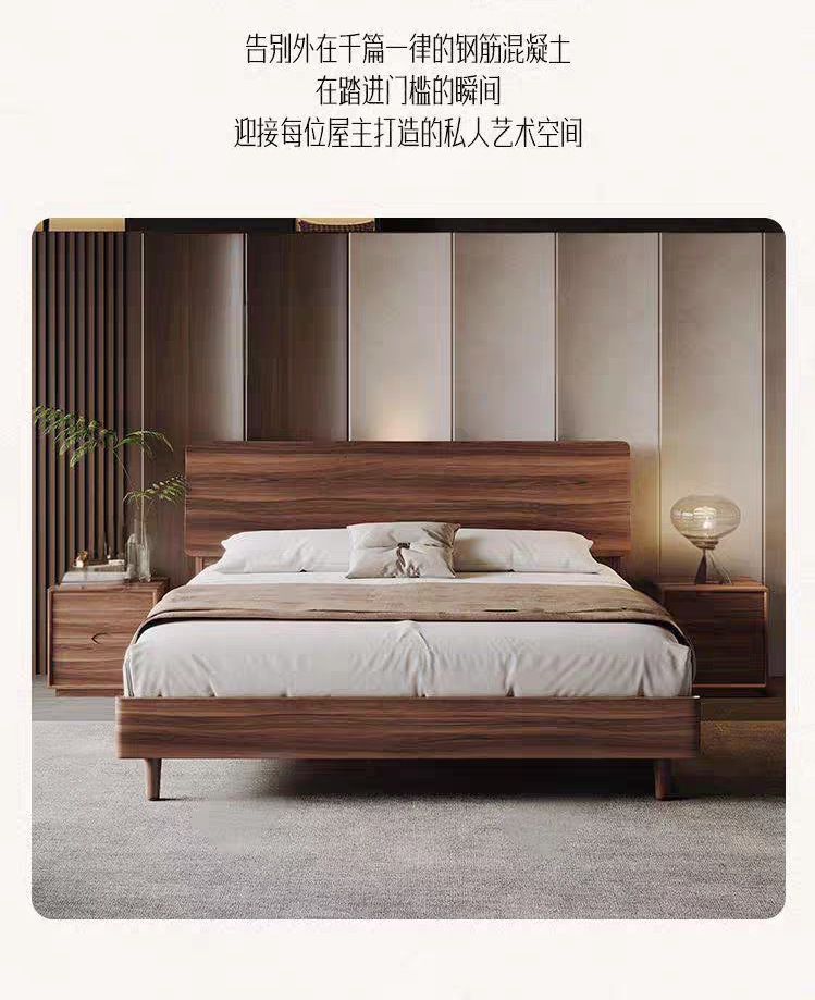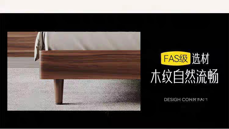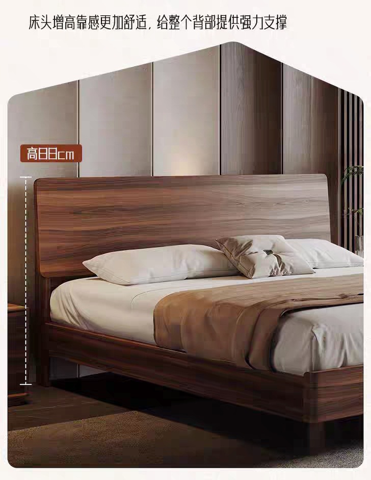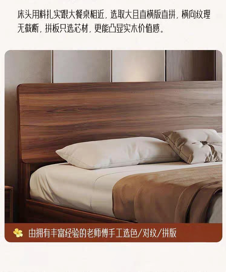현대적인 미니멀리스트 호두나무 원목 침대 북유럽 라이트 럭셔리 1.8m 마스터 침실 더블 침대 1.5m 수납 대형 웨딩 침대