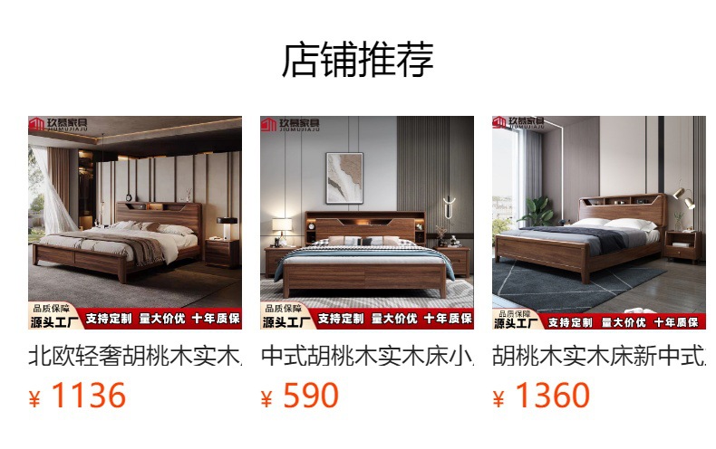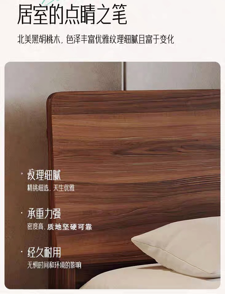 현대적인 미니멀리스트 호두나무 원목 침대 북유럽 라이트 럭셔리 1.8m 마스터 침실 더블 침대 1.5m 수납 대형 웨딩 침대스토어 가기